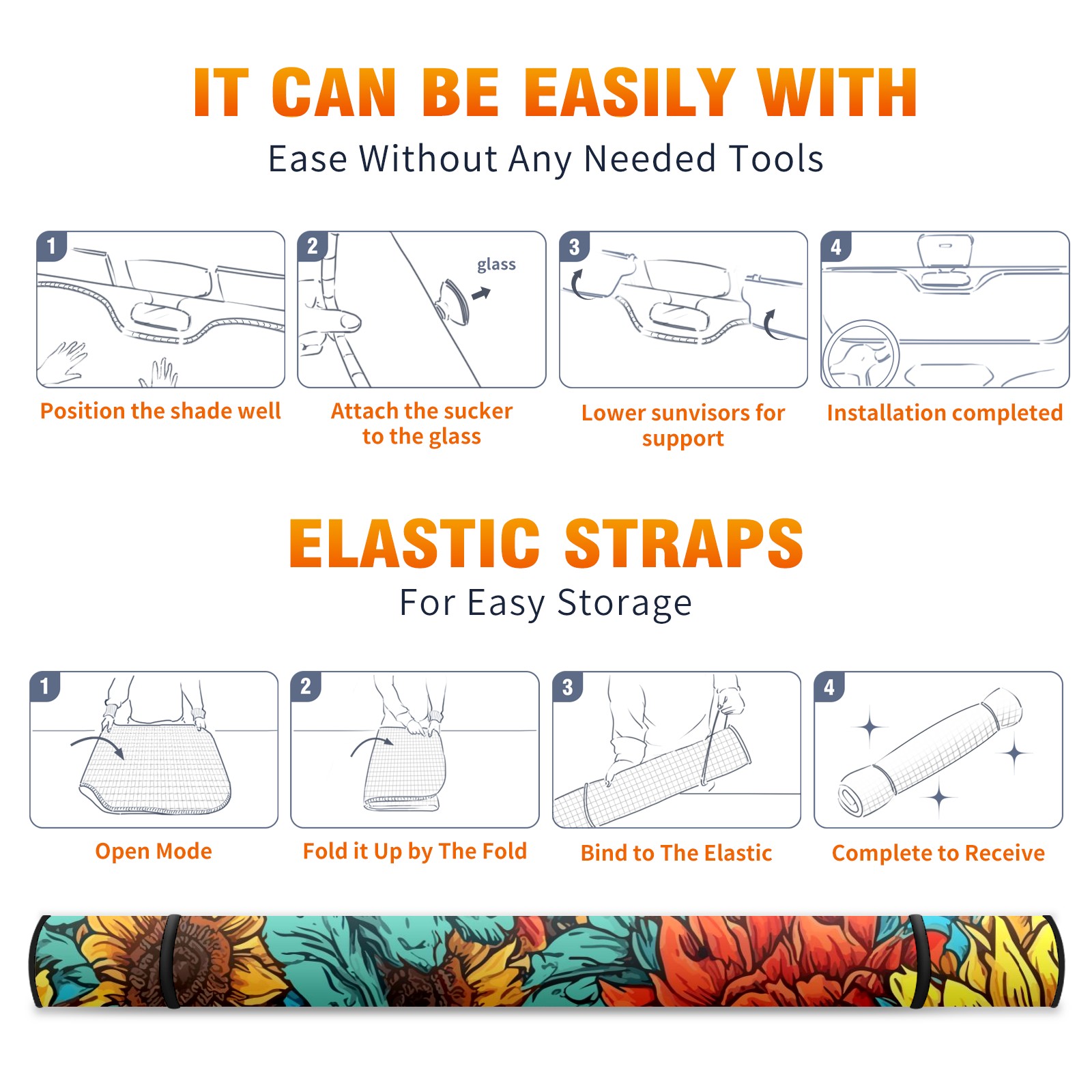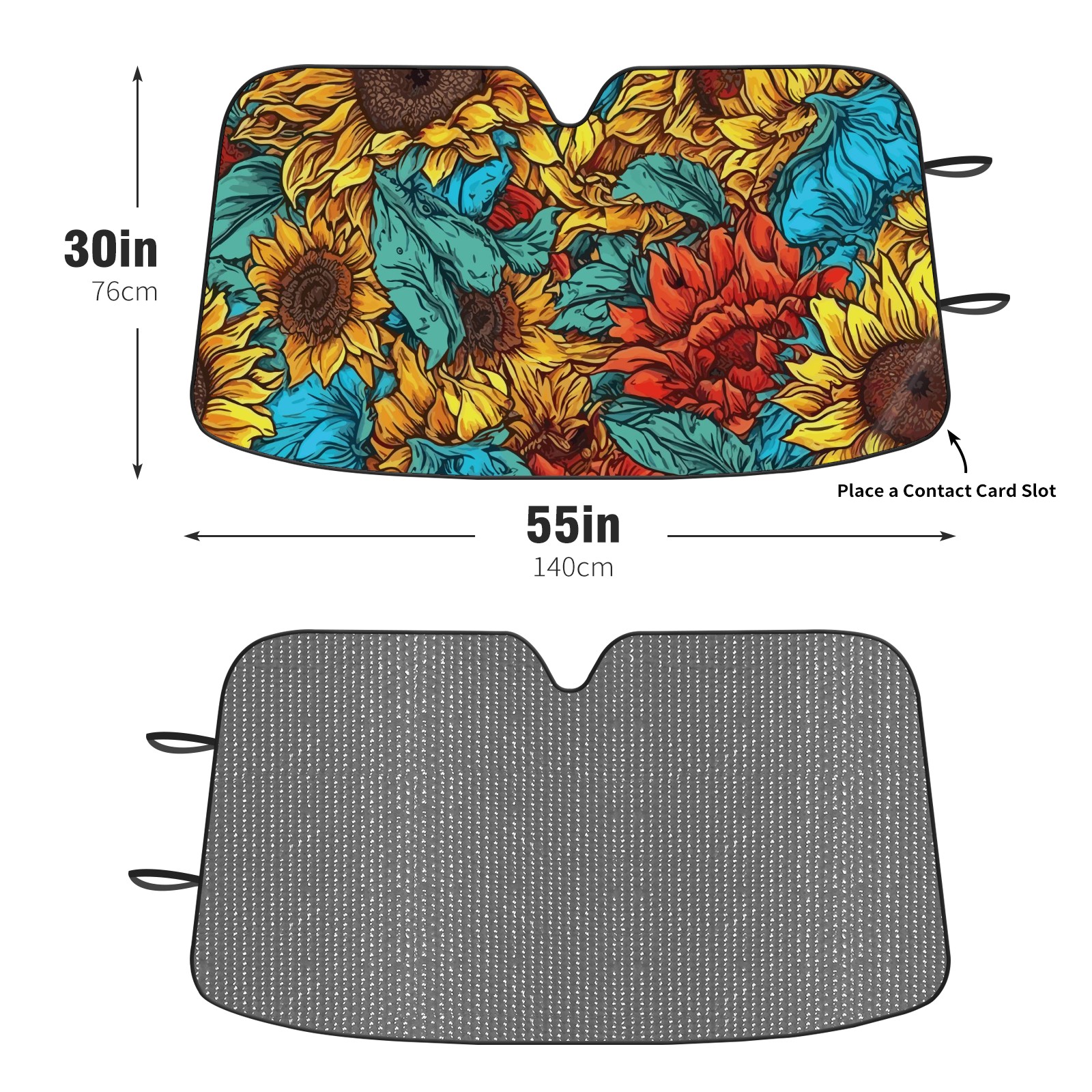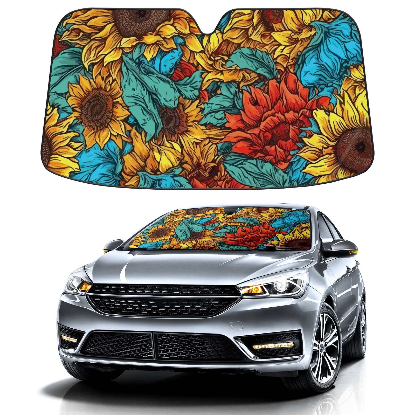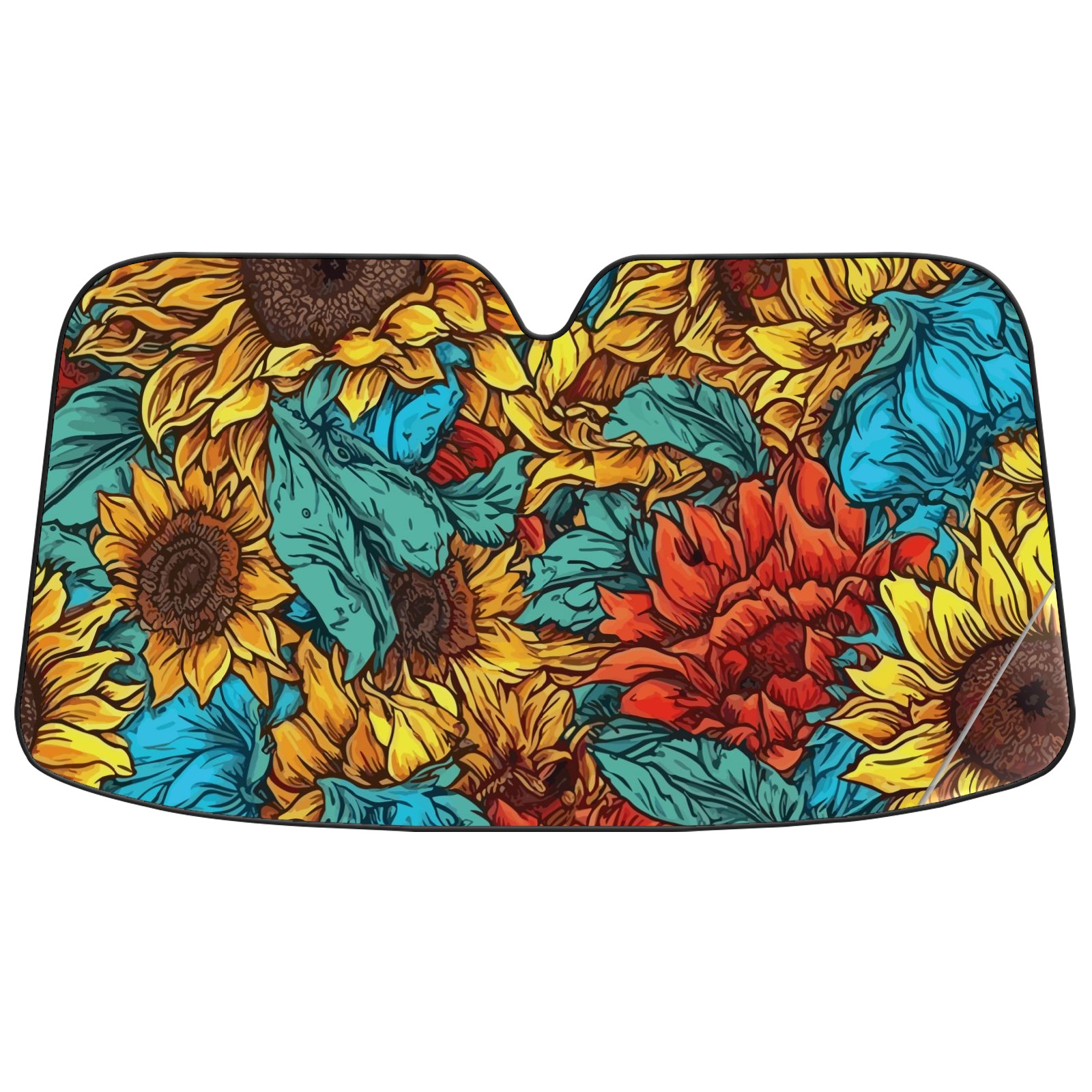 Car Windshield Sun Shade For Front Window Colorful Sunflower Foldable Vehicle Windshield Car Sun Visor Covers Automotive Window Protector Car Camping Privacy Sun Blocker