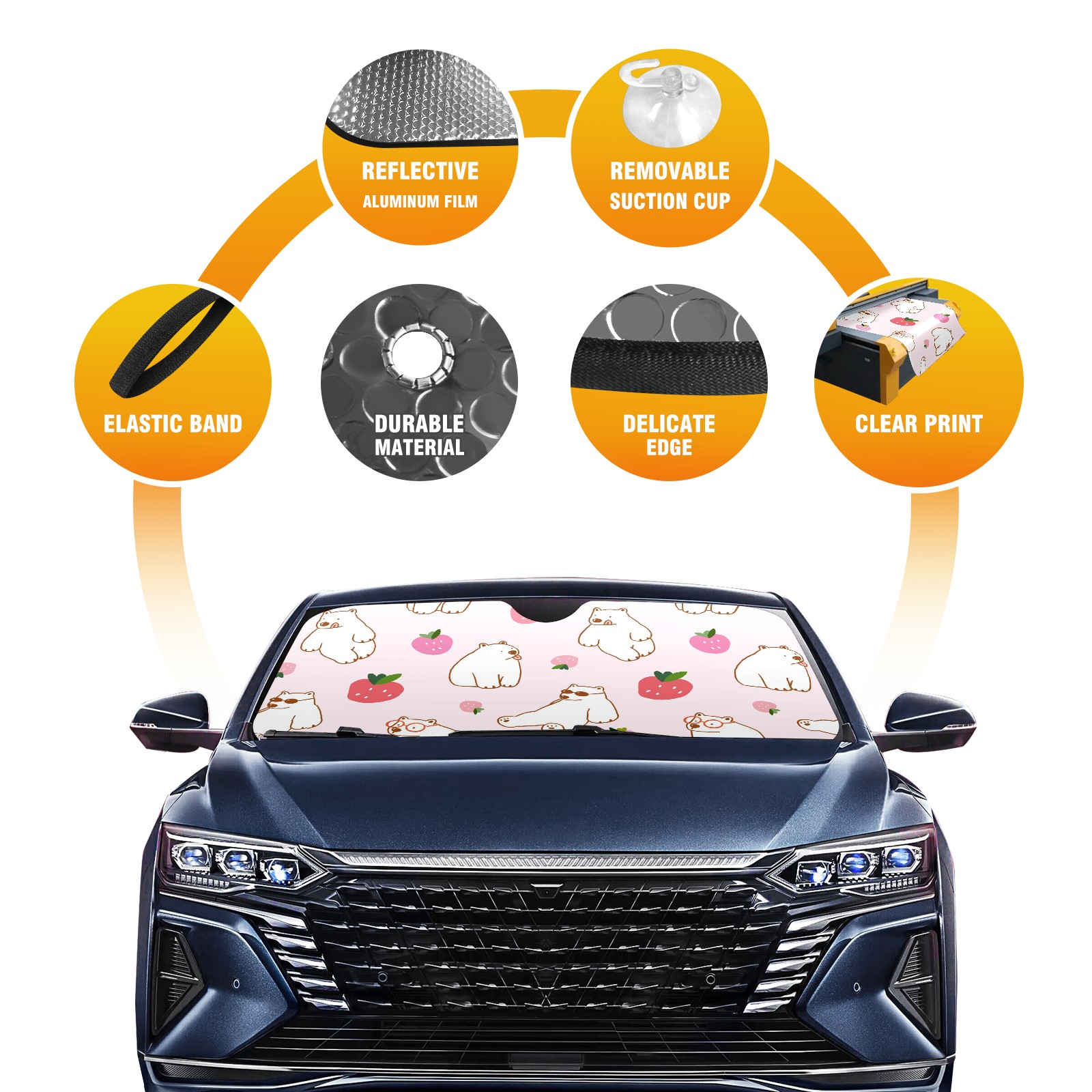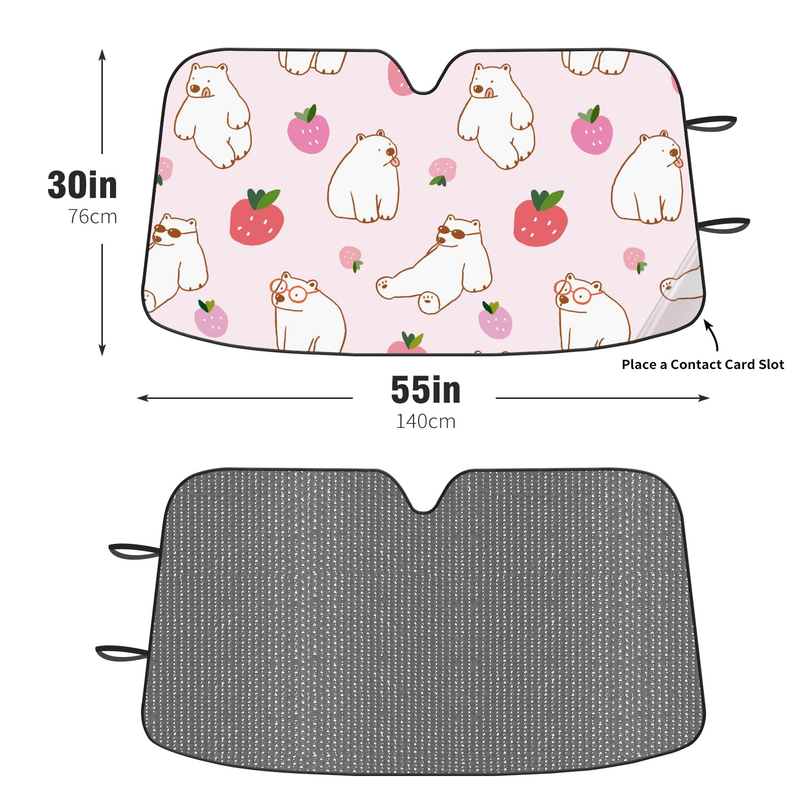 Car Windshield Sun Shade For Front Window White Bear Strawberry On Pink Background Foldable Vehicle Windshield Car Sun Visor Covers Automotive Window Protector Car Camping Privacy Sun Blocker
