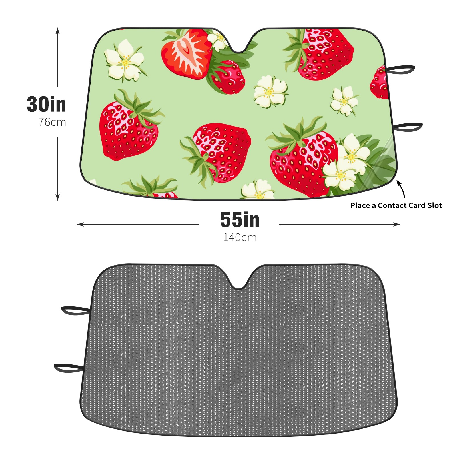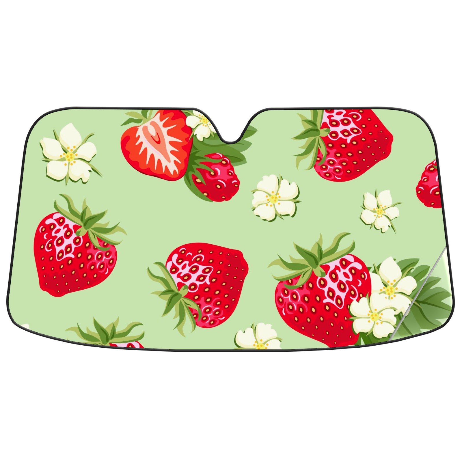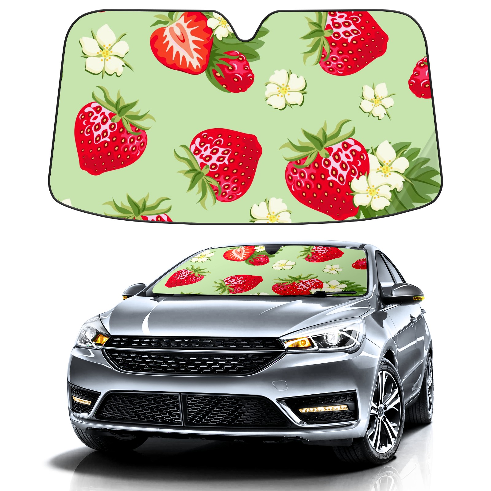 Car Windshield Sun Shade For Front Window Strawberry Flowers On Green Background Foldable Vehicle Windshield Car Sun Visor Covers Automotive Window Protector Car Camping Privacy Sun Blocker
