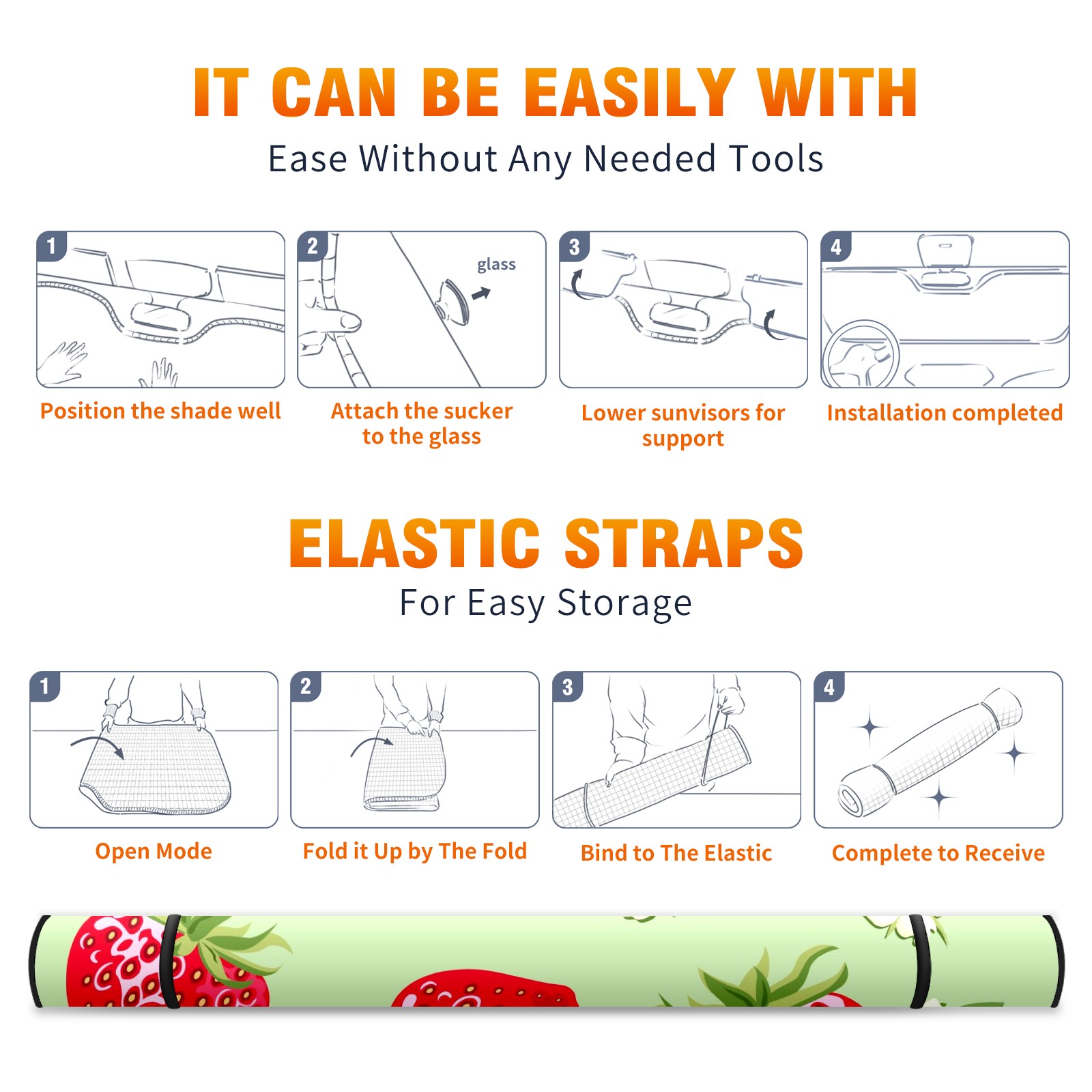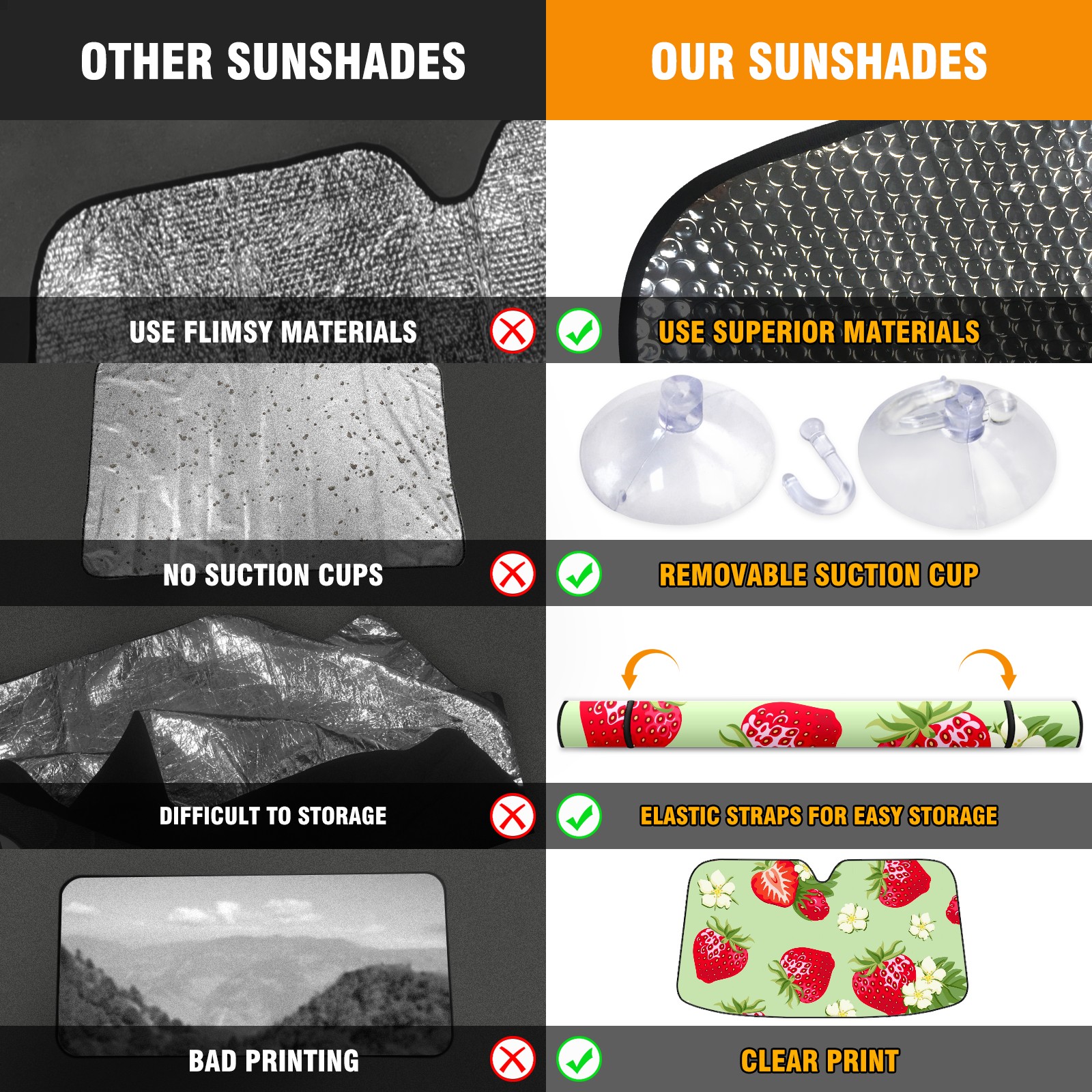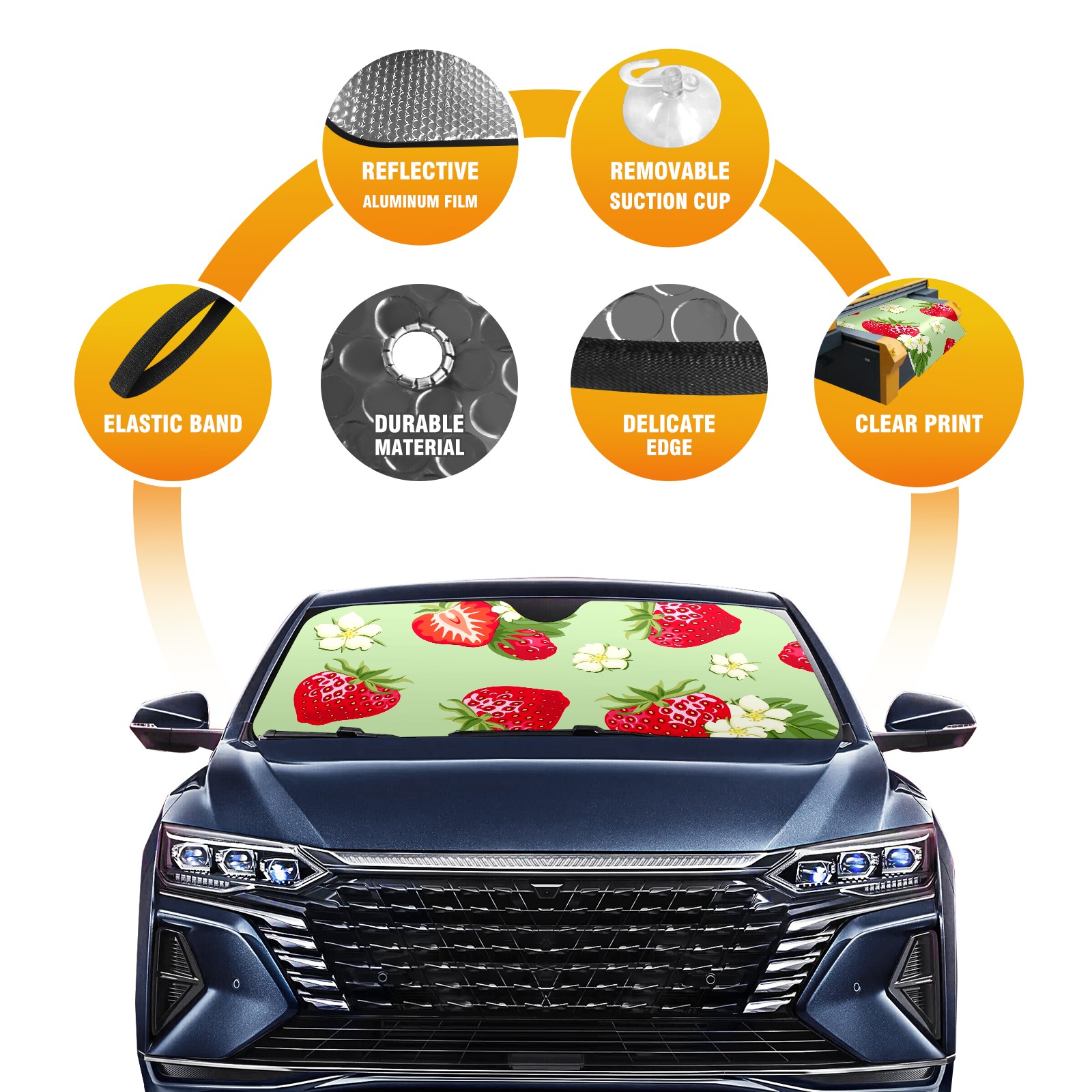 Car Windshield Sun Shade For Front Window Strawberry Flowers On Green Background Foldable Vehicle Windshield Car Sun Visor Covers Automotive Window Protector Car Camping Privacy Sun Blocker