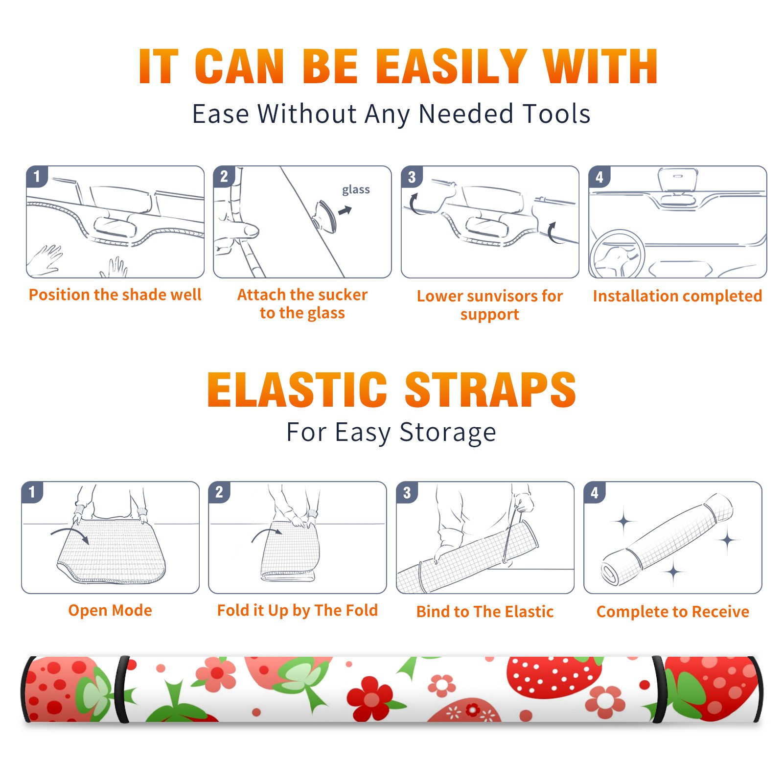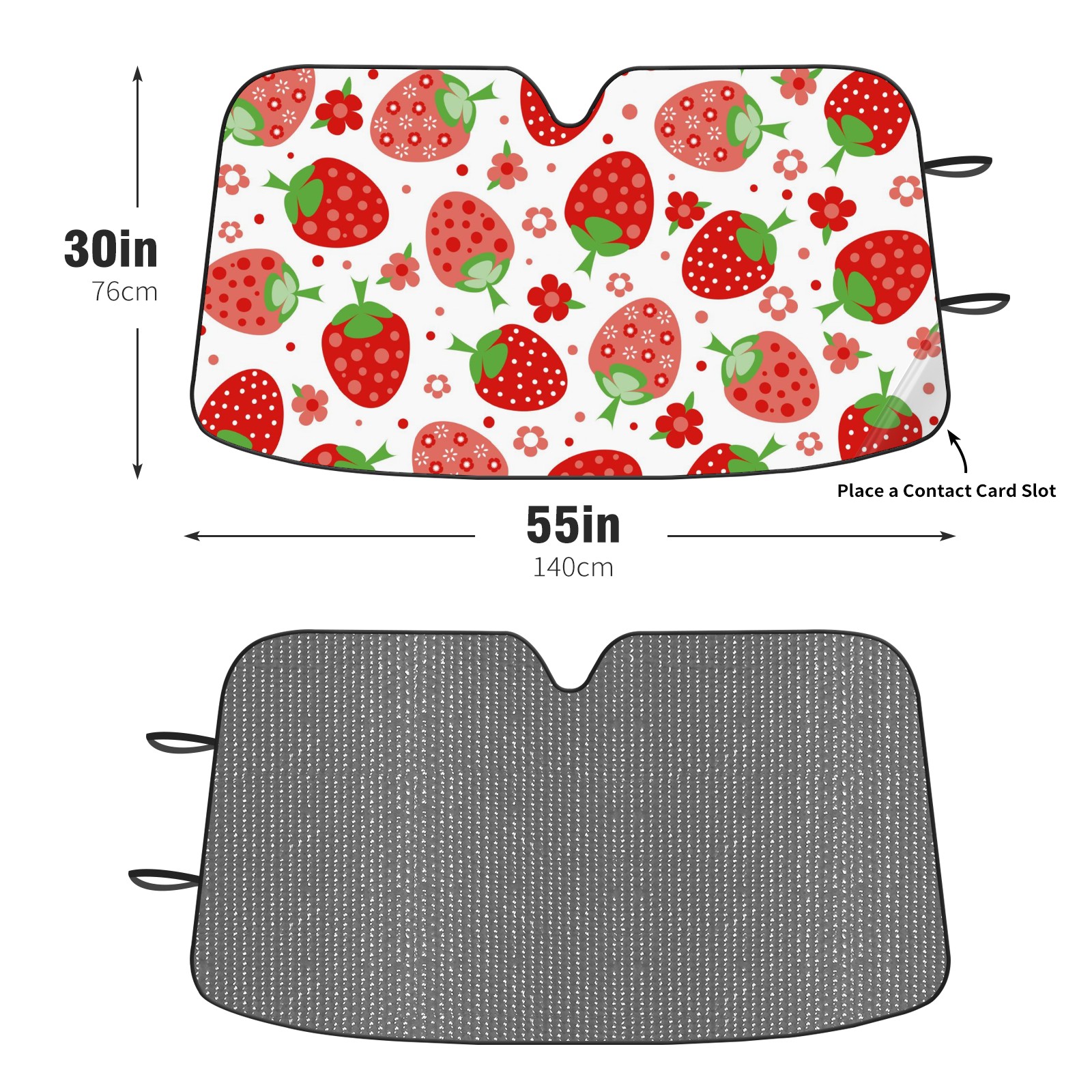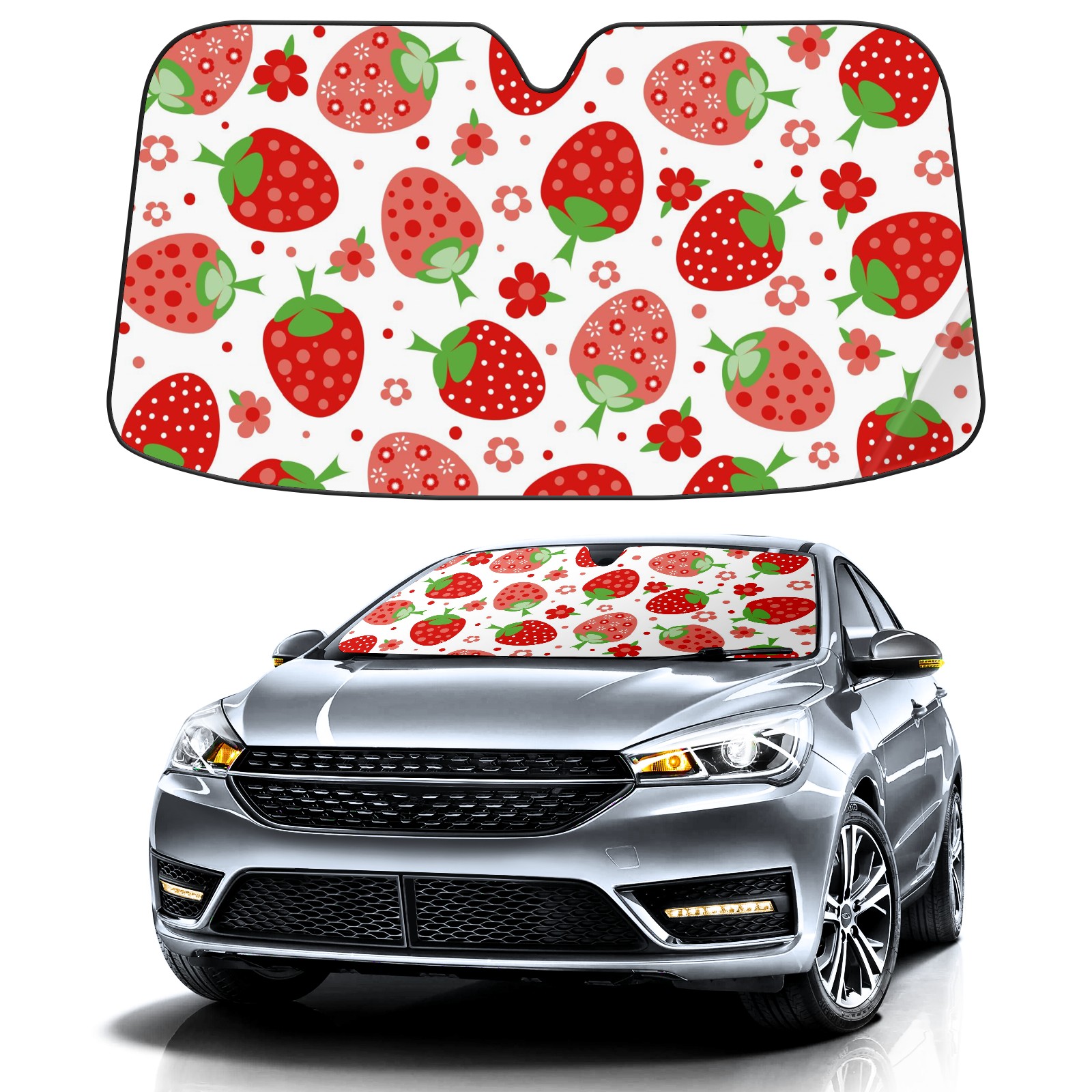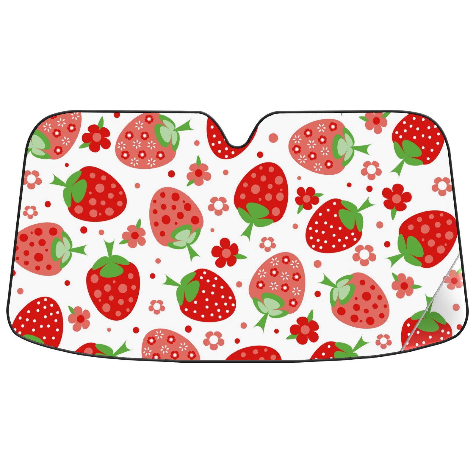 Car Windshield Sun Shade For Front Window Red Strawberry And Flowers On White Background Foldable Vehicle Windshield Car Sun Visor Covers Automotive Window Protector Car Camping Privacy Sun Blocker