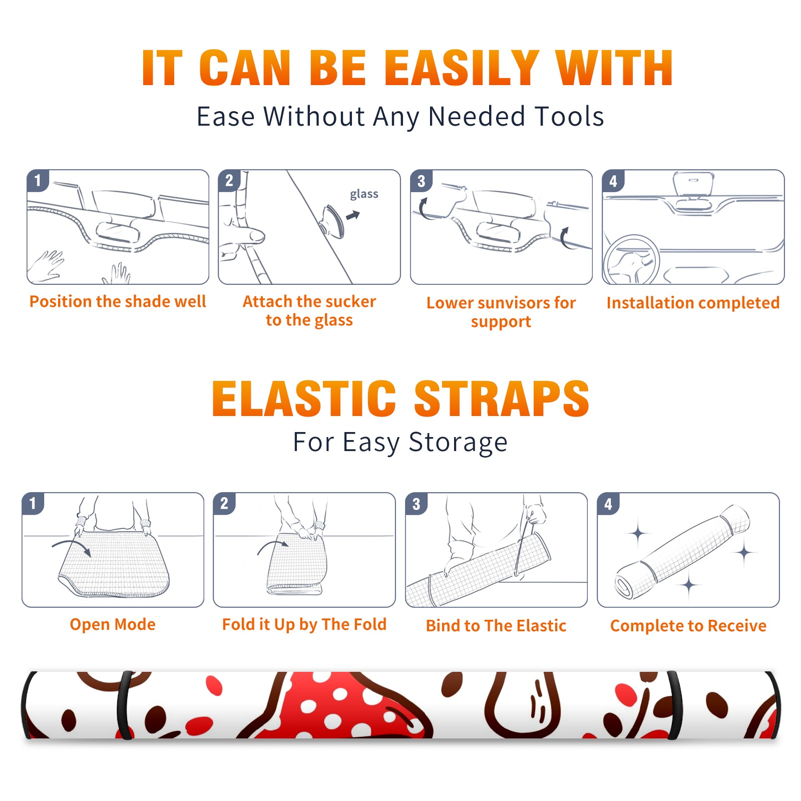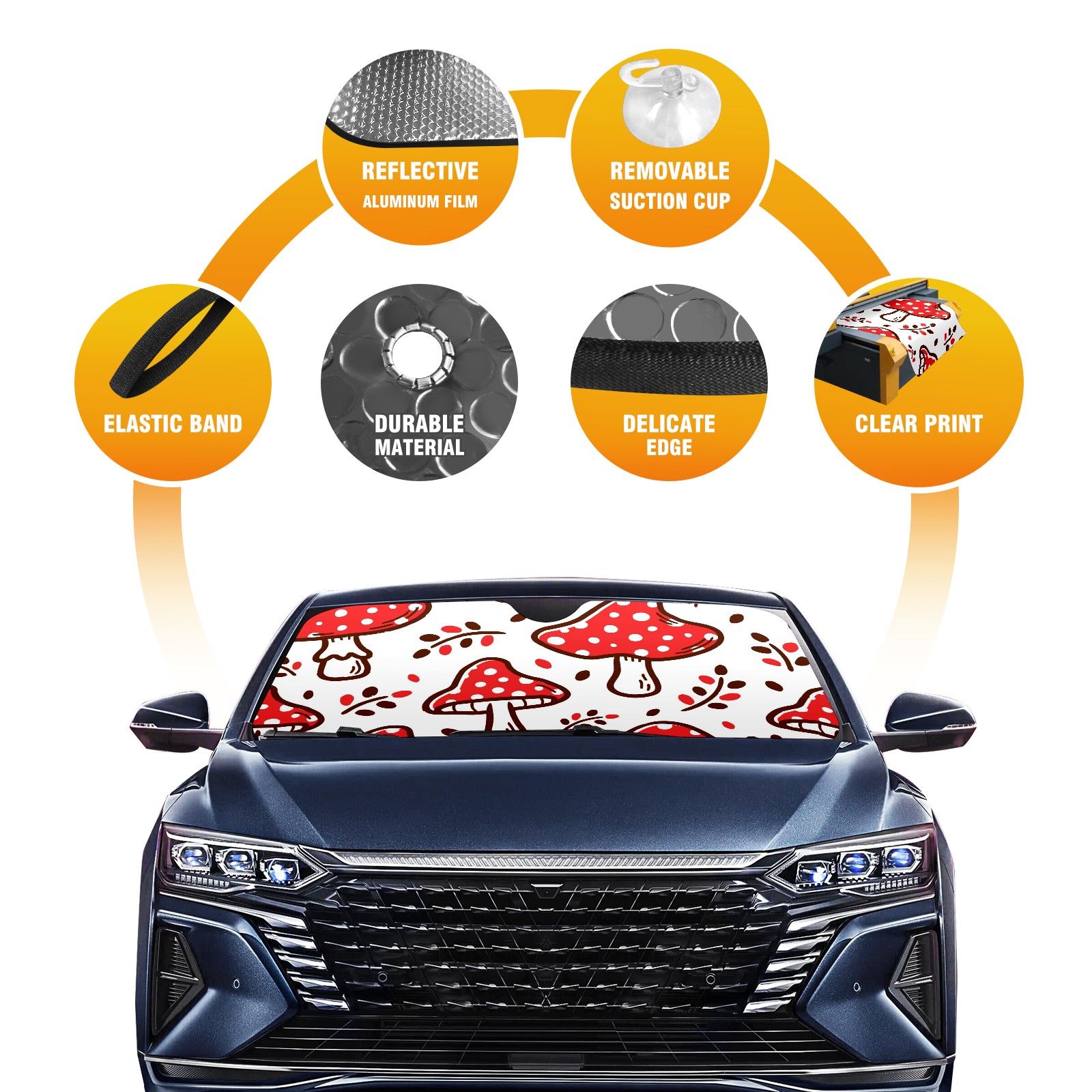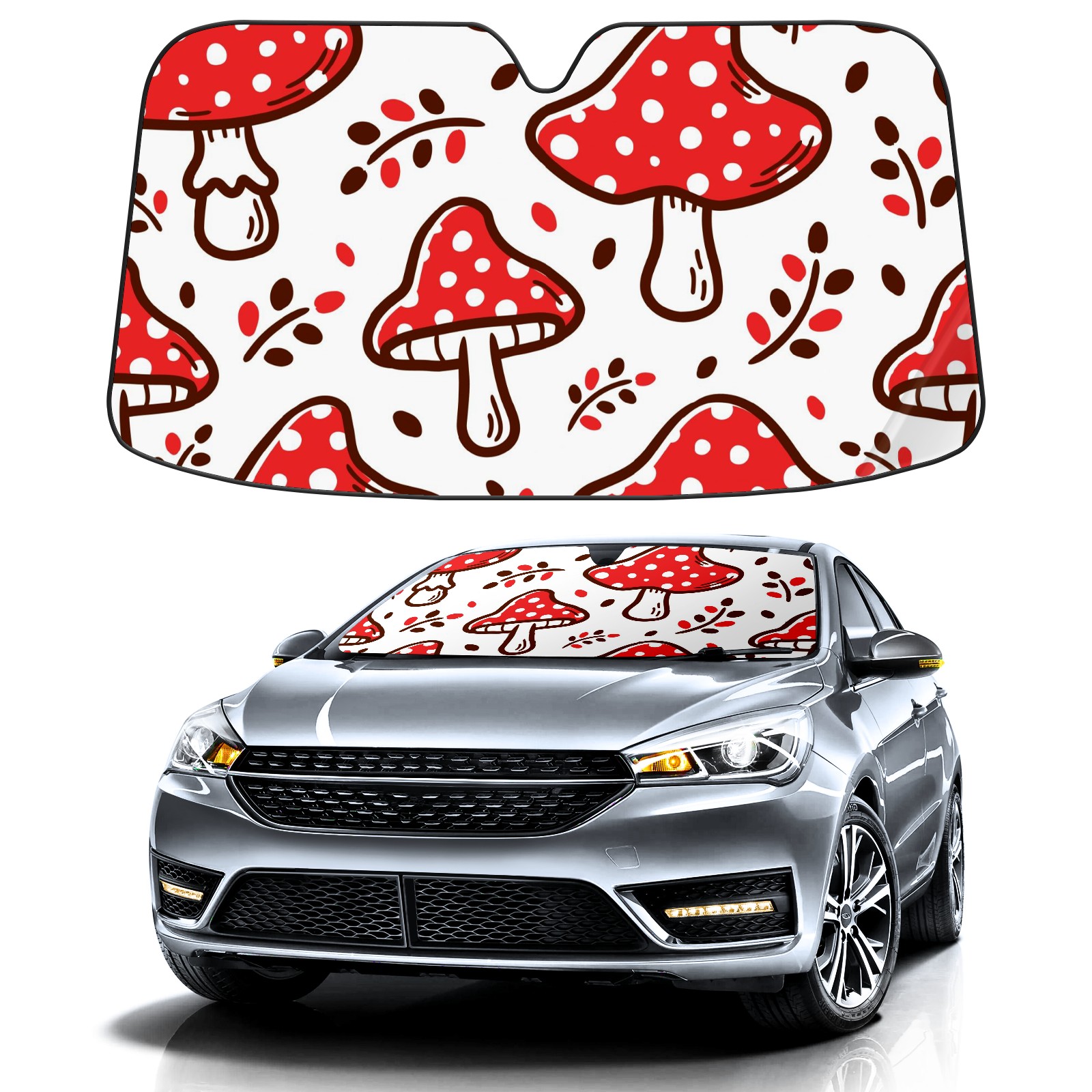 Car Windshield Sun Shade For Front Window Red Mushroom Foldable Vehicle Windshield Car Sun Visor Covers Automotive Window Protector Car Camping Privacy Sun Blocker
