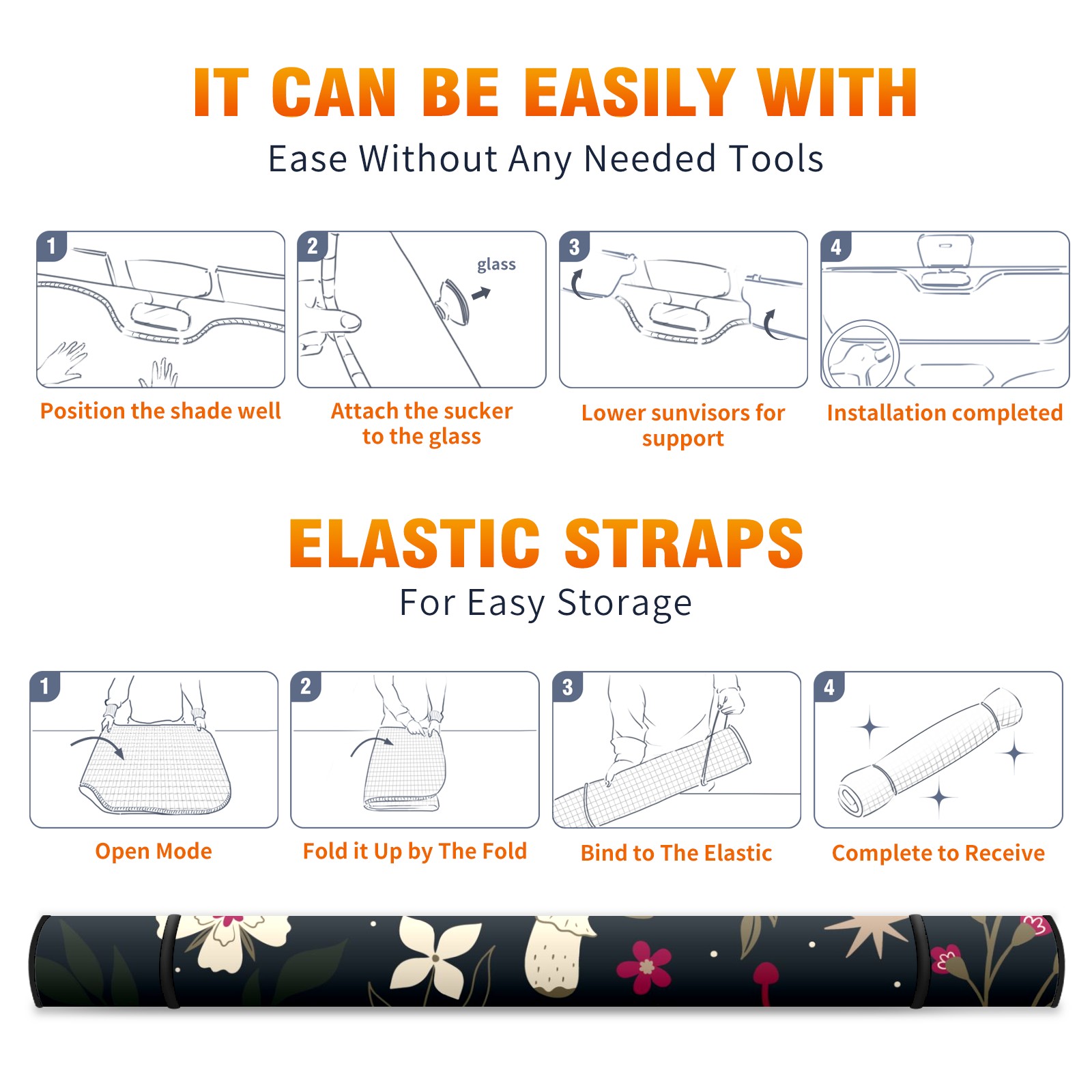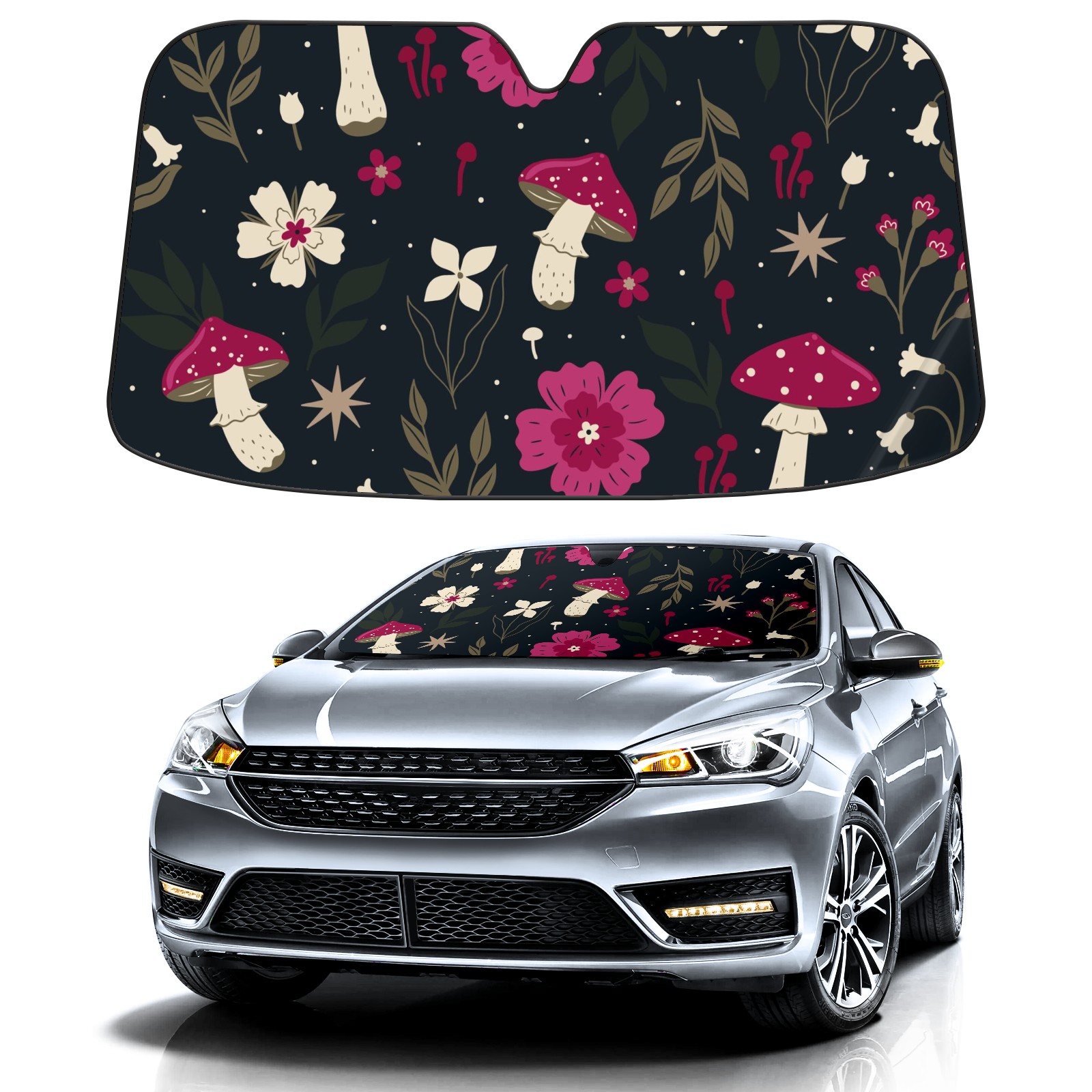 Car Windshield Sun Shade For Front Window Mushroom Flowers Agaric Foldable Vehicle Windshield Car Sun Visor Covers Automotive Window Protector Car Camping Privacy Sun Blocker