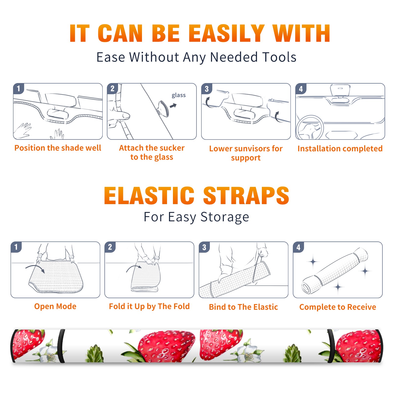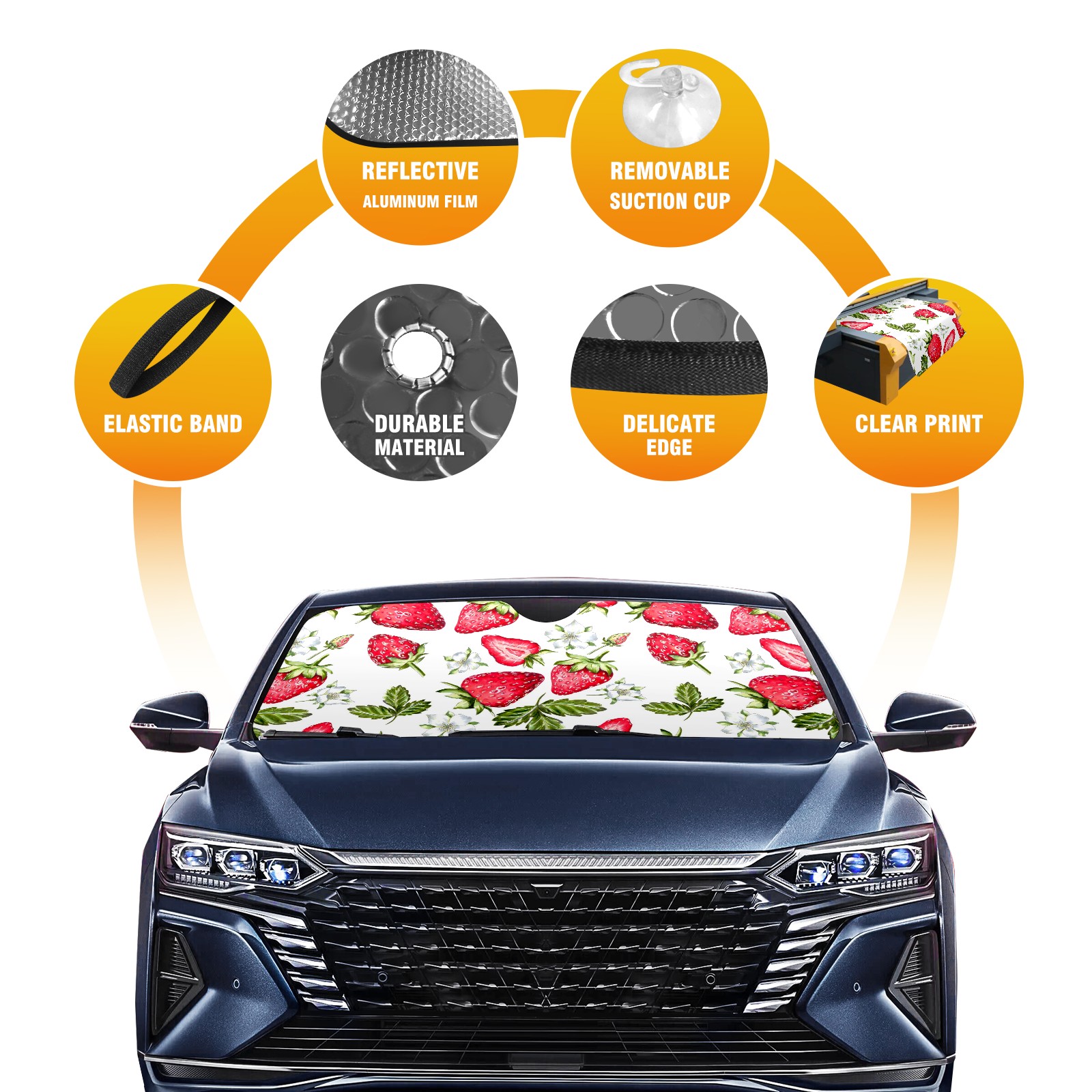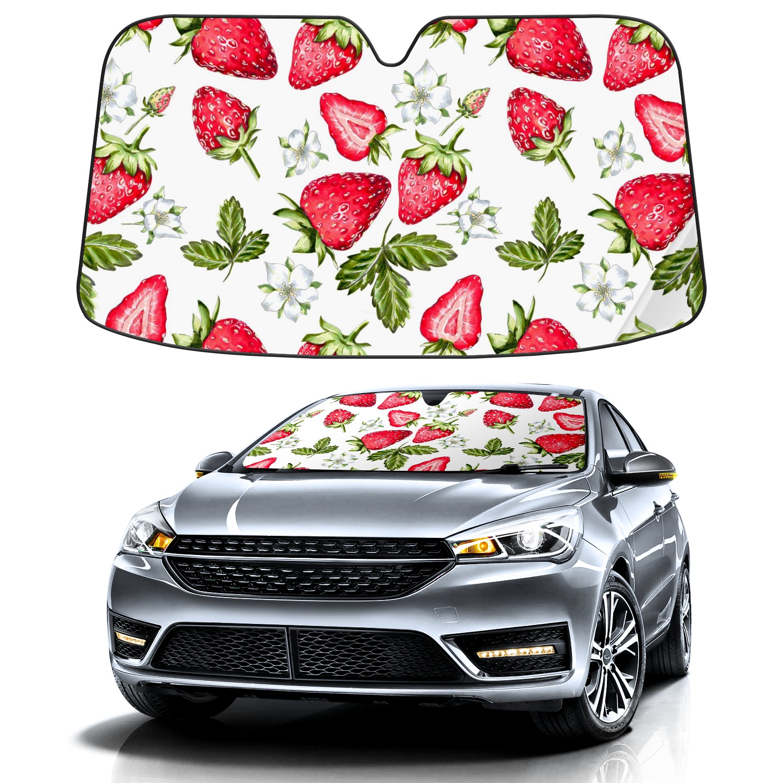 Car Windshield Sun Shade For Front Window Bright Beautiful Strawberry Foldable Vehicle Windshield Car Sun Visor Covers Automotive Window Protector Car Camping Privacy Sun Blocker