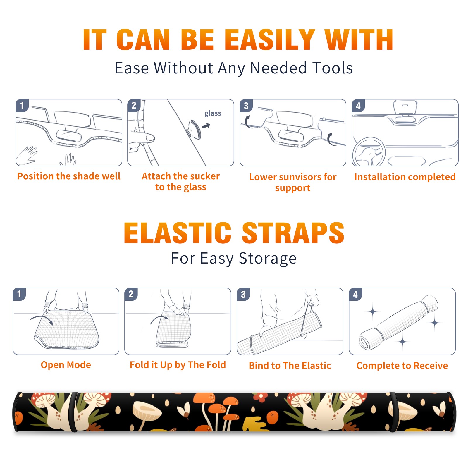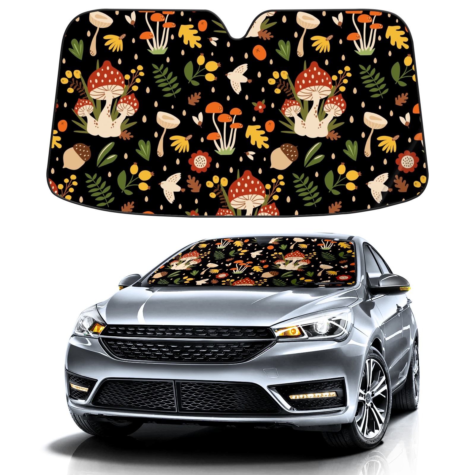 Car Windshield Sun Shade For Front Window Mushroom Fall Leaves Berry Flower Foldable Vehicle Windshield Car Sun Visor Covers Automotive Window Protector Car Camping Privacy Sun Blocker
