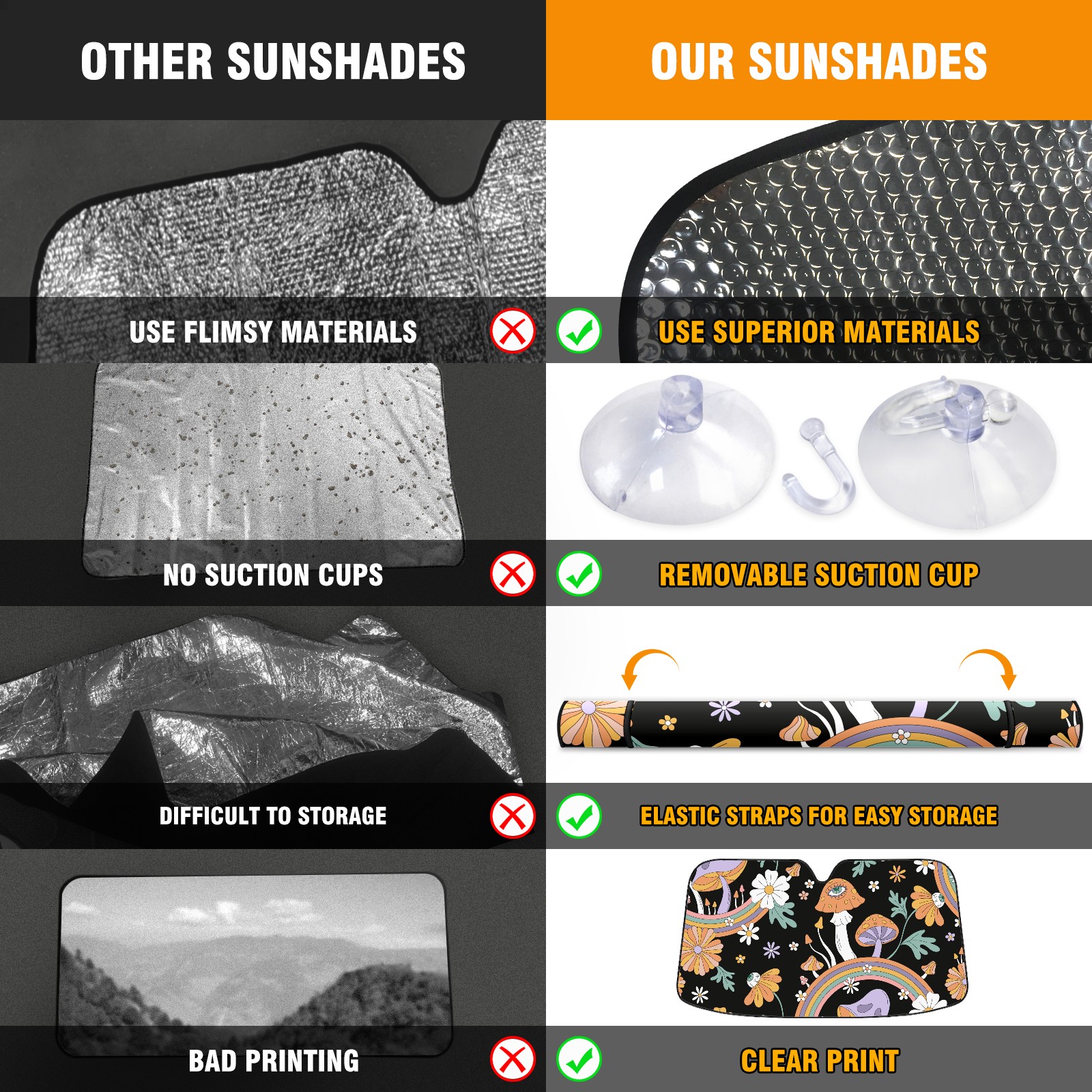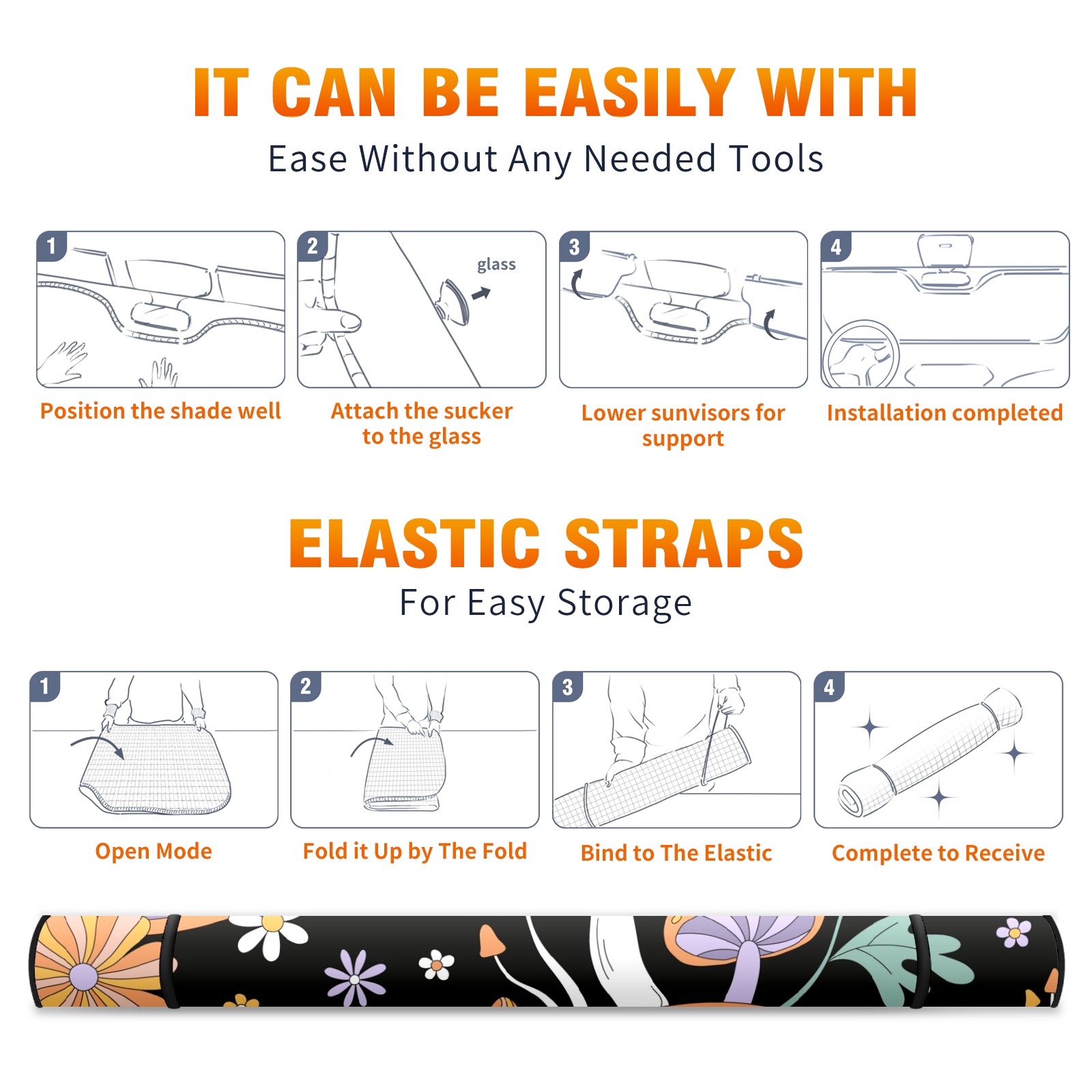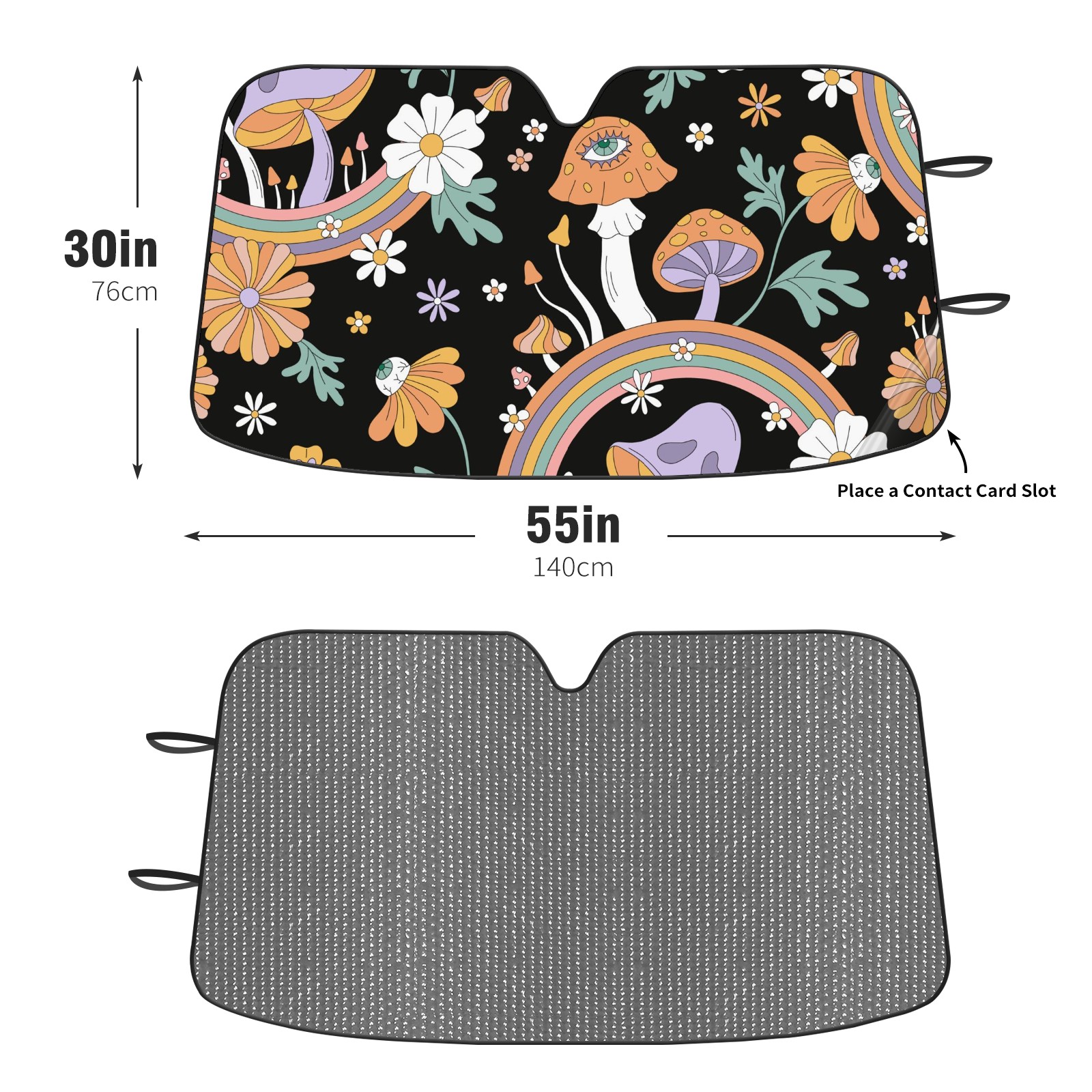 Car Windshield Sun Shade For Front Window Boho Mushroom Rainbow Floral Foldable Vehicle Windshield Car Sun Visor Covers Automotive Window Protector Car Camping Privacy Sun Blocker