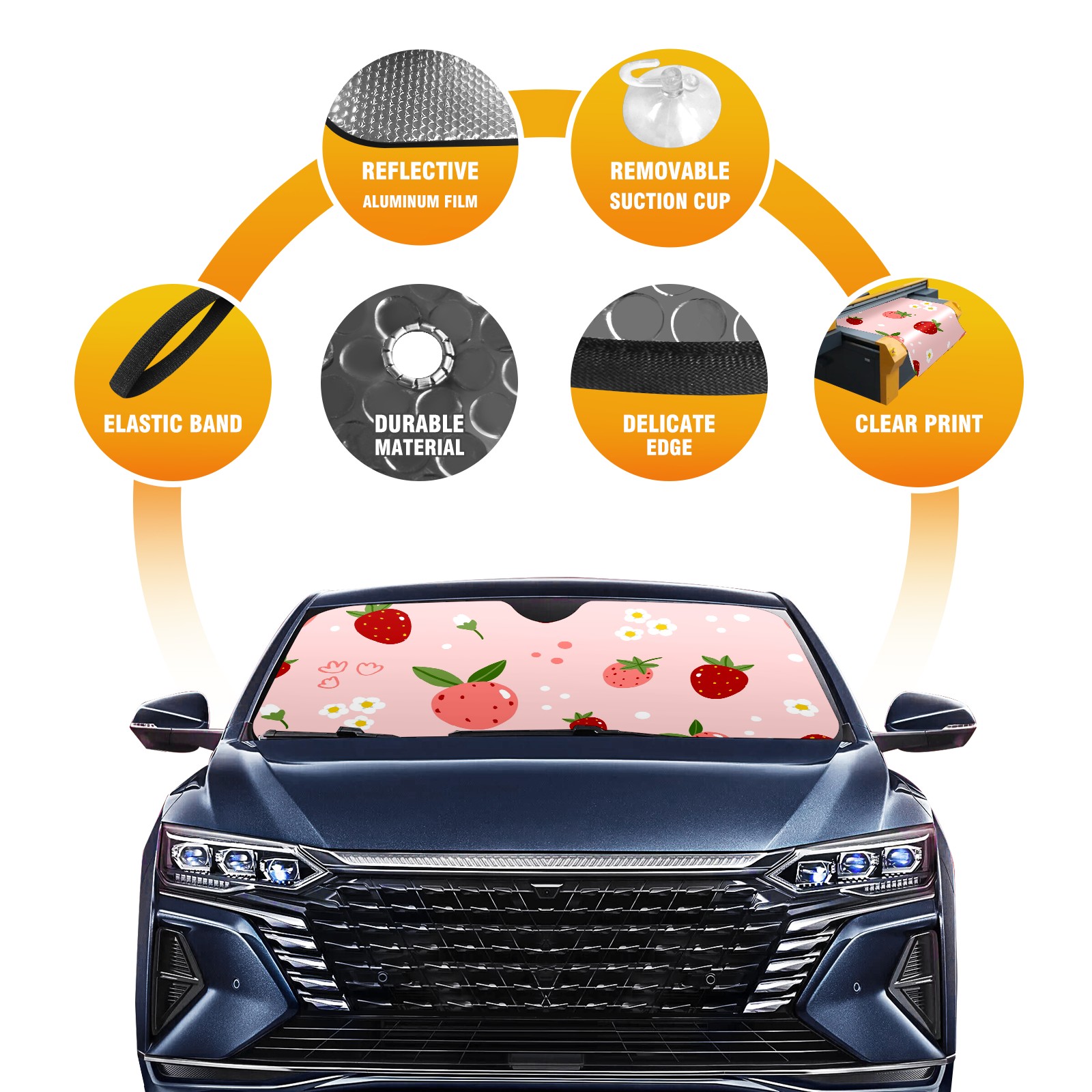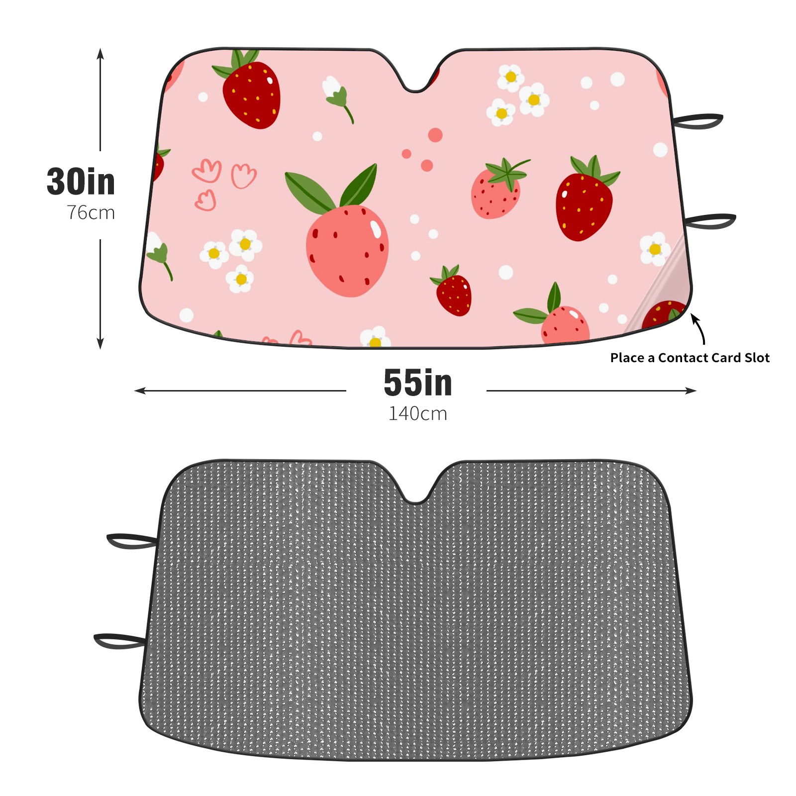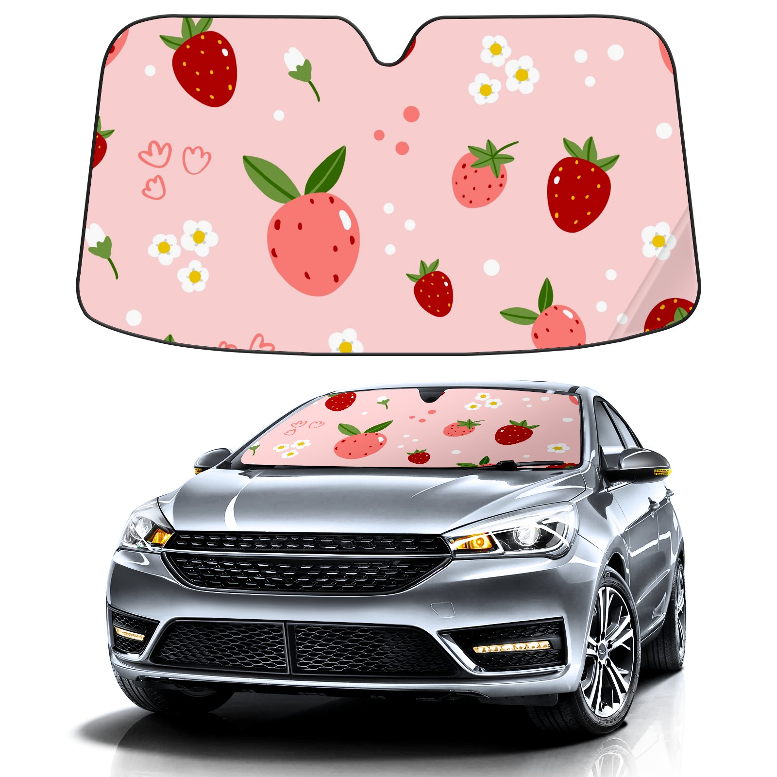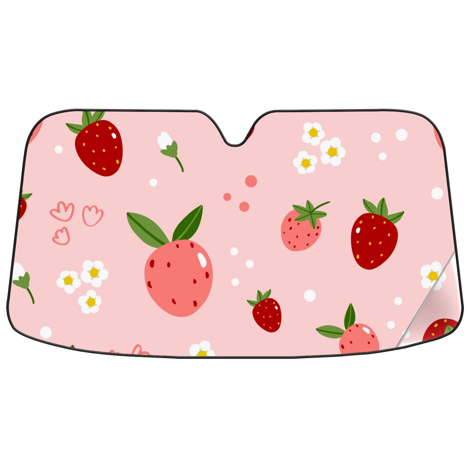 Car Windshield Sun Shade For Front Window Berry Strawberry Flowers Foldable Vehicle Windshield Car Sun Visor Covers Automotive Window Protector Car Camping Privacy Sun Blocker