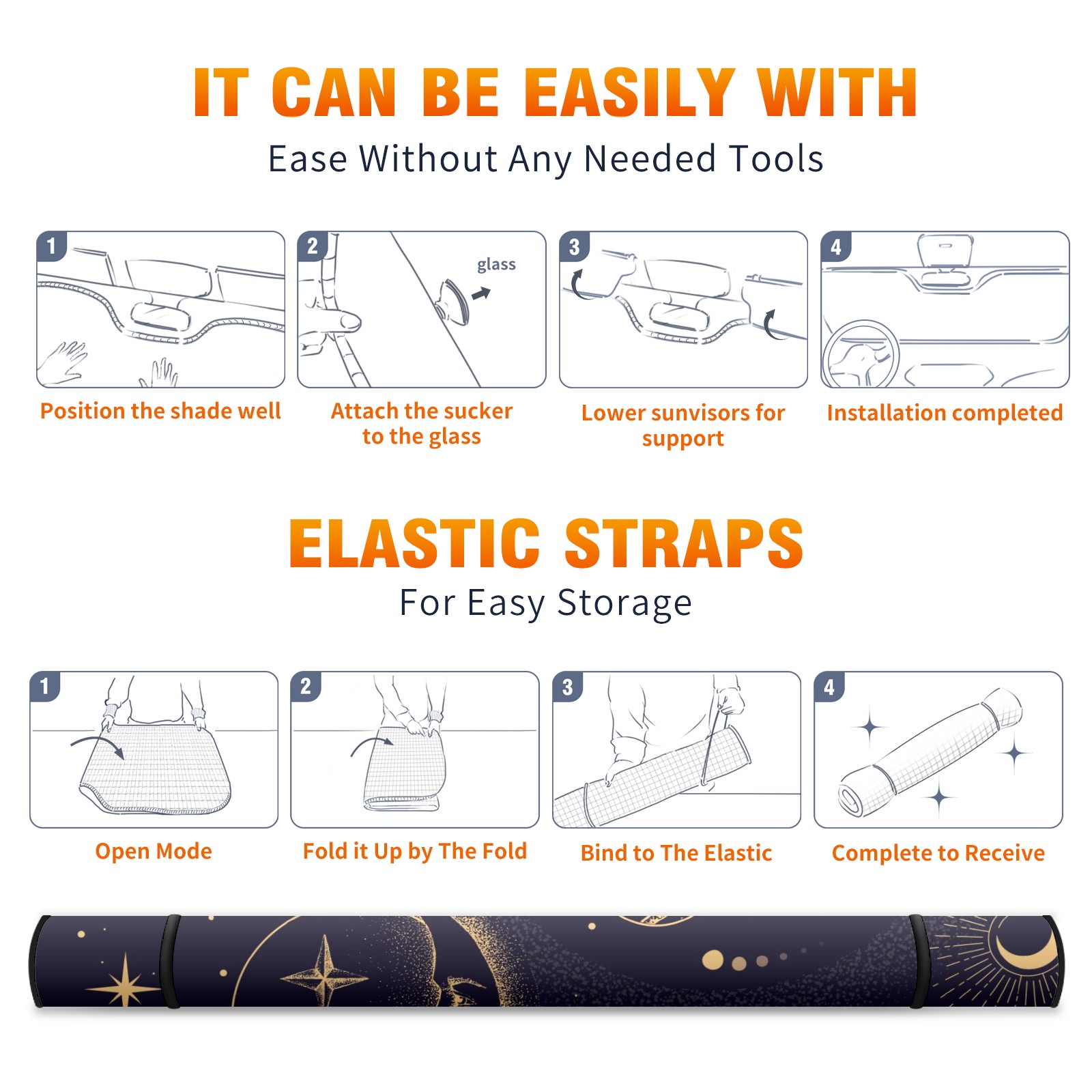Car Windshield Sun Shade For Front Window Modern Magic Astrology Sun Star Foldable Vehicle Windshield Car Sun Visor Covers Automotive Window Protector Car Camping Privacy Sun Blocker