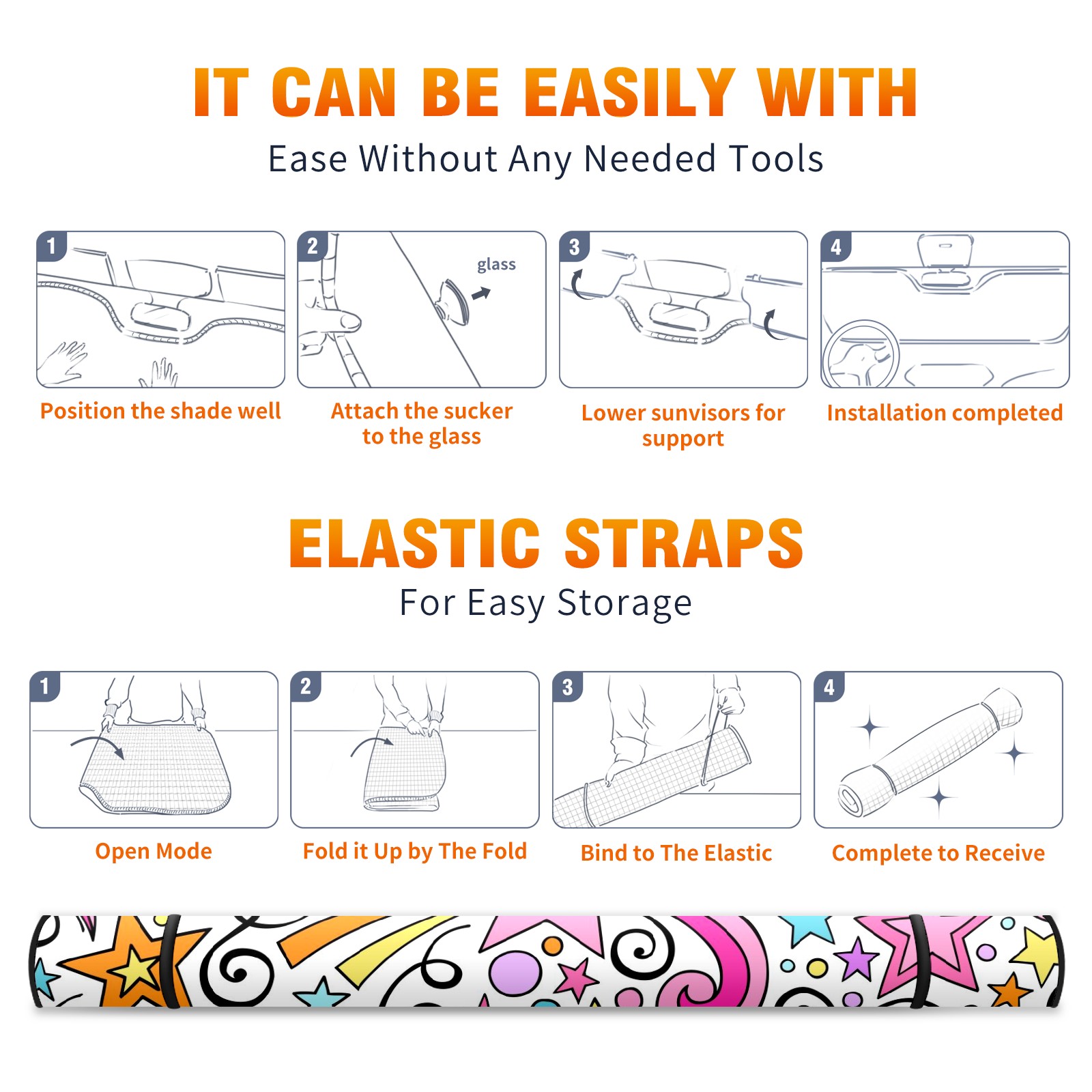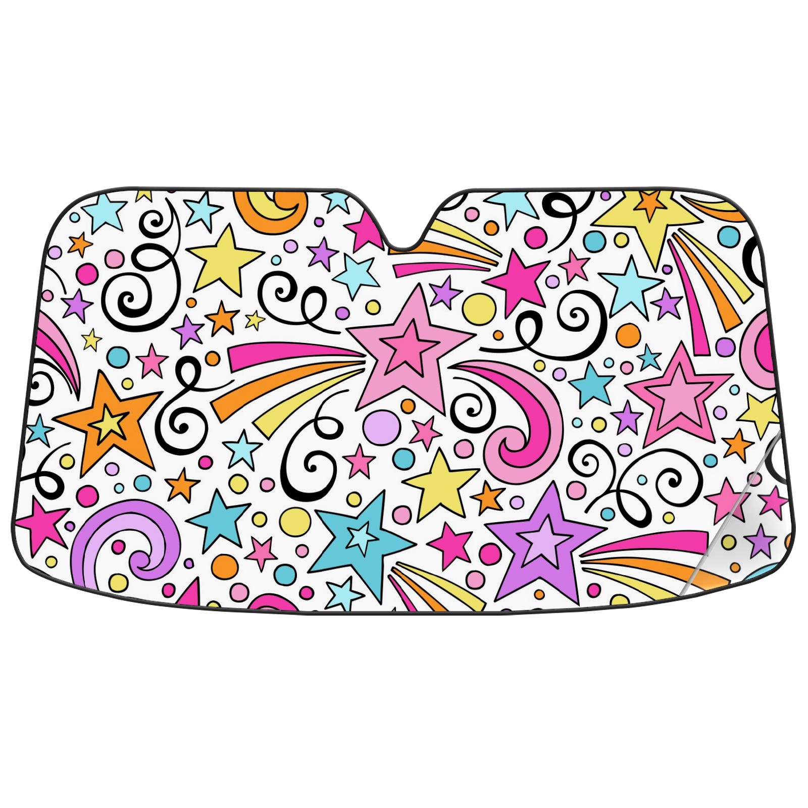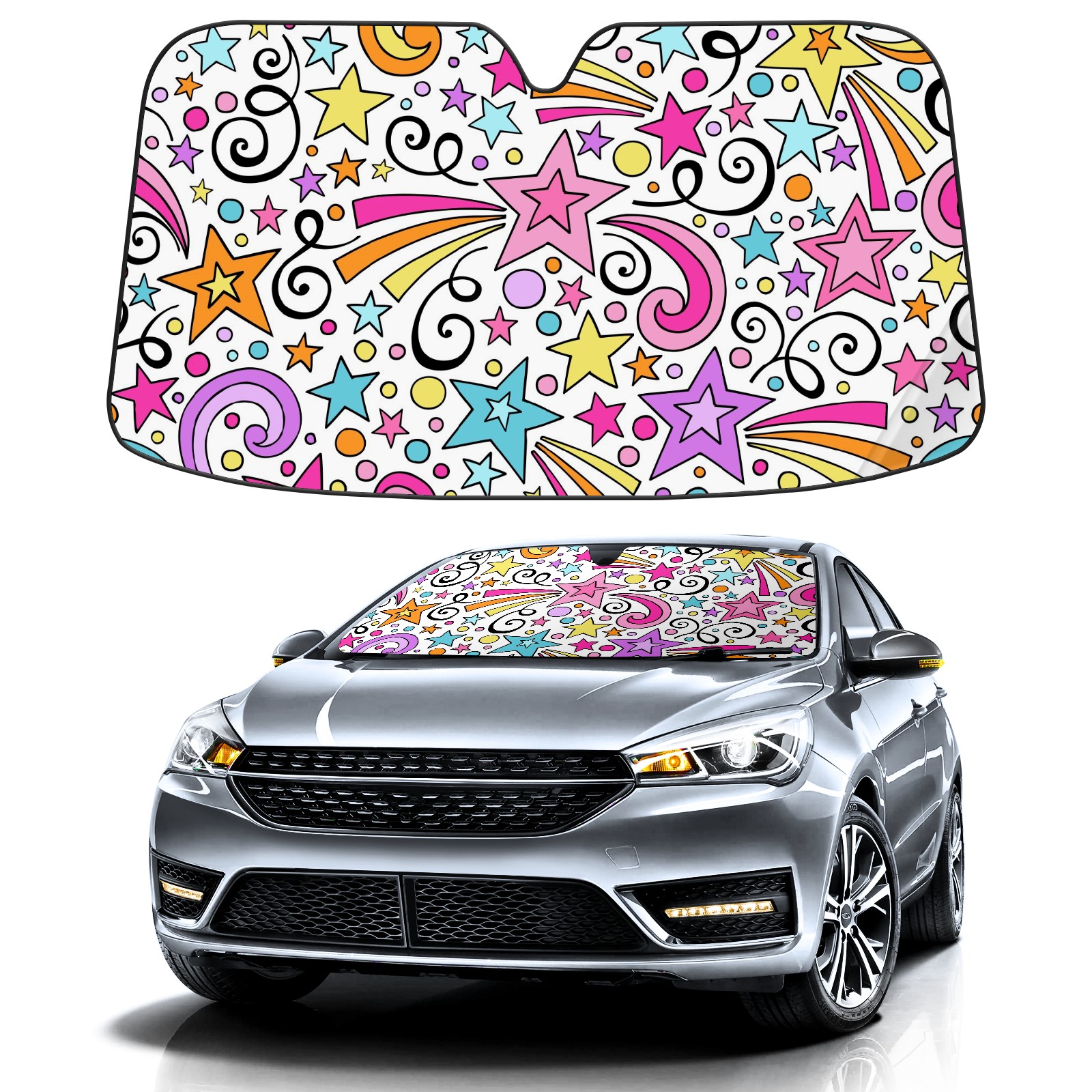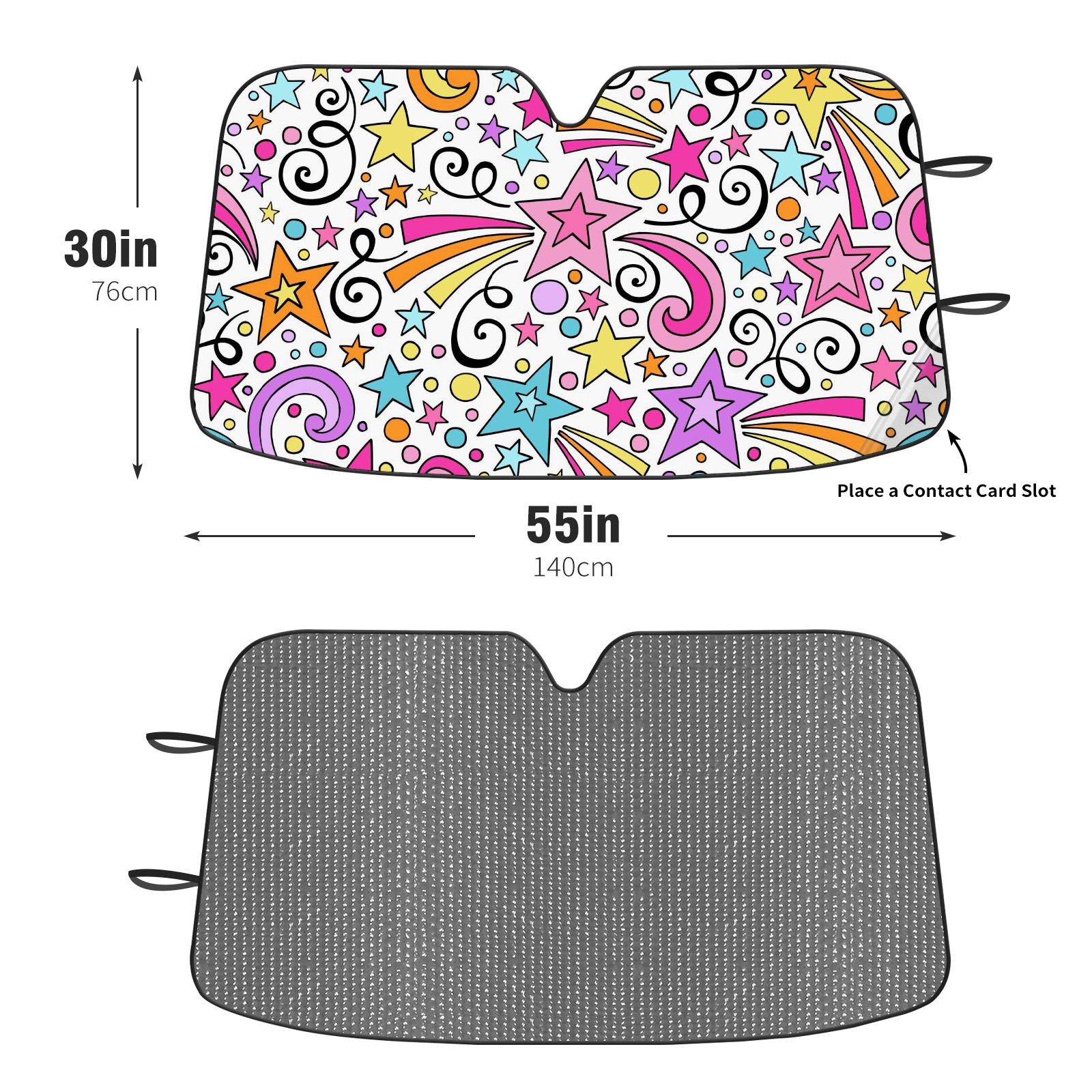 Car Windshield Sun Shade For Front Window Star And Swirl Doodle Foldable Vehicle Windshield Car Sun Visor Covers Automotive Window Protector Car Camping Privacy Sun Blocker