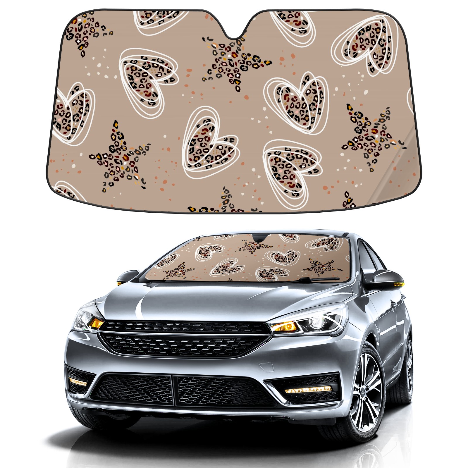 Car Windshield Sun Shade For Front Window Heart Star Leopard Foldable Vehicle Windshield Car Sun Visor Covers Automotive Window Protector Car Camping Privacy Sun Blocker