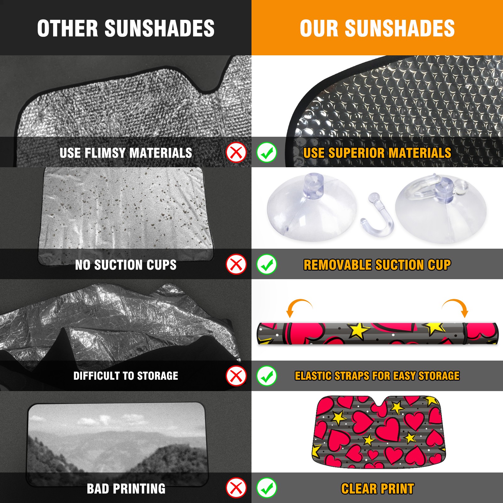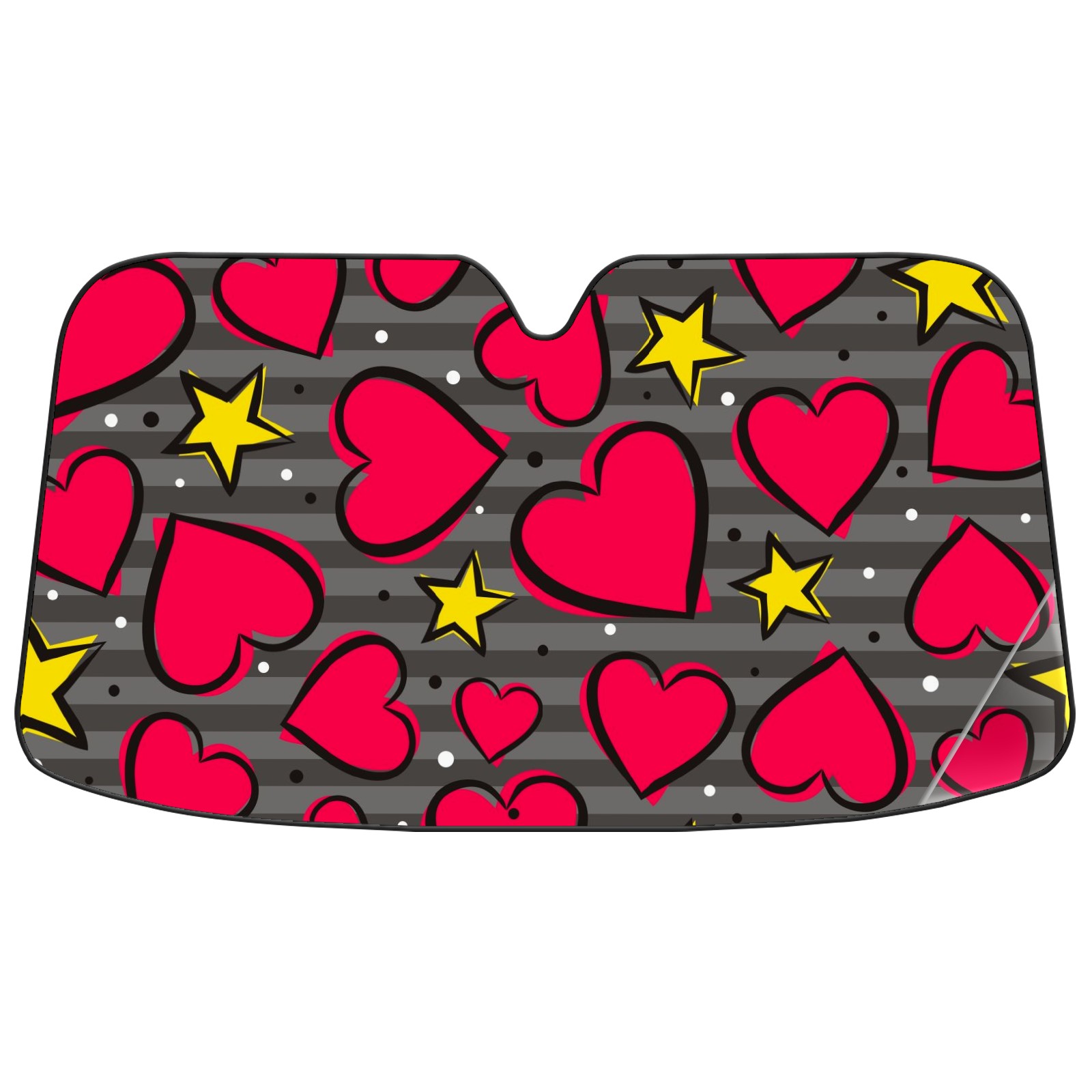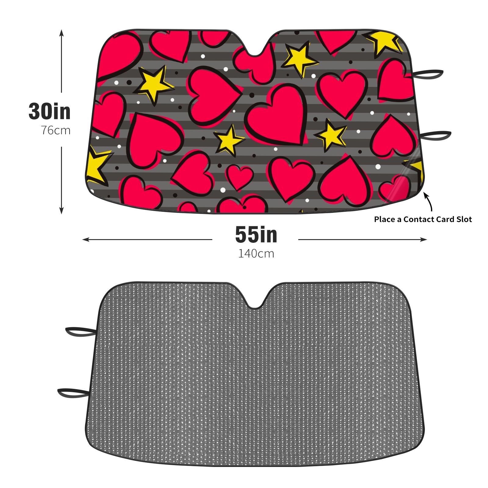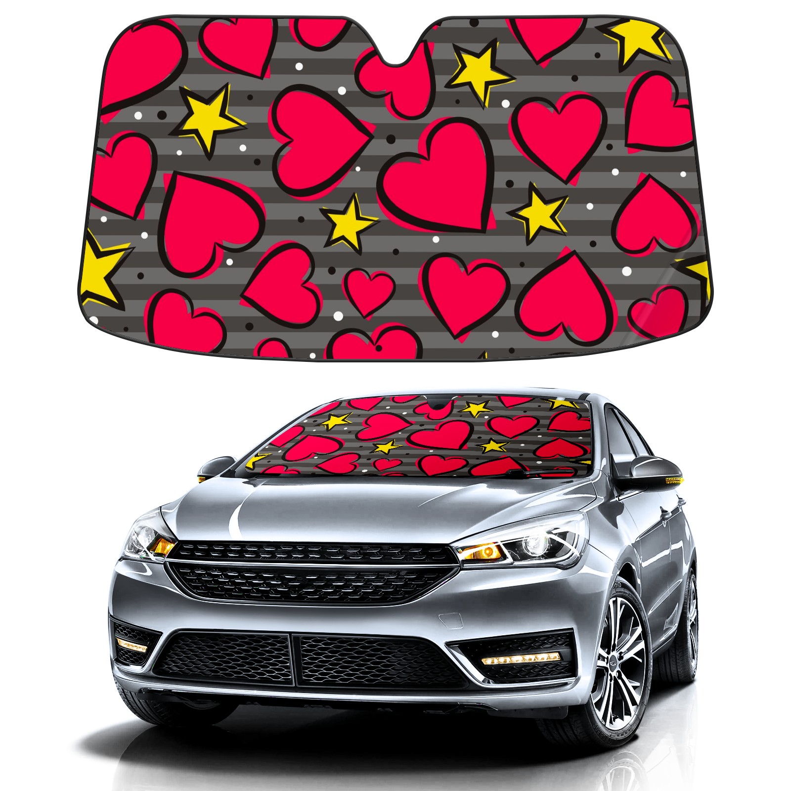 Car Windshield Sun Shade For Front Window Heart And Star On Striped Gray Background Foldable Vehicle Windshield Car Sun Visor Covers Automotive Window Protector Car Camping Privacy Sun Blocker
