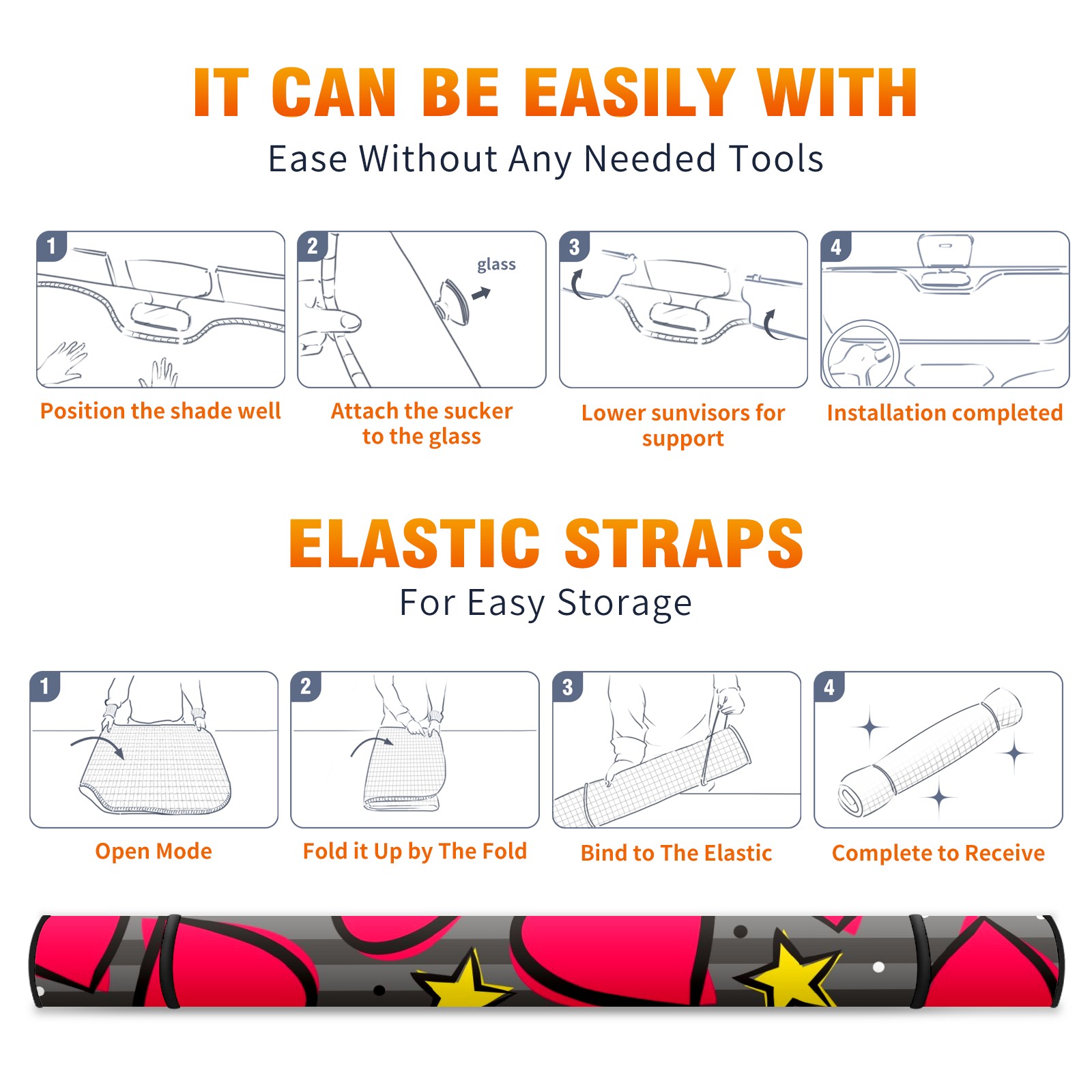 • Diameter /Size 63"L x 33.5"W Made from excellent materials which makes it sturdy and protects the car from the sun. Easy to use and pack. Makes the interior of the car cooler.You can easily stash the sunshade in the storage bag or store long term.It open and closes easy. Also the leather storage bag is durable and easy to put the umbrella back into.This windshield sunshade provides complete coverage and keeps your car interior cool under direct sun. It is easy to open and position under the windshield and around the rear-view mirror. Makes Your Car Easy To Identify, Perfect For Finding Your Car In Crowded Parking Lots And Garages.Great Choice: It Is A Great Gift For Dad, Boyfriend, Brother, Brother And Uncle, Friends, Classmates, Family And So On. Notice: Due To Difference Computer Monitors, The Color Maybe Slightly Different From Picture. As Different Measurement Methods, Measurement Data Will Float Within 2%.I Hope You Understand. If You Have Any Question About The Item Please Do Not Hesitate To Contact Us Immediately And We Will Give You A Satisfactory Reply Within 24 Hours.