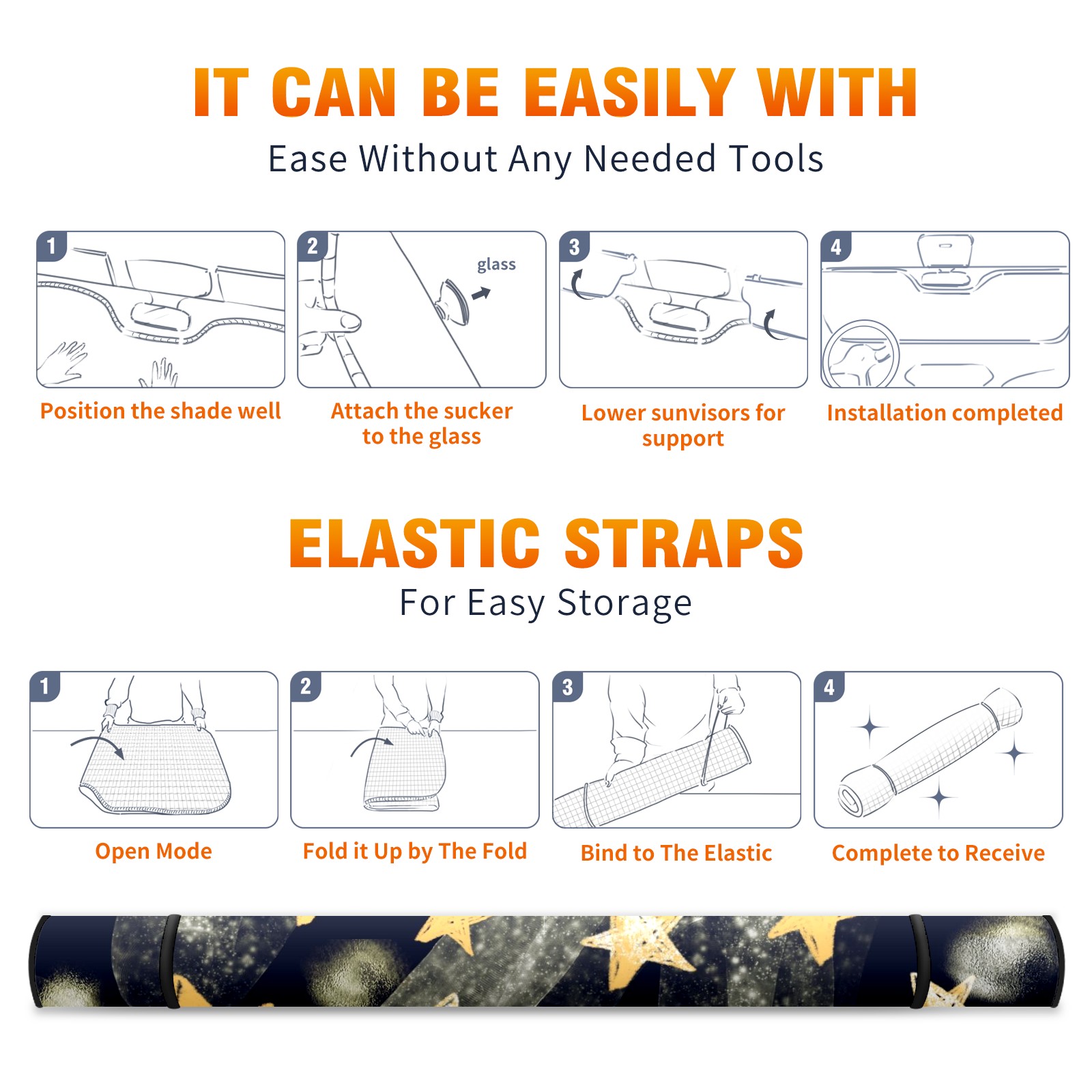 Car Windshield Sun Shade For Front Window Golden Stars Background Foldable Vehicle Windshield Car Sun Visor Covers Automotive Window Protector Car Camping Privacy Sun Blocker