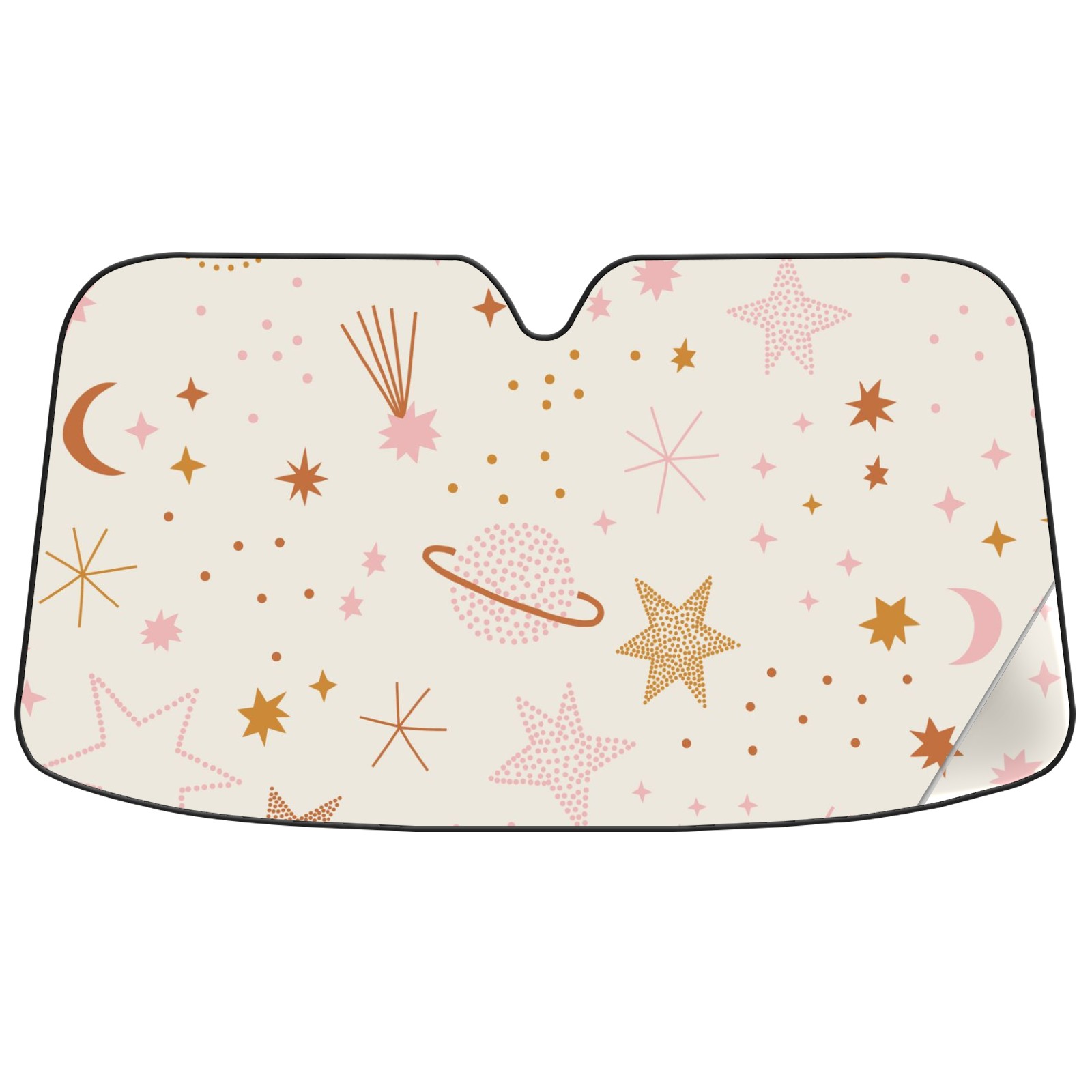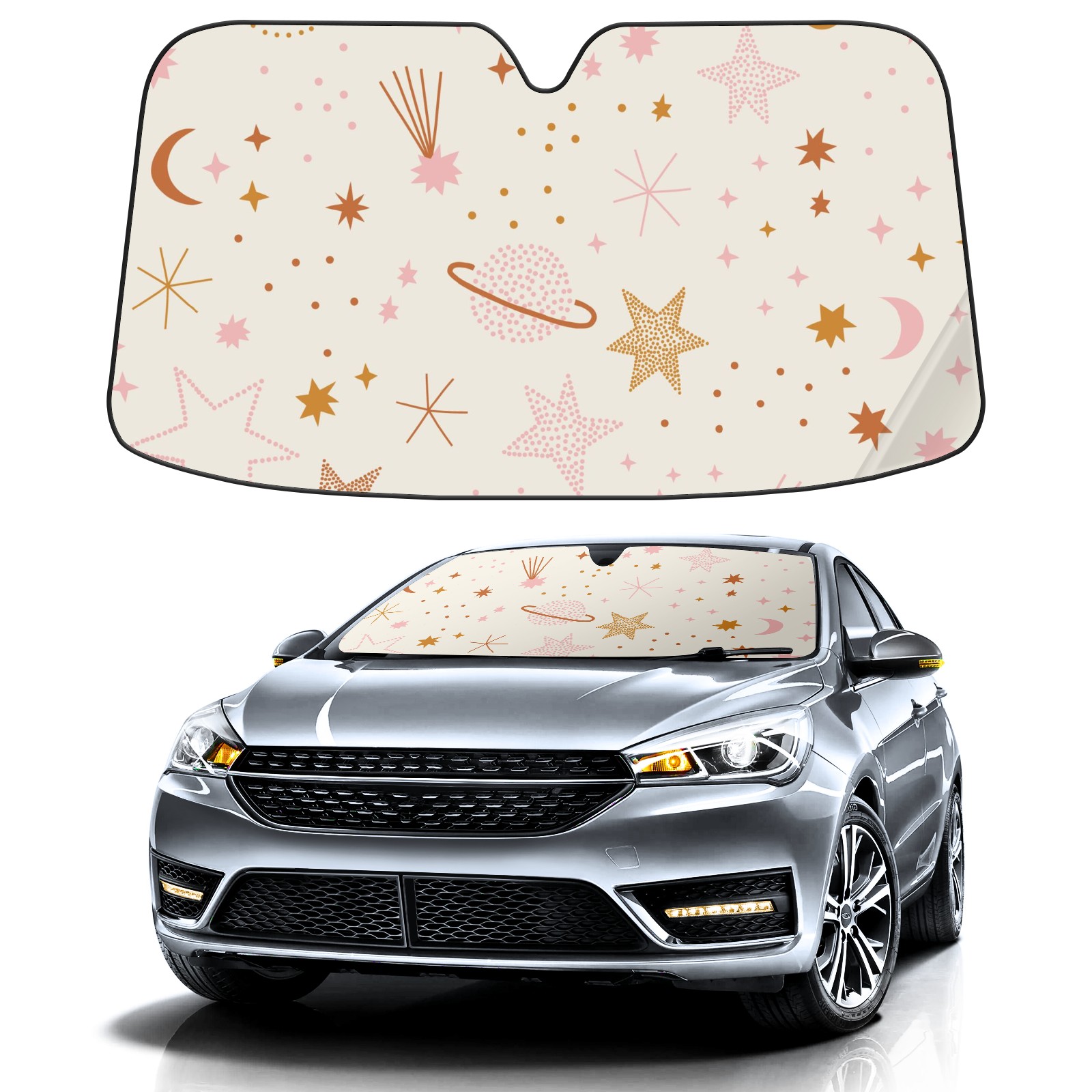 Car Windshield Sun Shade For Front Window Boho Universe Stars Moon Foldable Vehicle Windshield Car Sun Visor Covers Automotive Window Protector Car Camping Privacy Sun Blocker
