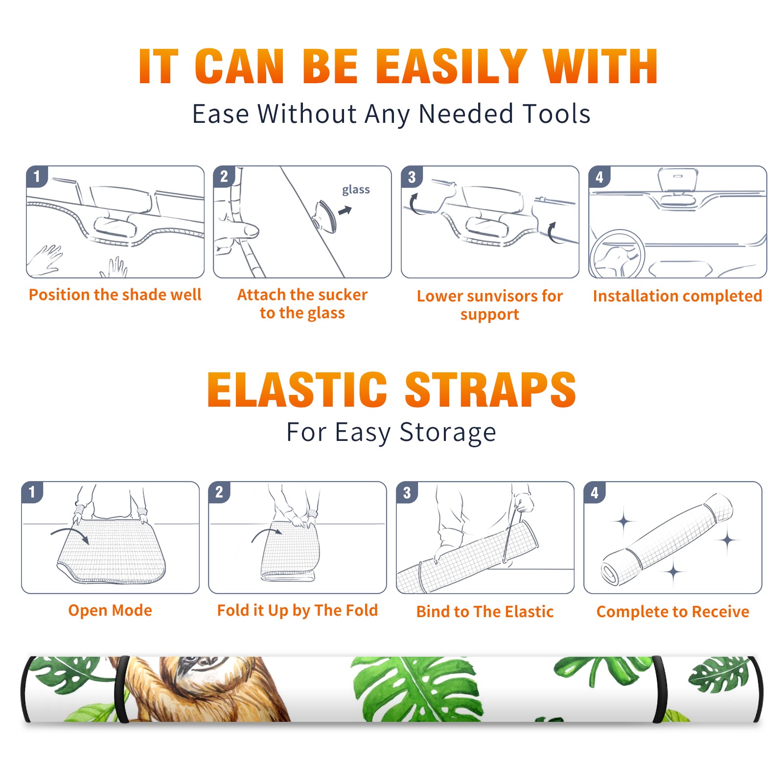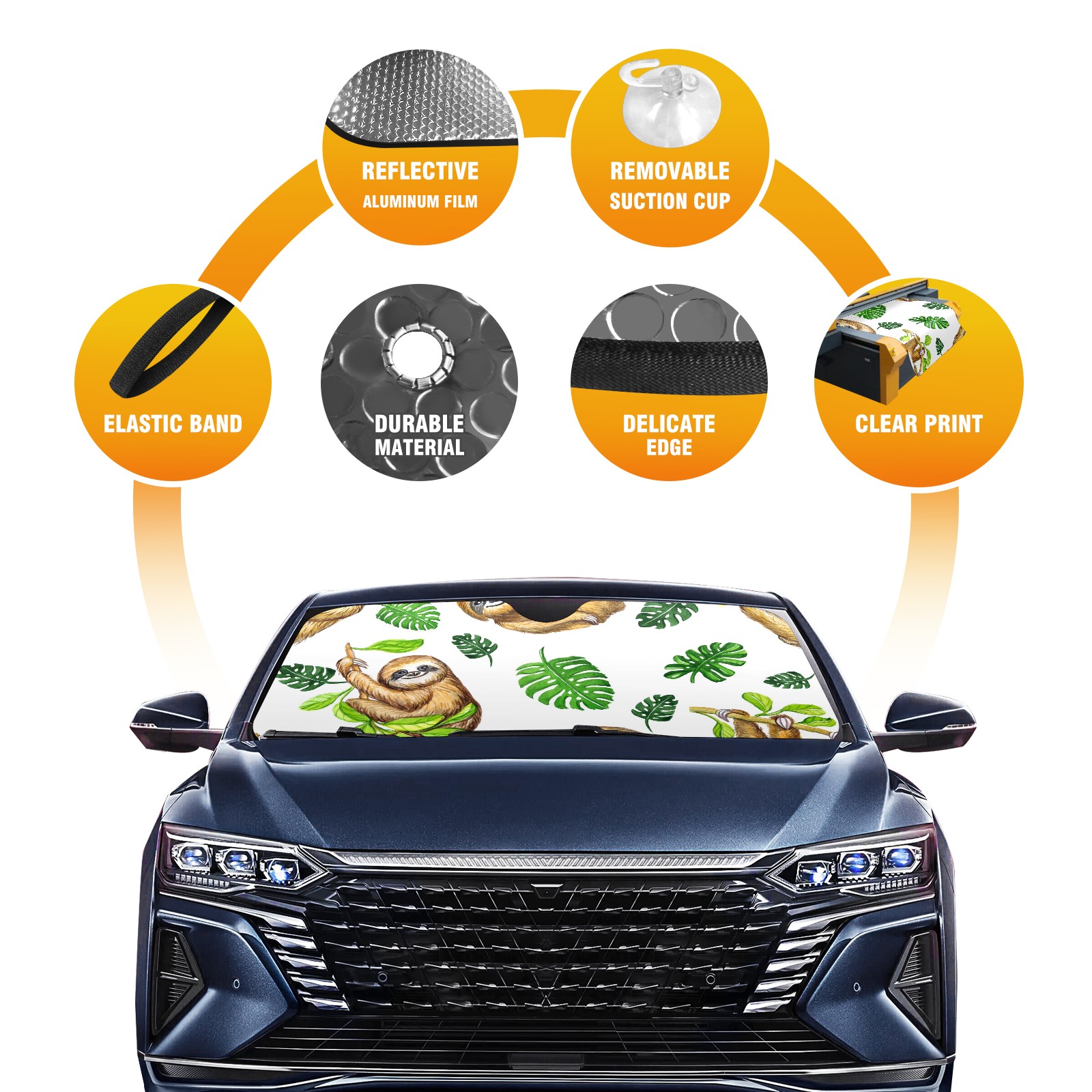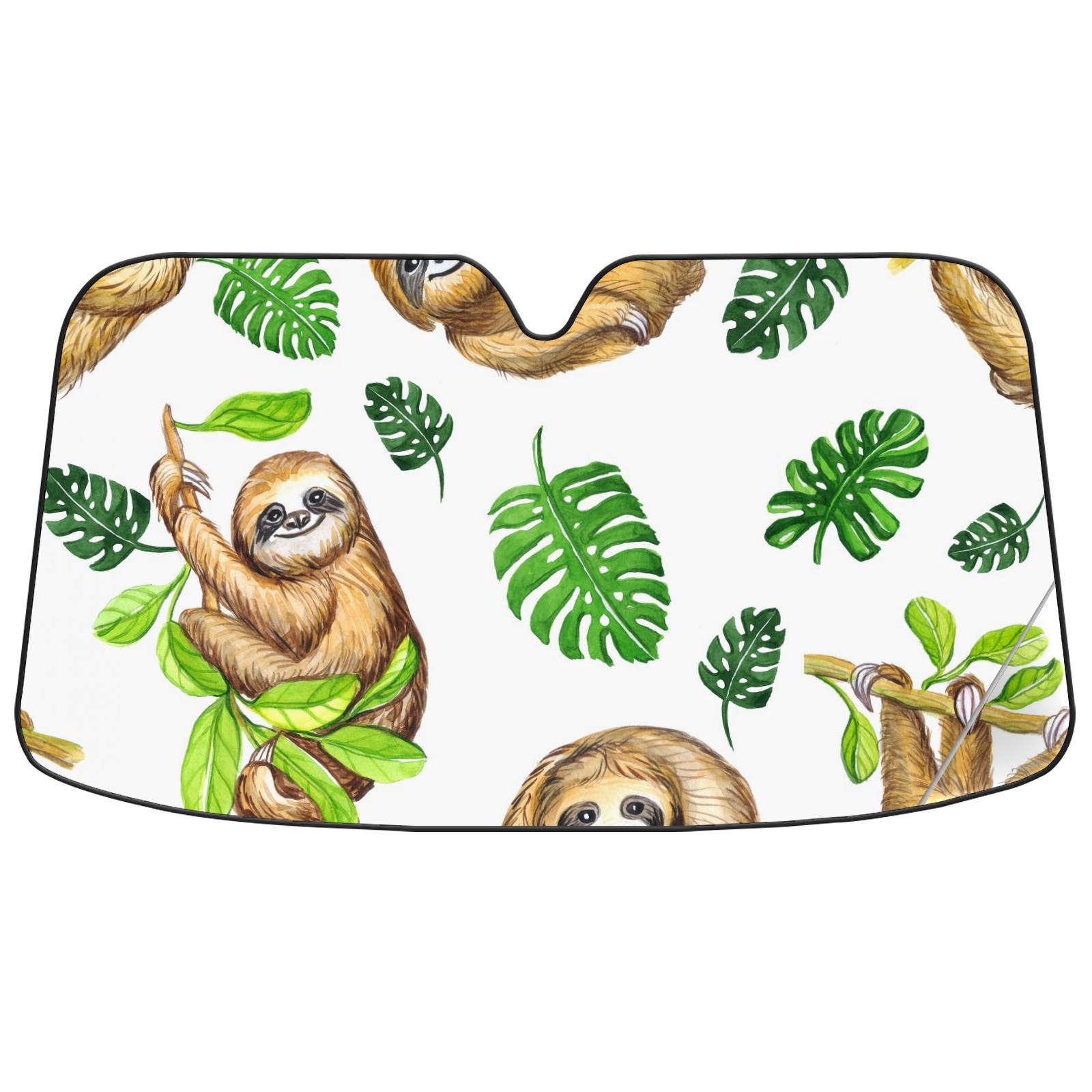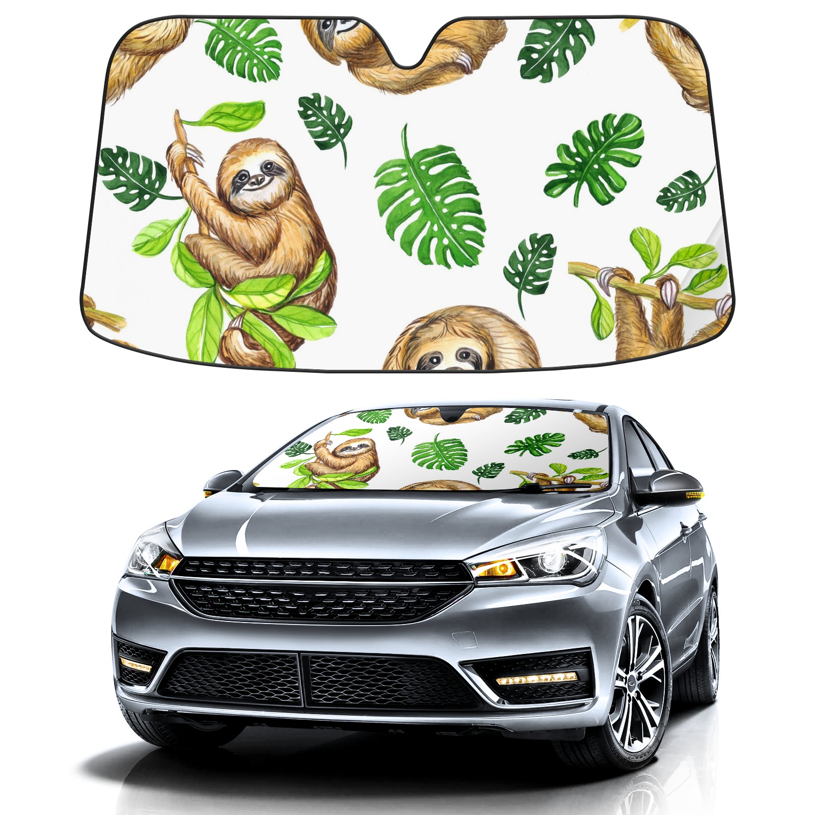 Car Windshield Sun Shade For Front Window Sloth Tropic Monstera Leaves Foldable Vehicle Windshield Car Sun Visor Covers Automotive Window Protector Car Camping Privacy Sun Blocker