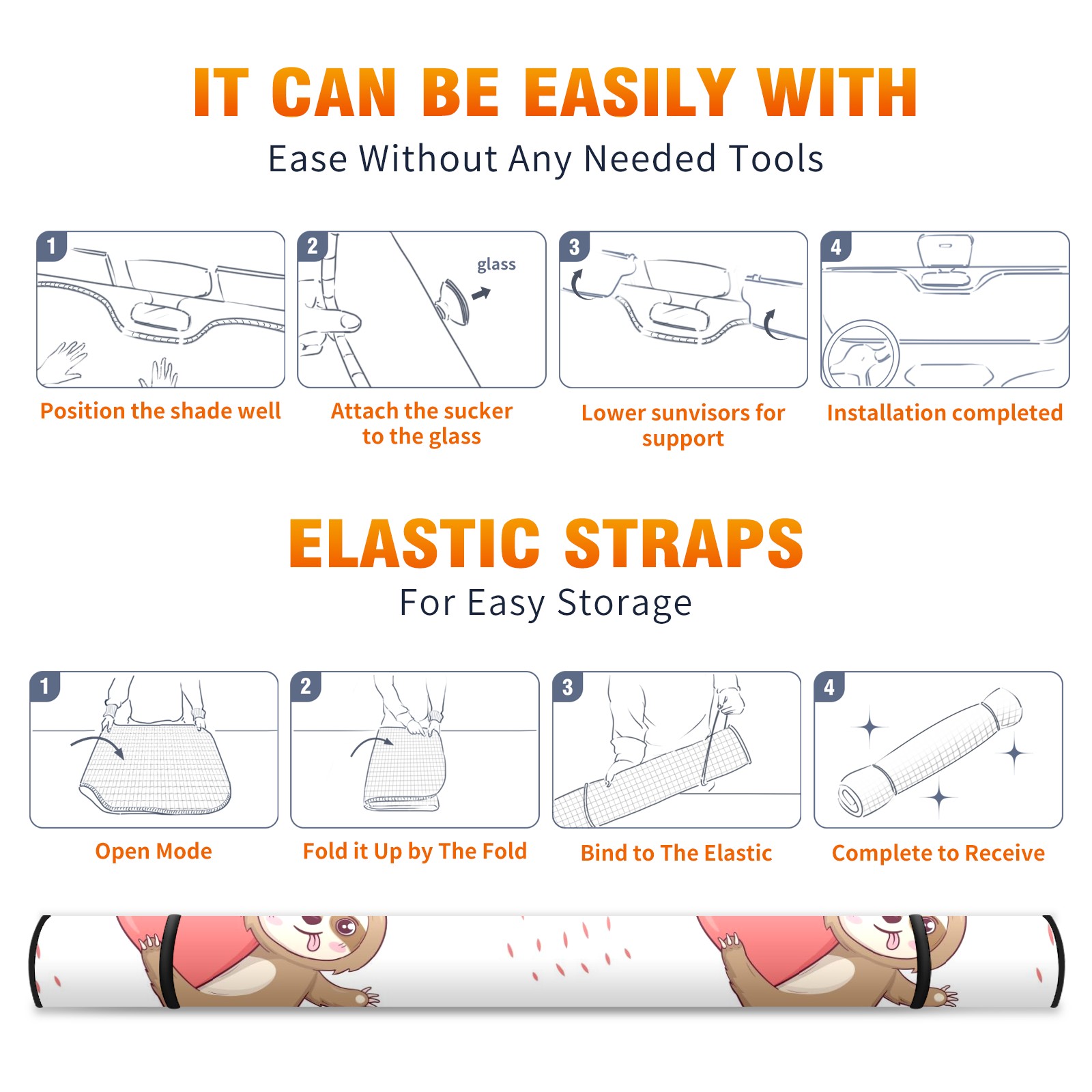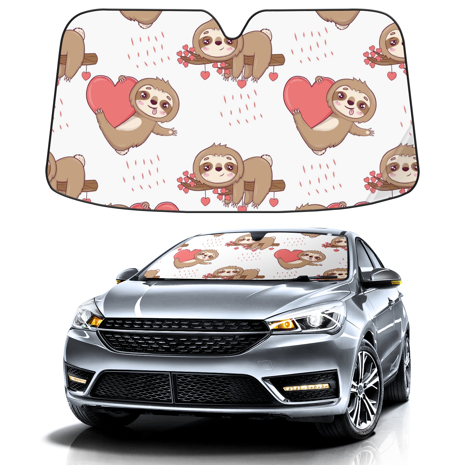 Car Windshield Sun Shade For Front Window Valentine's Day Sloth Heart Foldable Vehicle Windshield Car Sun Visor Covers Automotive Window Protector Car Camping Privacy Sun Blocker