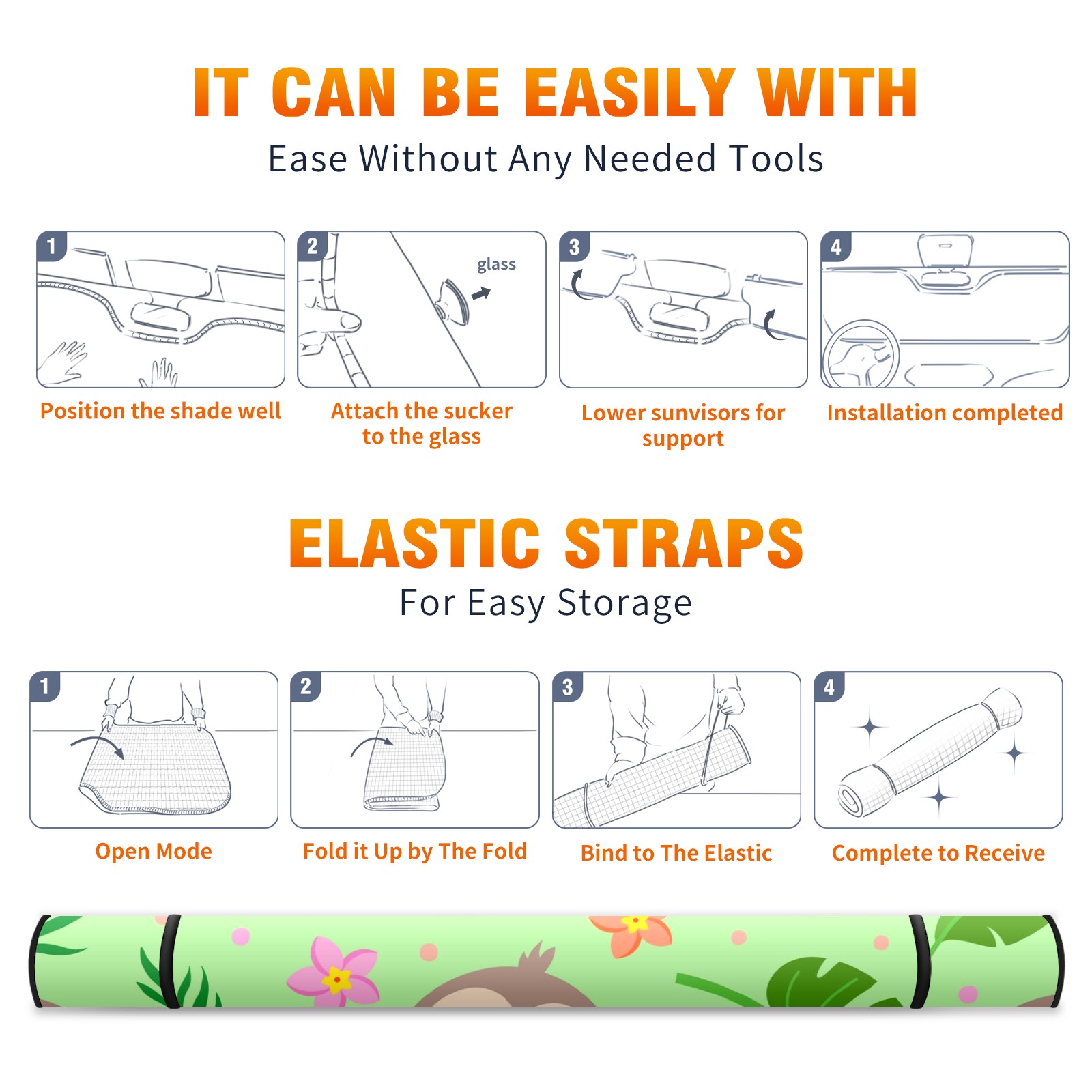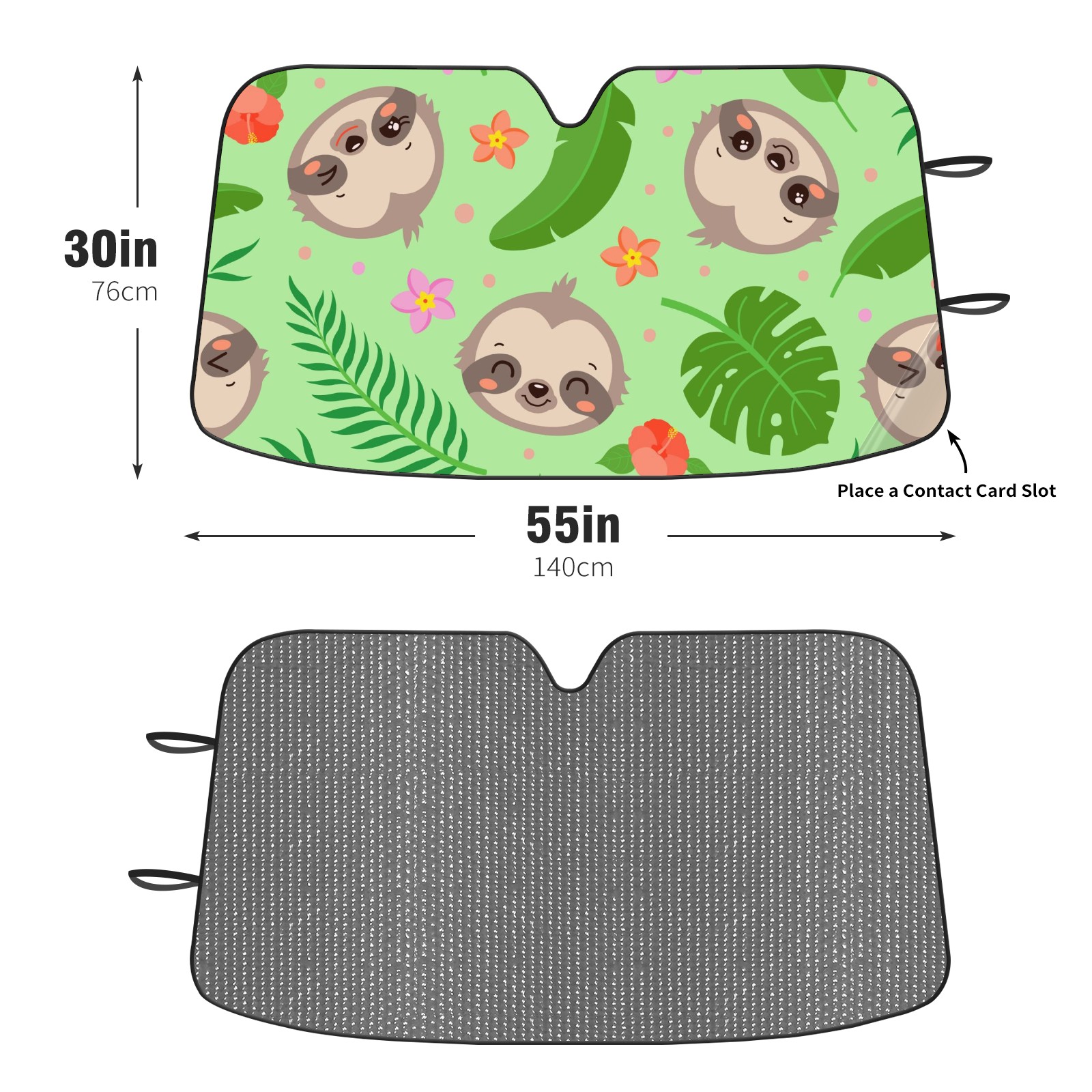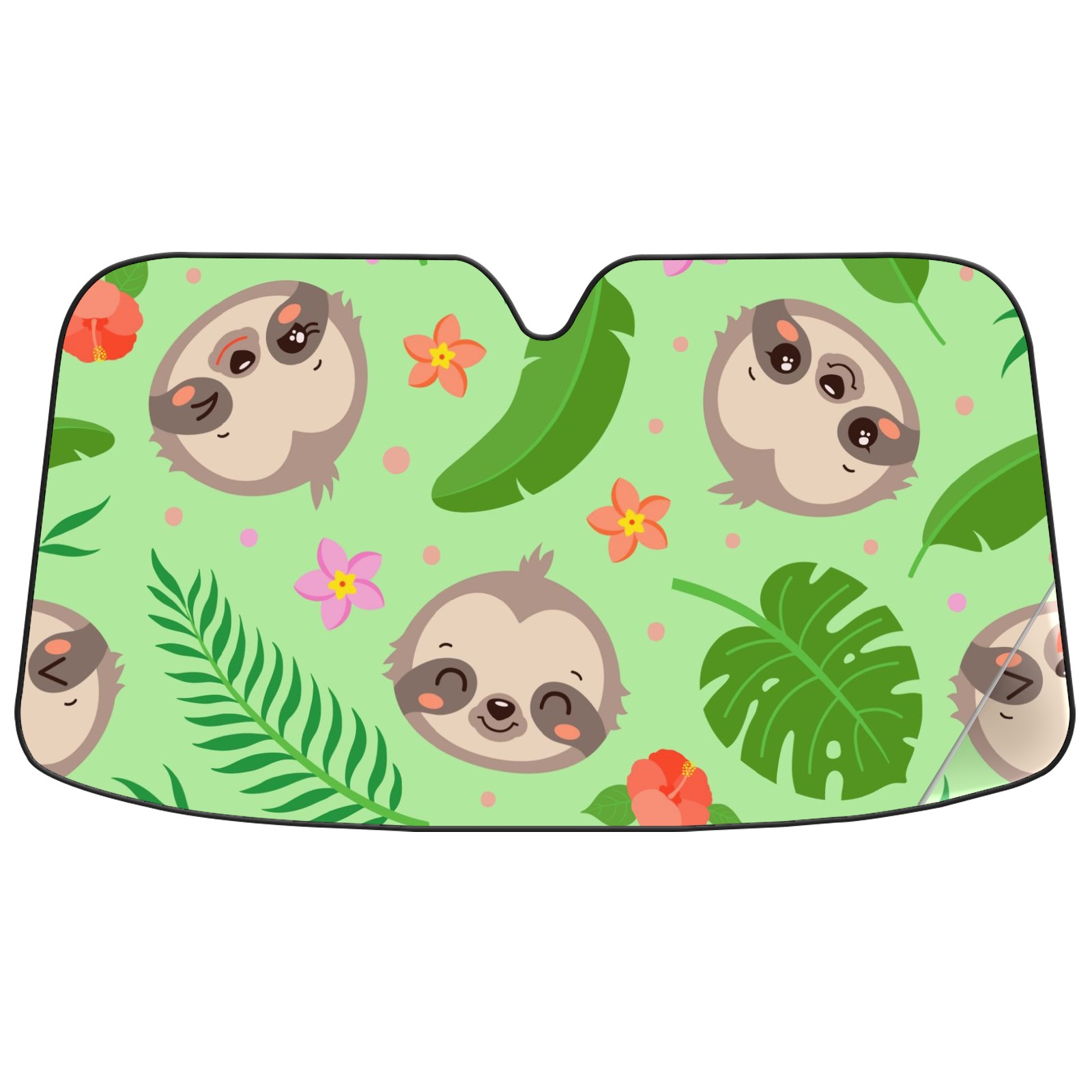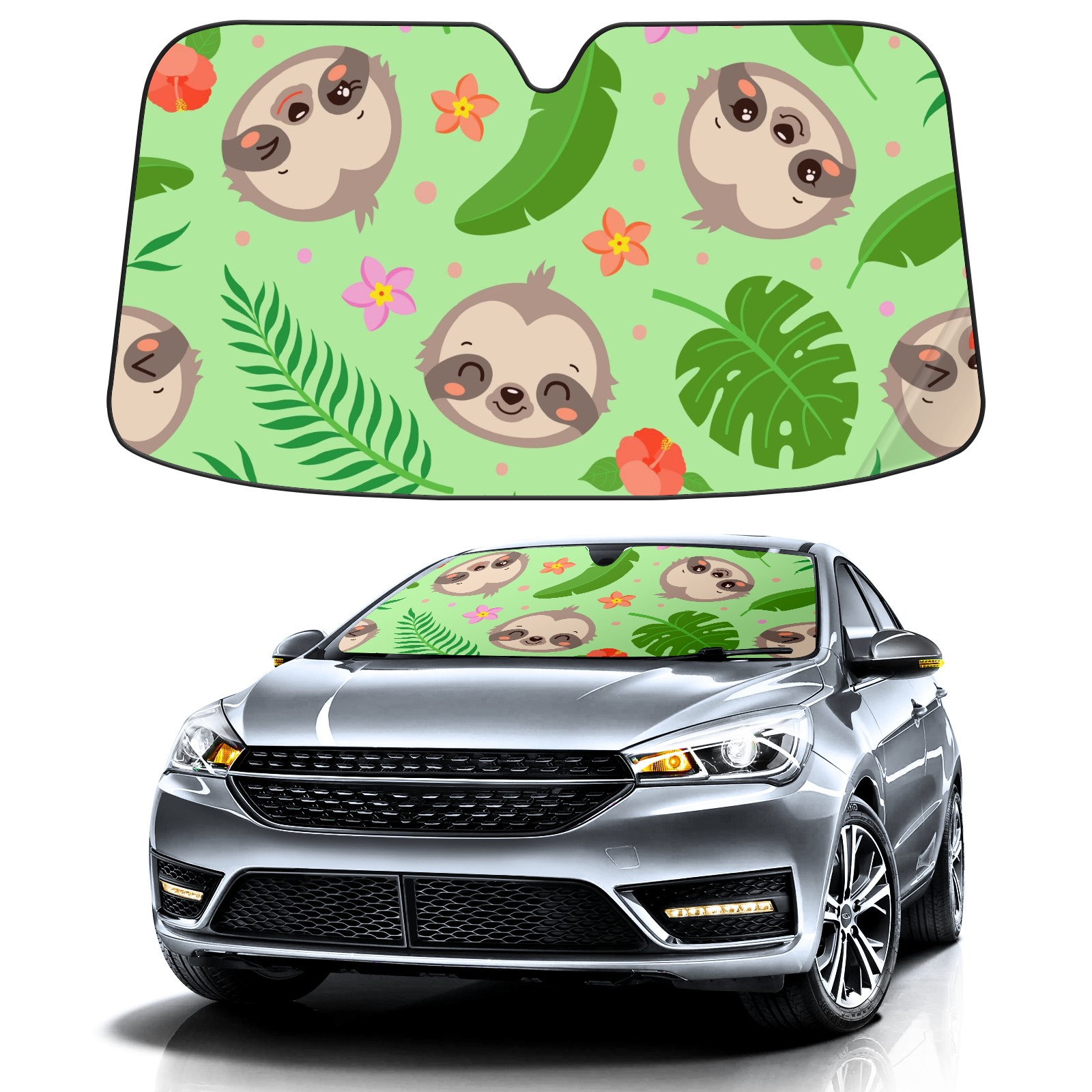 Car Windshield Sun Shade For Front Window Cute Sloth Tropical Palm Leaves Foldable Vehicle Windshield Car Sun Visor Covers Automotive Window Protector Car Camping Privacy Sun Blocker