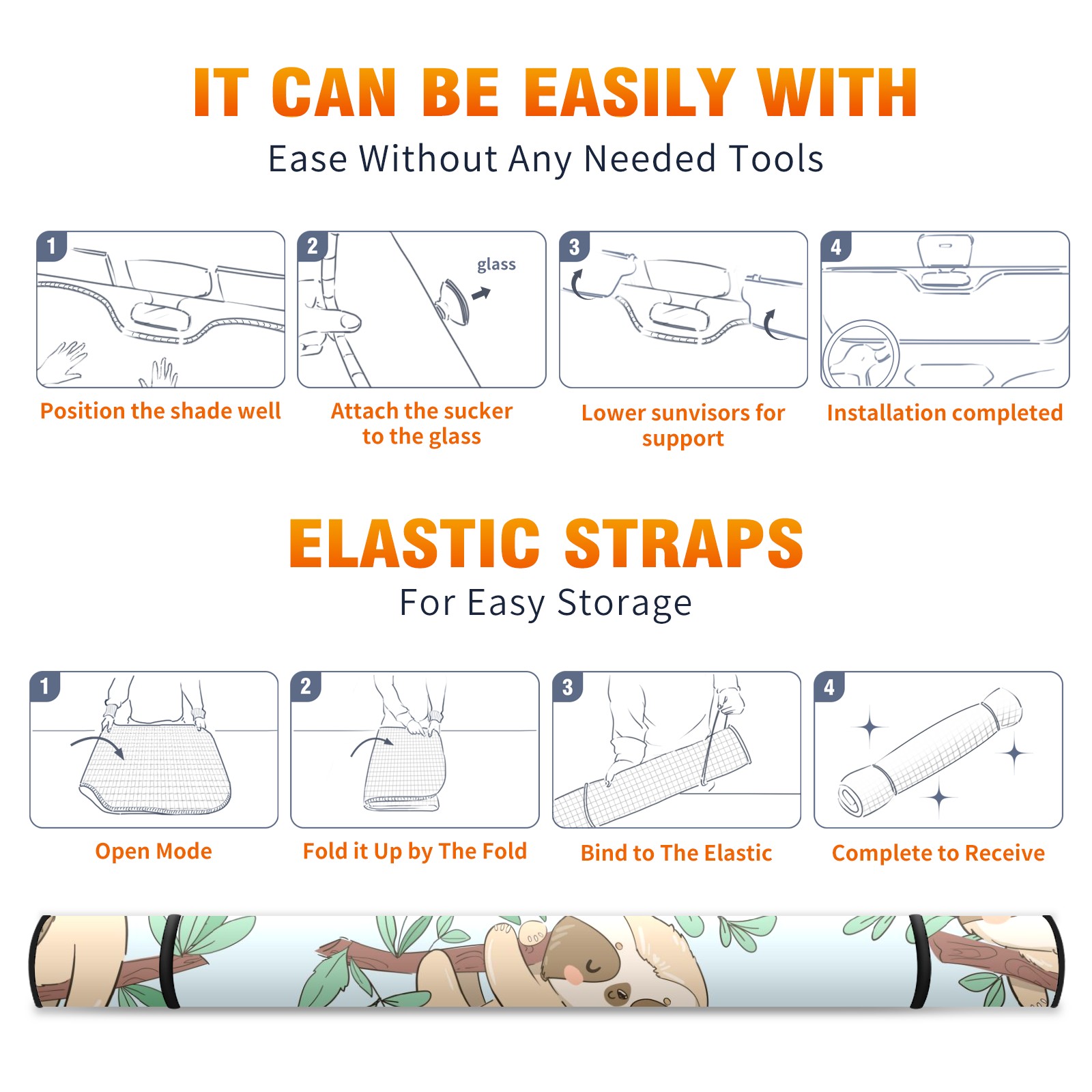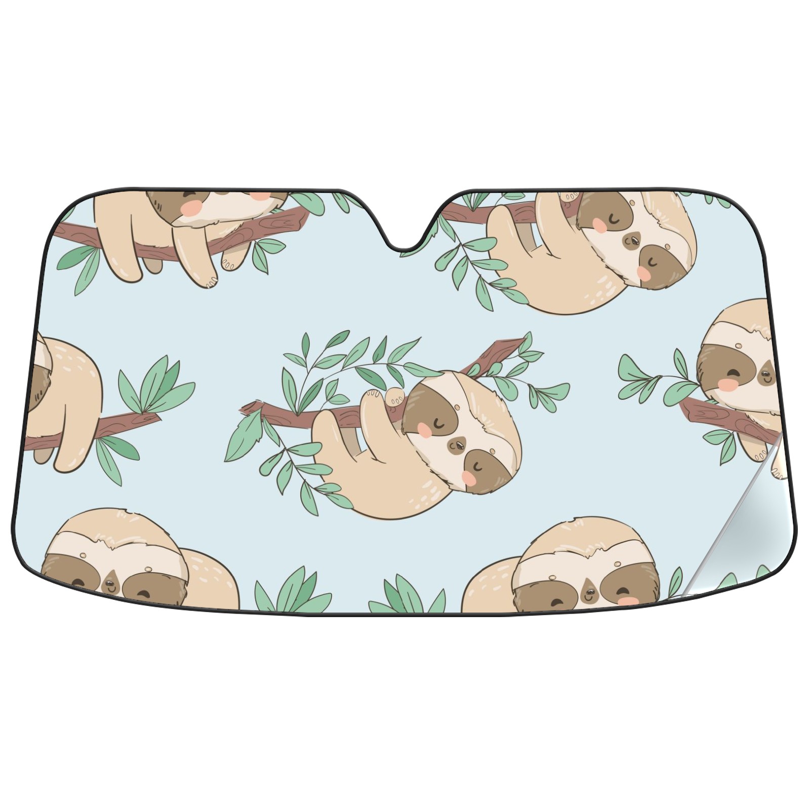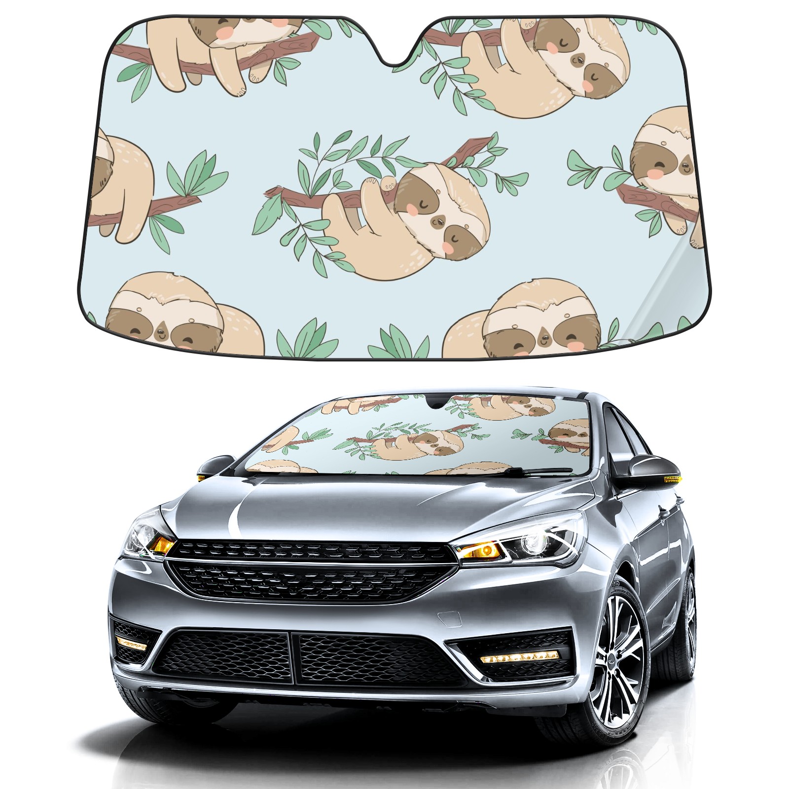 Car Windshield Sun Shade For Front Window Cute Sloth On Blue Background Foldable Vehicle Windshield Car Sun Visor Covers Automotive Window Protector Car Camping Privacy Sun Blocker