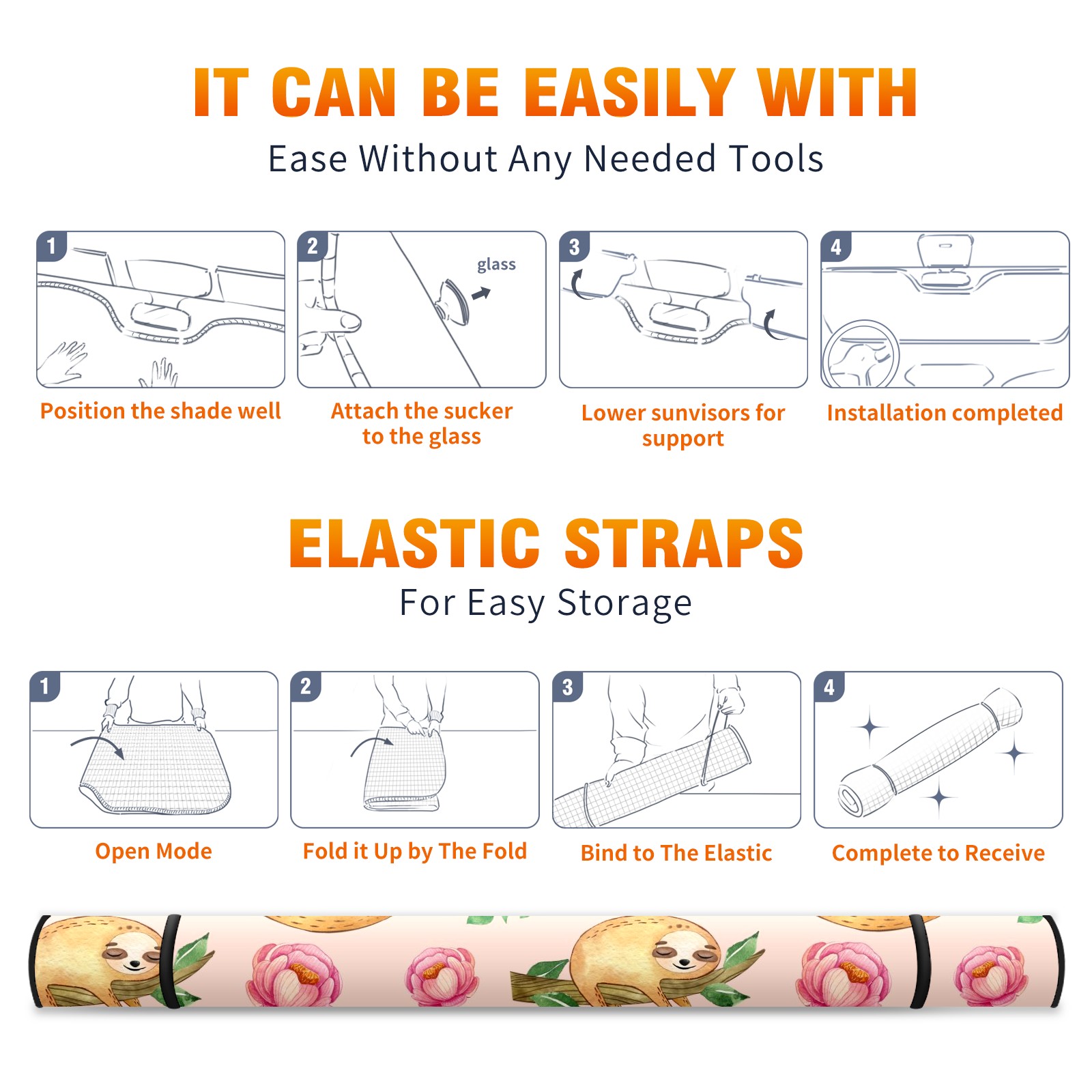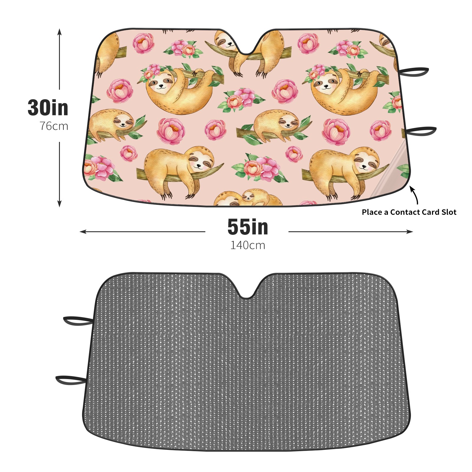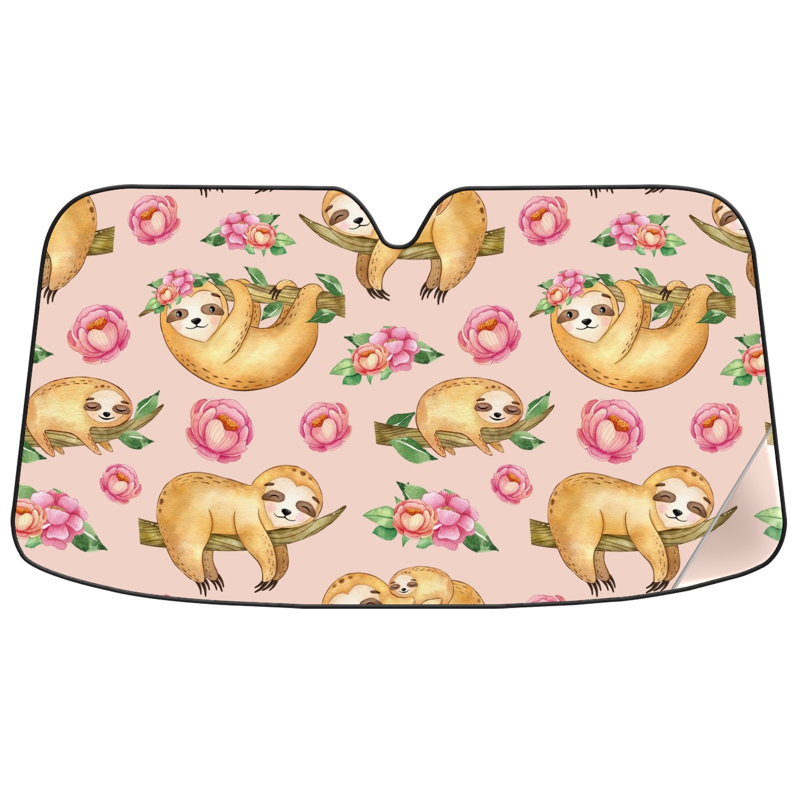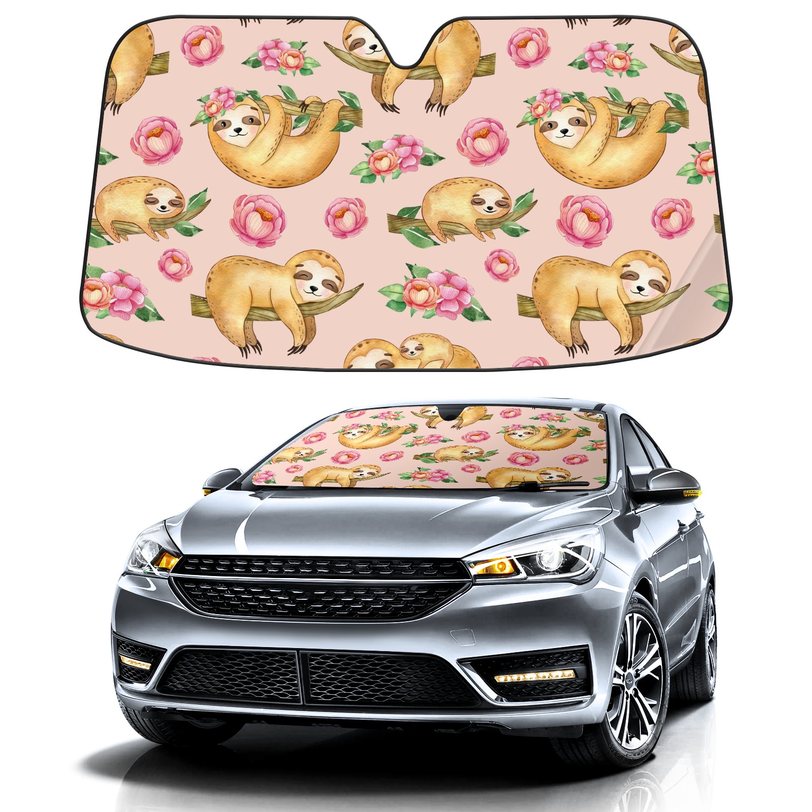 Car Windshield Sun Shade For Front Window Cute Sloth Flower Foldable Vehicle Windshield Car Sun Visor Covers Automotive Window Protector Car Camping Privacy Sun Blocker