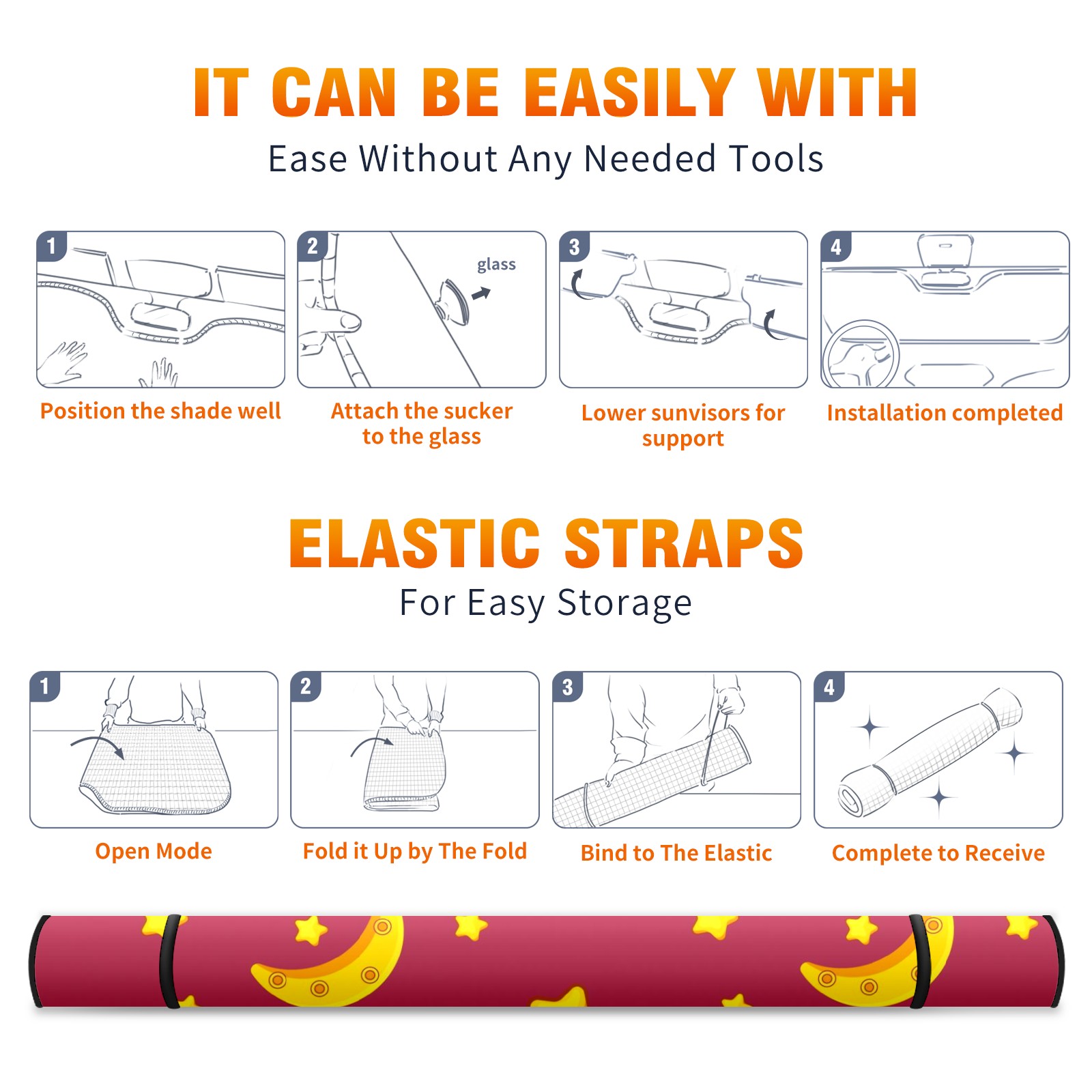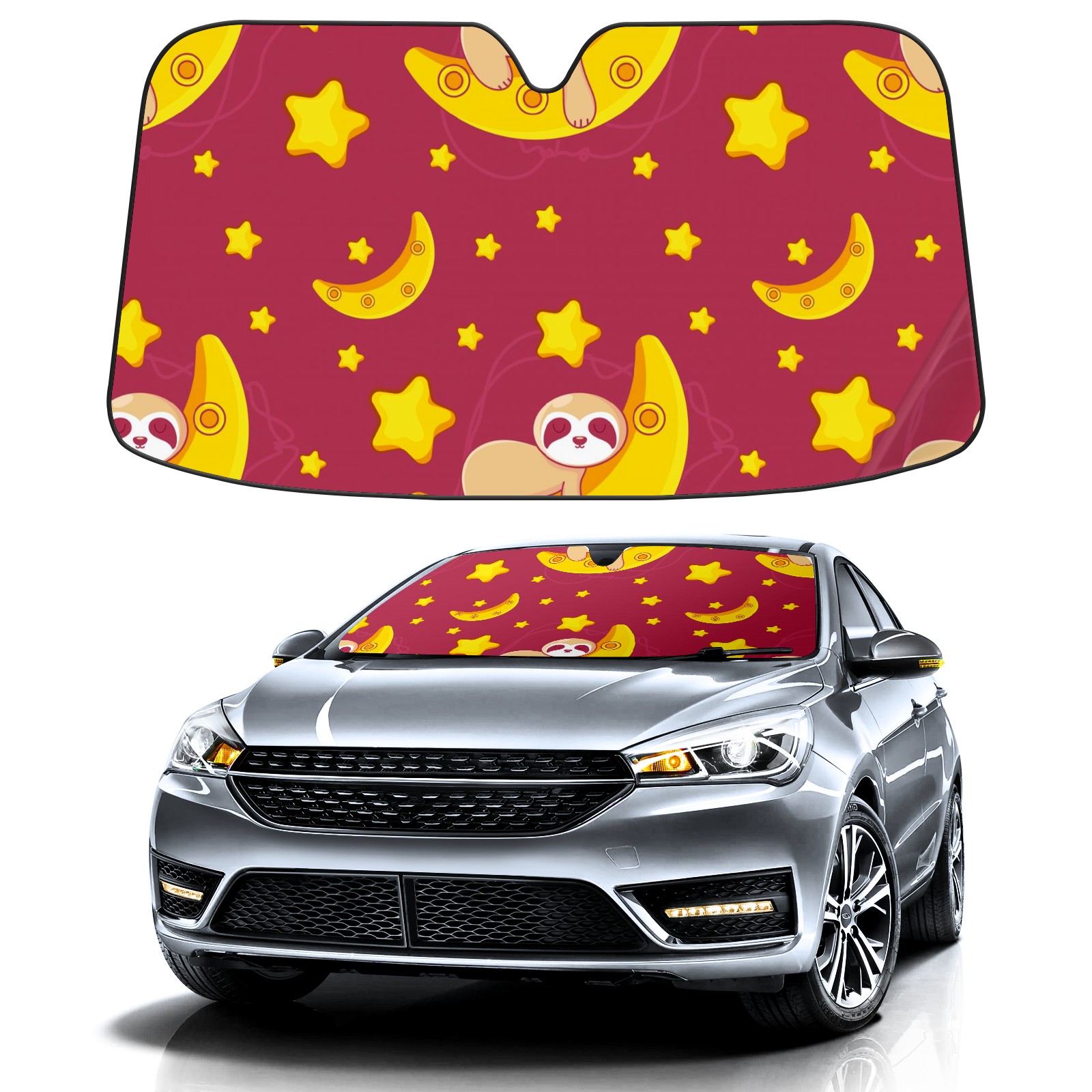 Car Windshield Sun Shade For Front Window Cute Lazy Sloth Moon Star Foldable Vehicle Windshield Car Sun Visor Covers Automotive Window Protector Car Camping Privacy Sun Blocker