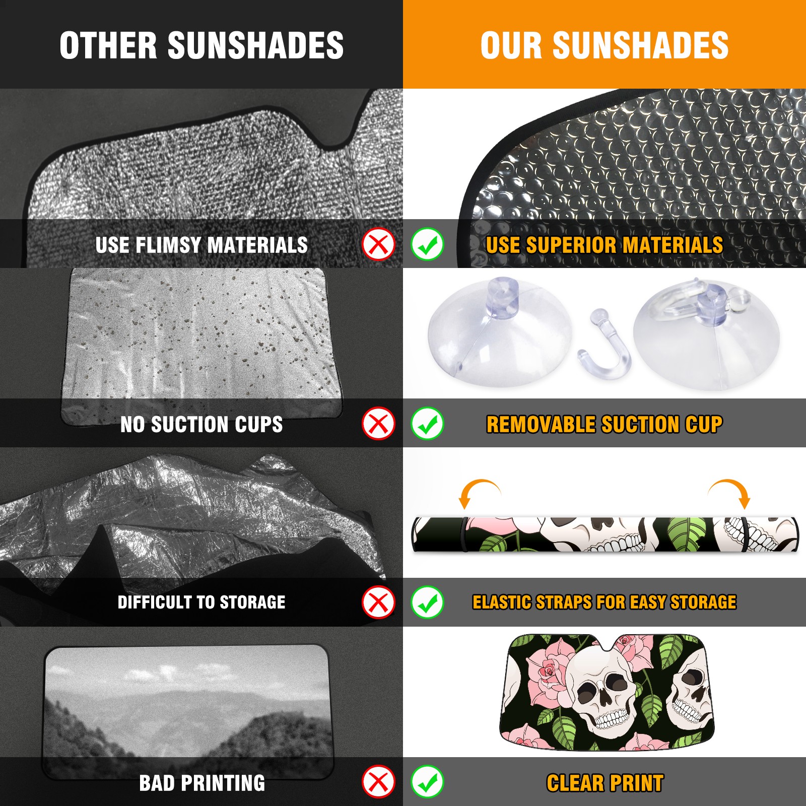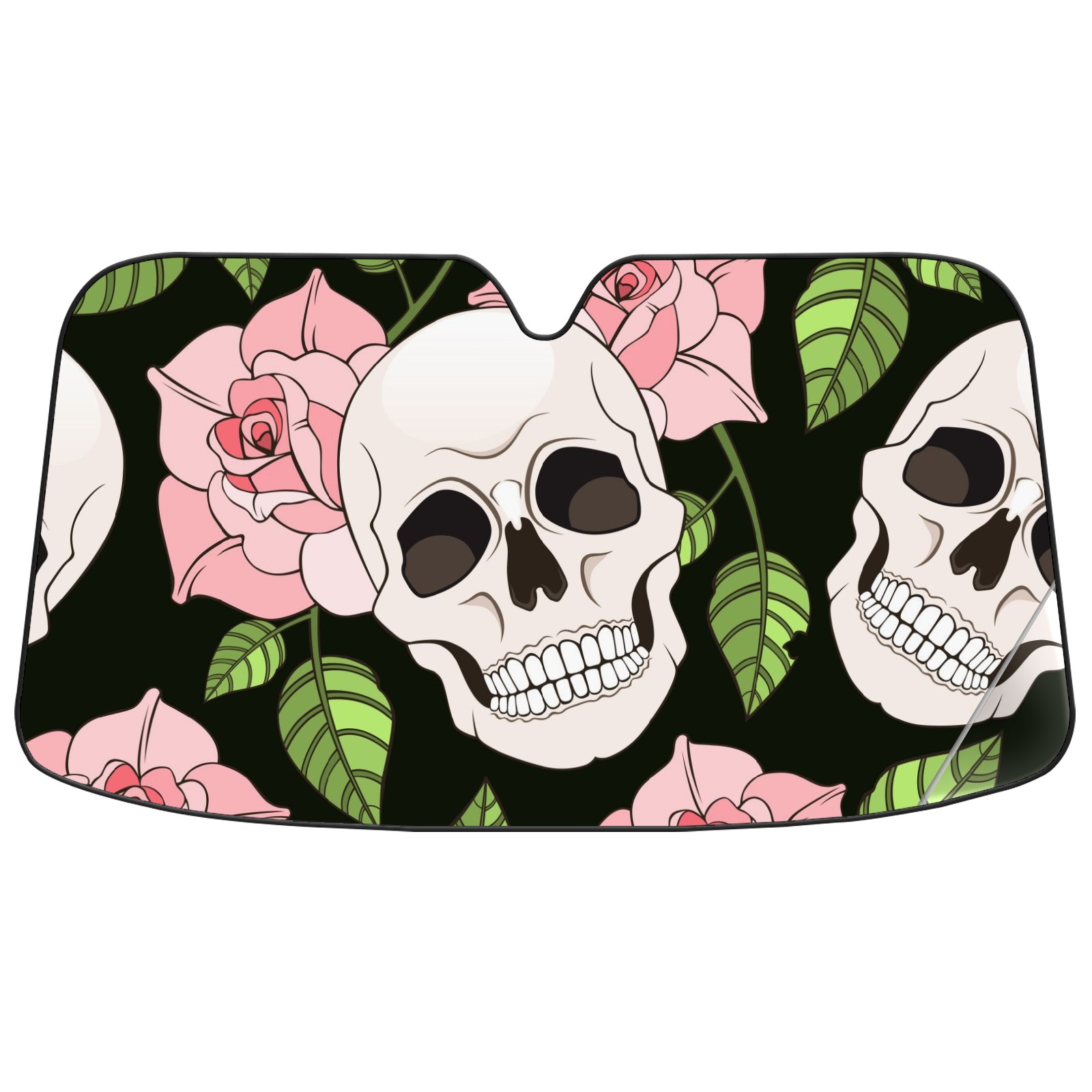 Car Windshield Sun Shade For Front Window Gothic Roses And Skulls Foldable Vehicle Windshield Car Sun Visor Covers Automotive Window Protector Car Camping Privacy Sun Blocker