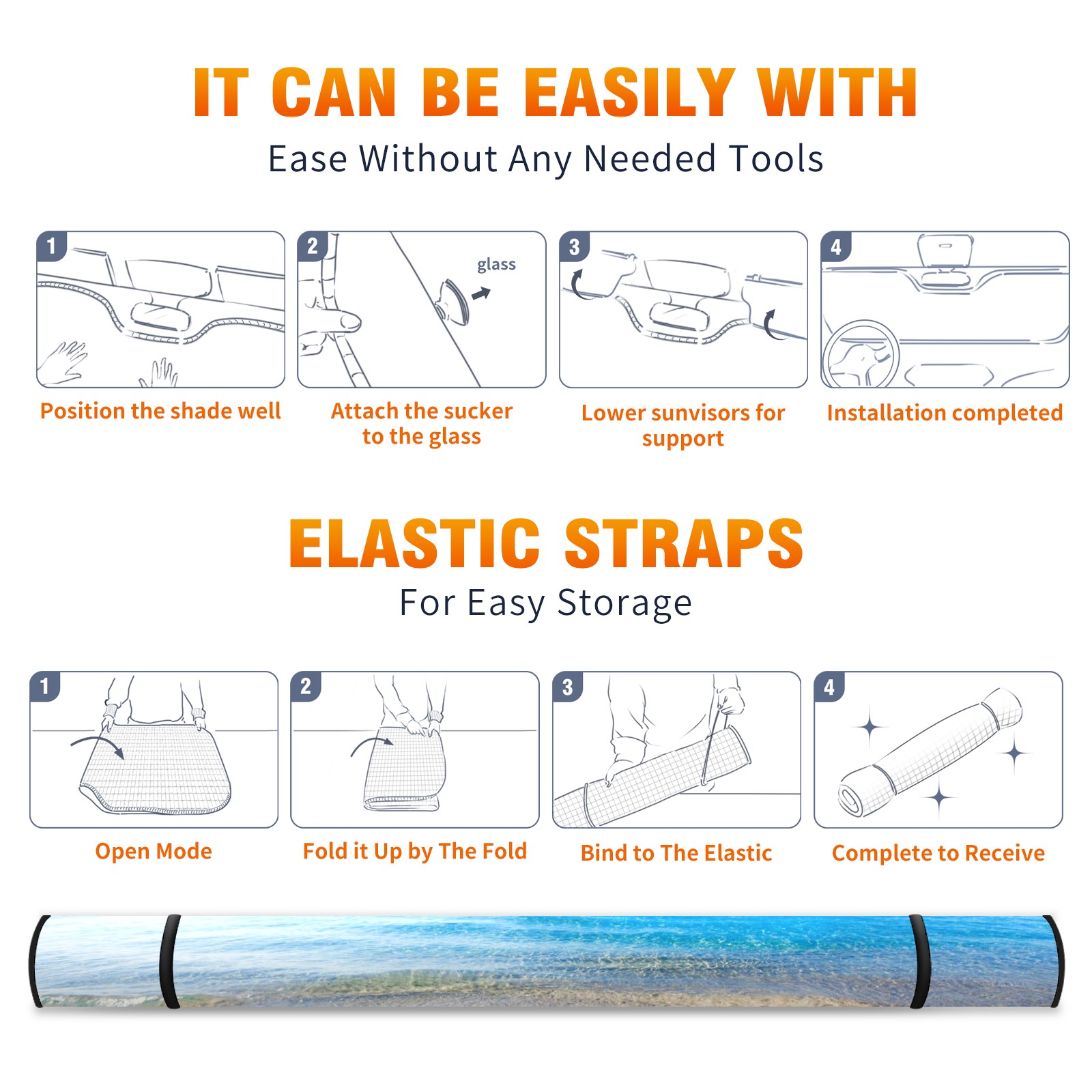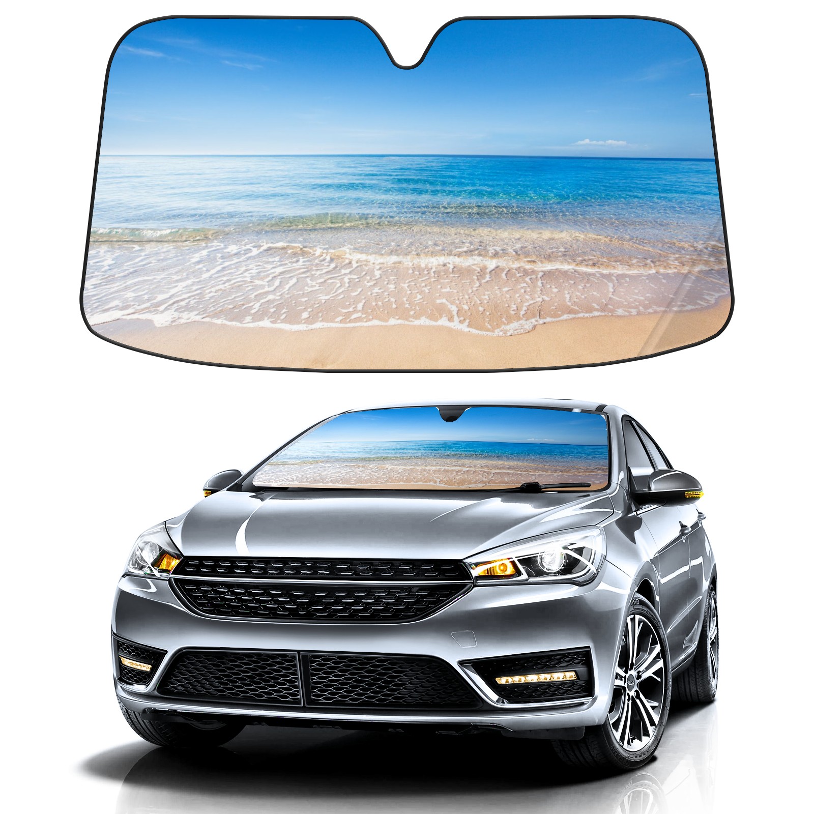 Car Windshield Sun Shade For Front Window Beach And Tropical Ocean Foldable Vehicle Windshield Car Sun Visor Covers Automotive Window Protector Car Camping Privacy Sun Blocker