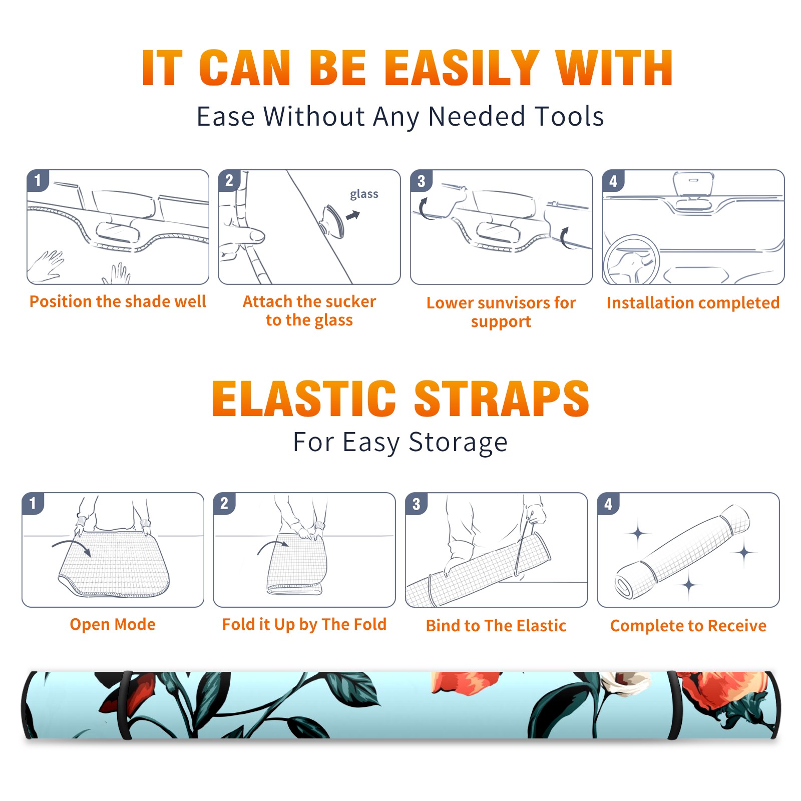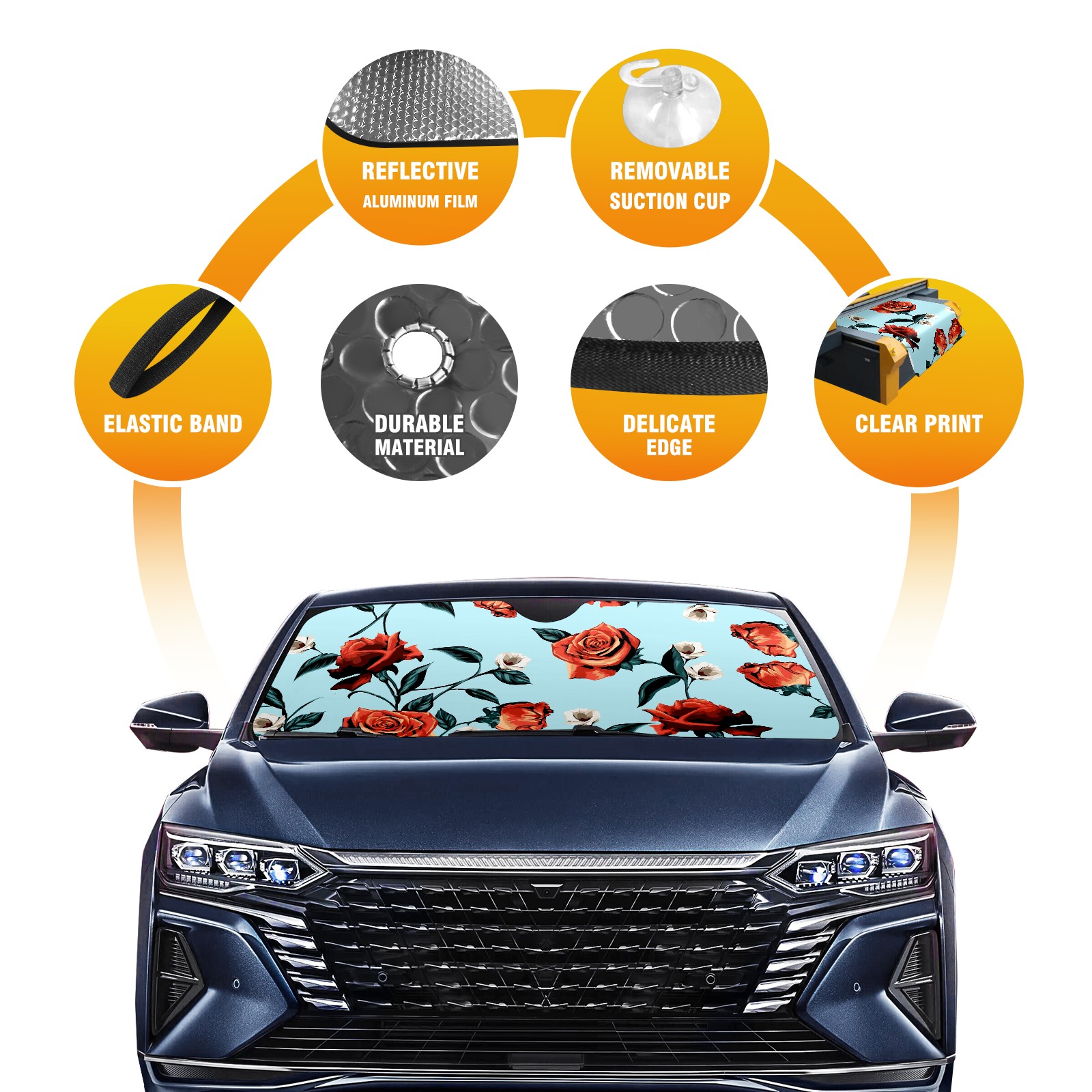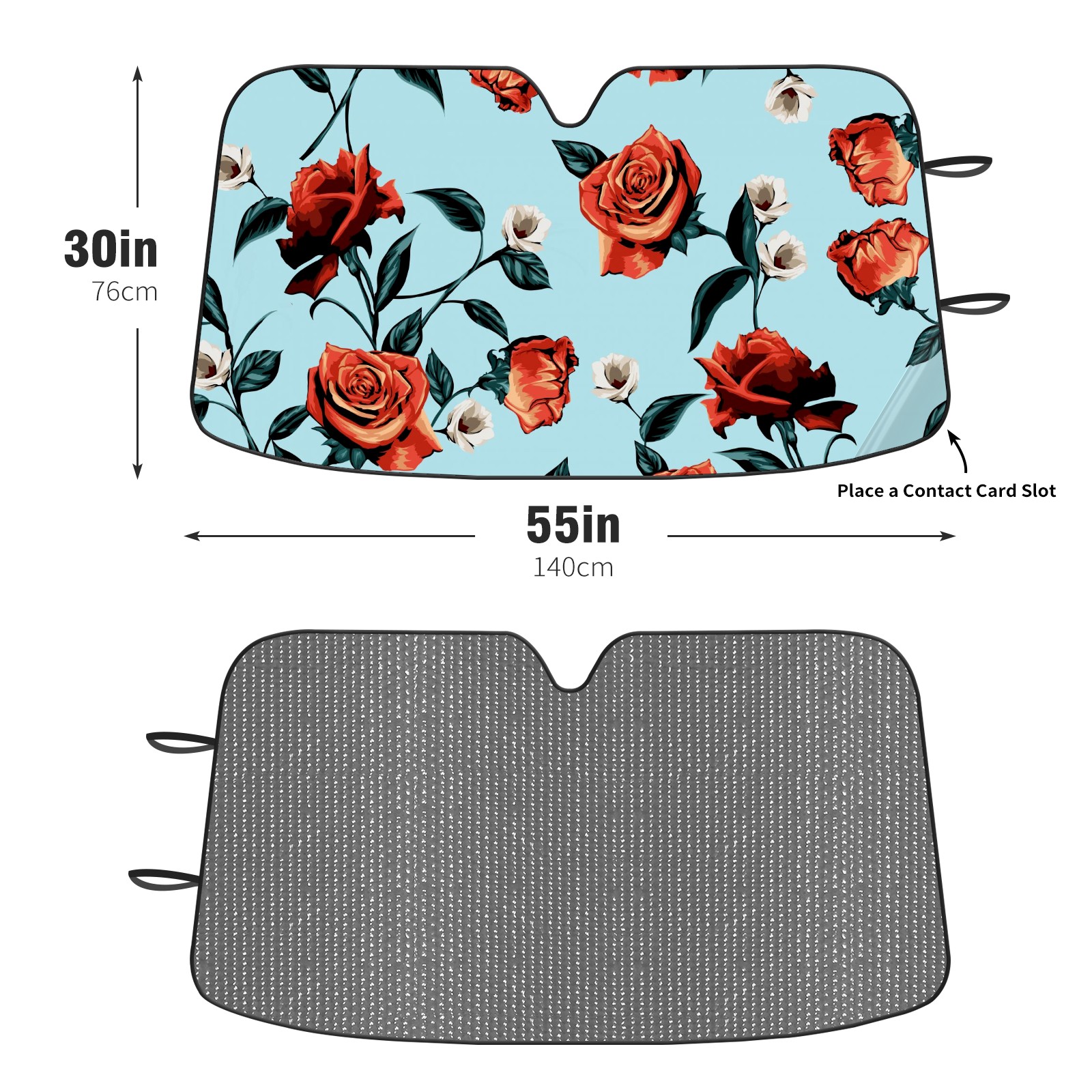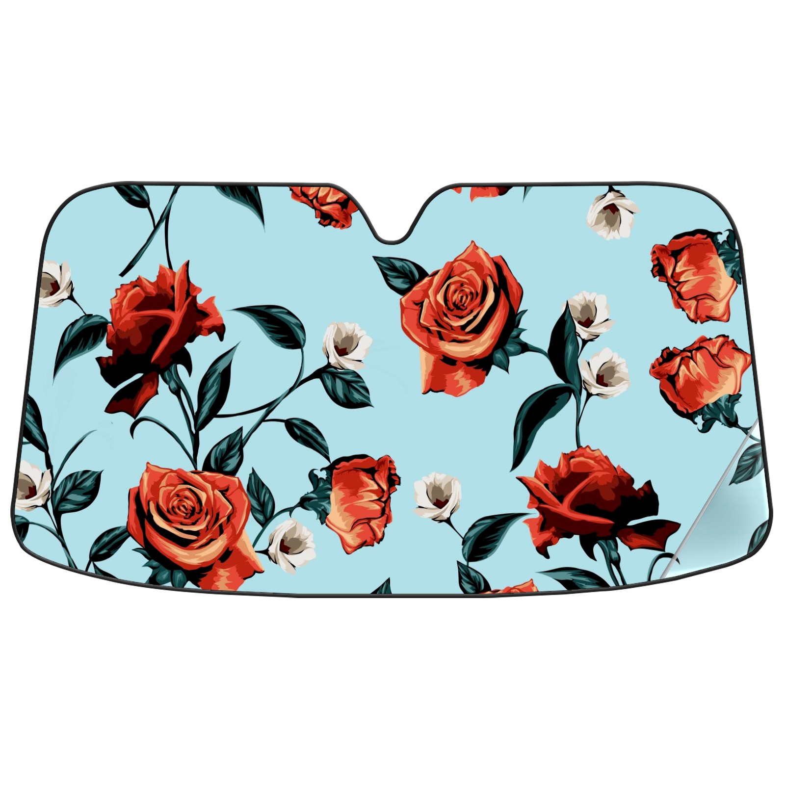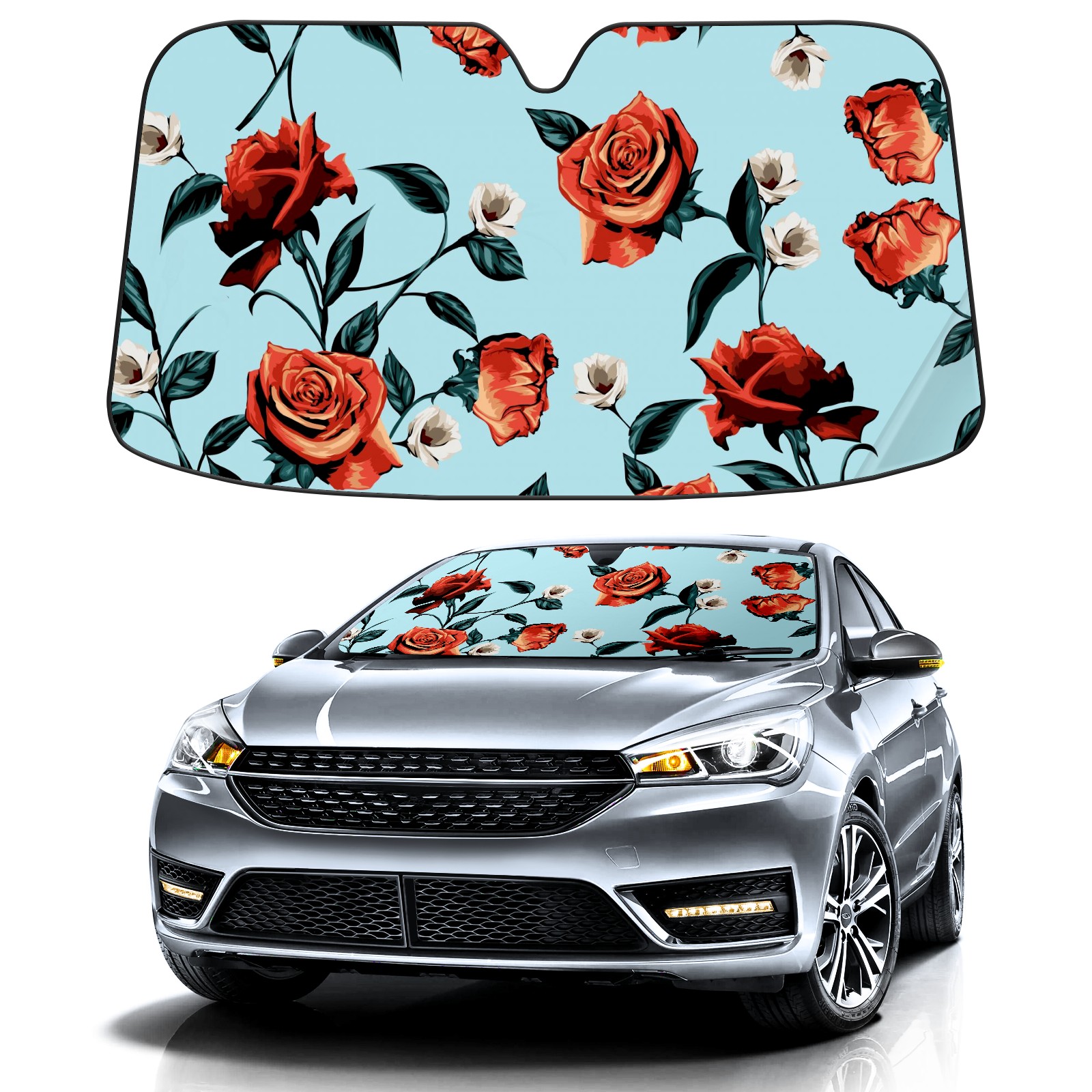Car Windshield Sun Shade For Front Window Rose Flower Leaves On Blue Background Foldable Vehicle Windshield Car Sun Visor Covers Automotive Window Protector Car Camping Privacy Sun Blocker