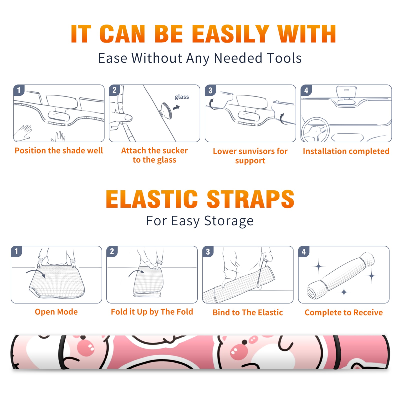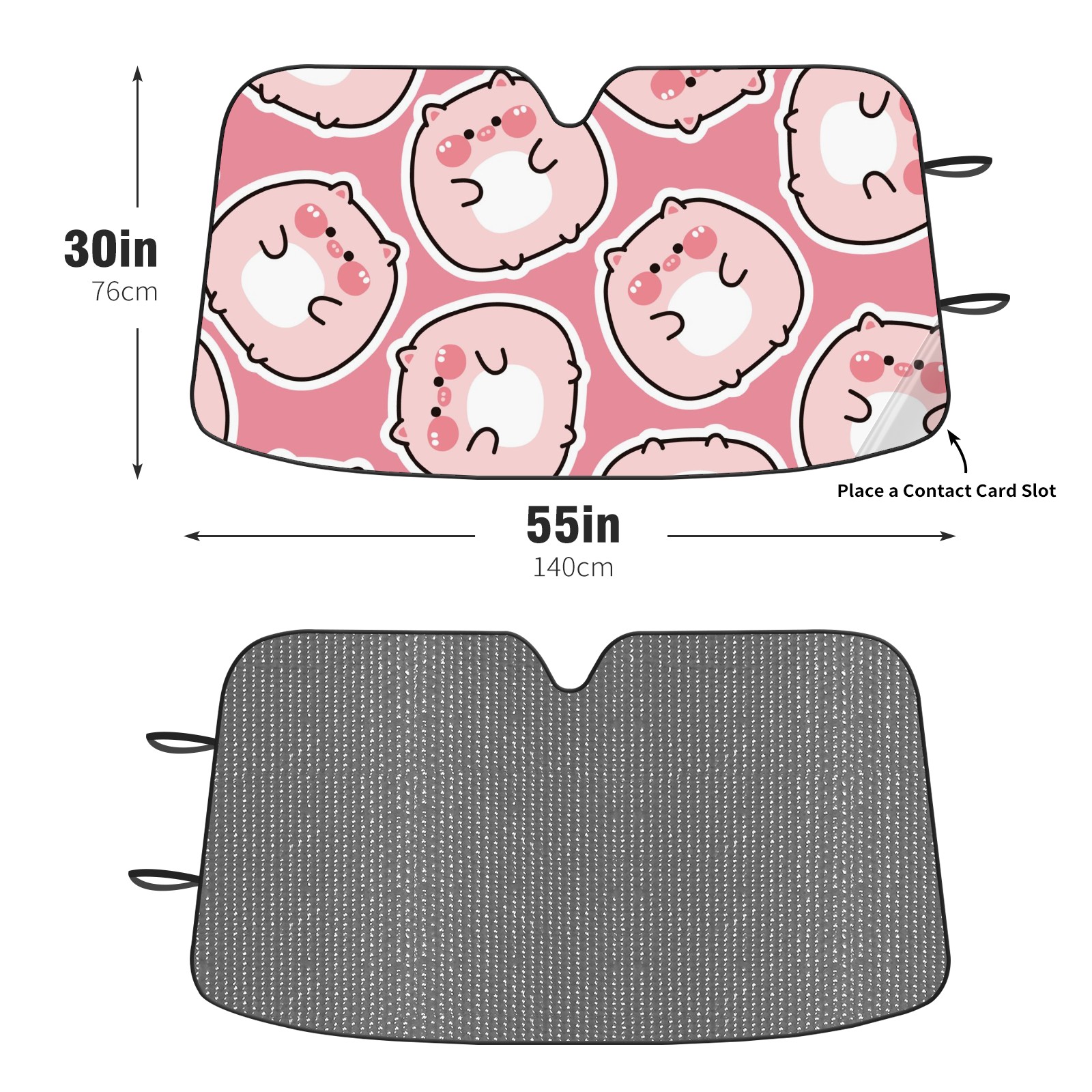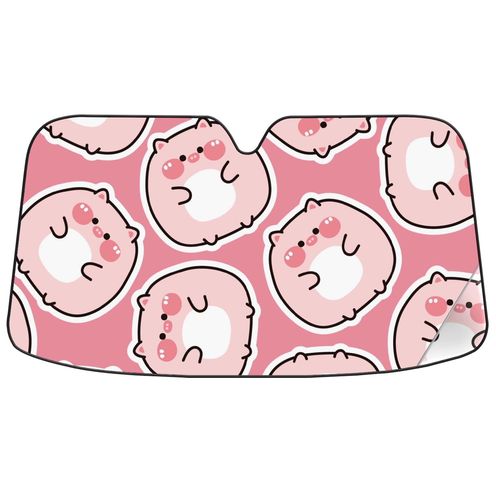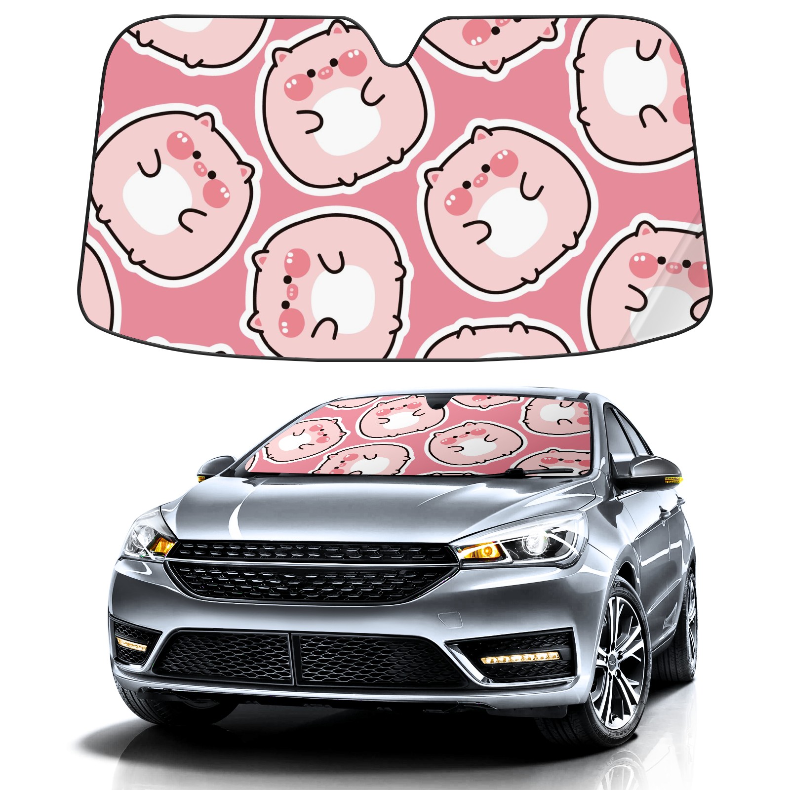 Car Windshield Sun Shade For Front Window Cute Fat Pig On Pink Background Foldable Vehicle Windshield Car Sun Visor Covers Automotive Window Protector Car Camping Privacy Sun Blocker