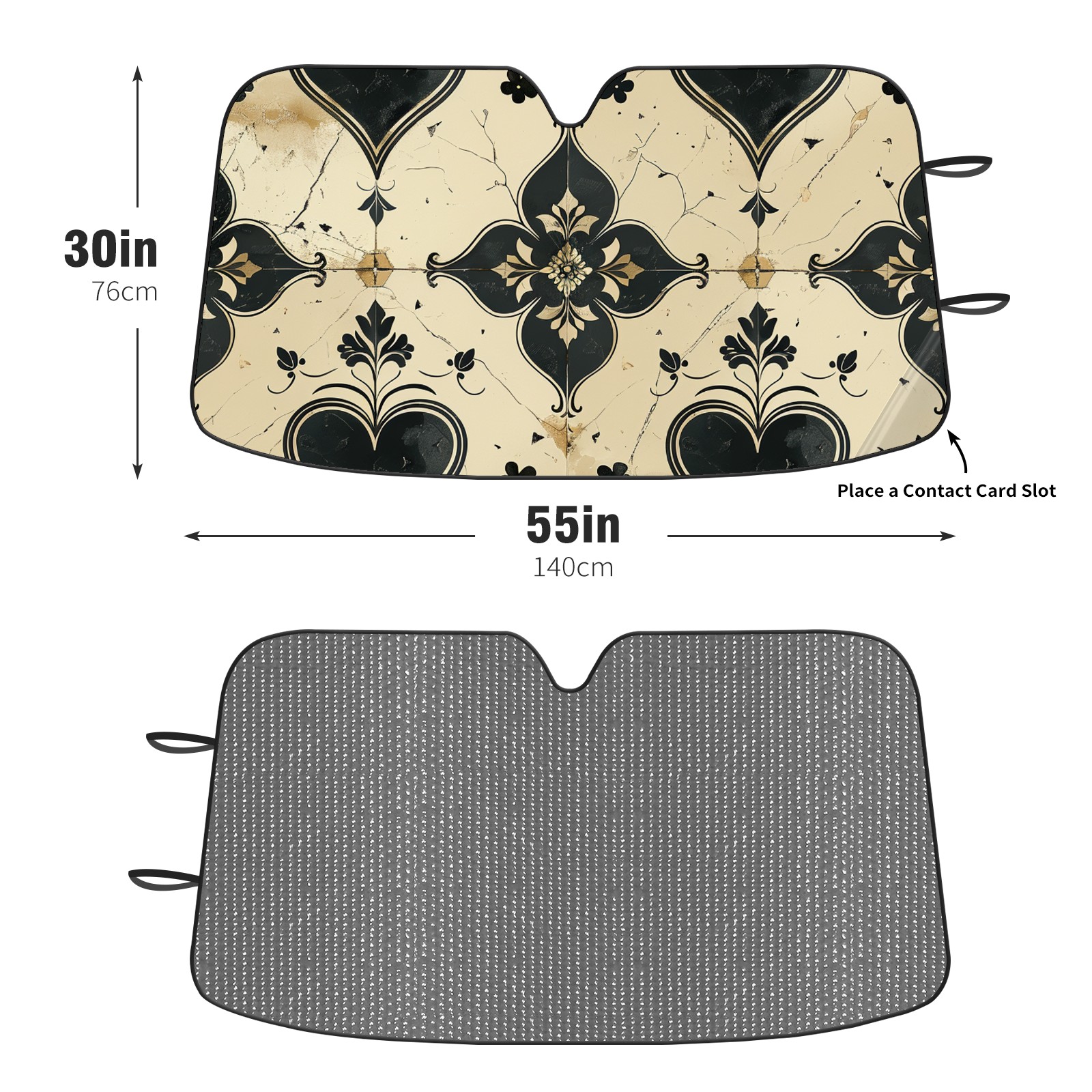 Diameter /Size 63"L x 33.5"W Made from excellent materials which makes it sturdy and protects the car from the sun. Easy to use and pack. Makes the interior of the car cooler.You can easily stash the sunshade in the storage bag or store long term.It open and closes easy. Also the leather storage bag is durable and easy to put the umbrella back into.This windshield sunshade provides complete coverage and keeps your car interior cool under direct sun. It is easy to open and position under the windshield and around the rear-view mirror. Makes Your Car Easy To Identify, Perfect For Finding Your Car In Crowded Parking Lots And Garages.Great Choice: It Is A Great Gift For Dad, Boyfriend, Brother, Brother And Uncle, Friends, Classmates, Family And So On. Notice: Due To Difference Computer Monitors, The Color Maybe Slightly Different From Picture. As Different Measurement Methods, Measurement Data Will Float Within 2%.I Hope You Understand. If You Have Any Question About The Item Please Do Not Hesitate To Contact Us Immediately And We Will Give You A Satisfactory Reply Within 24 Hours.