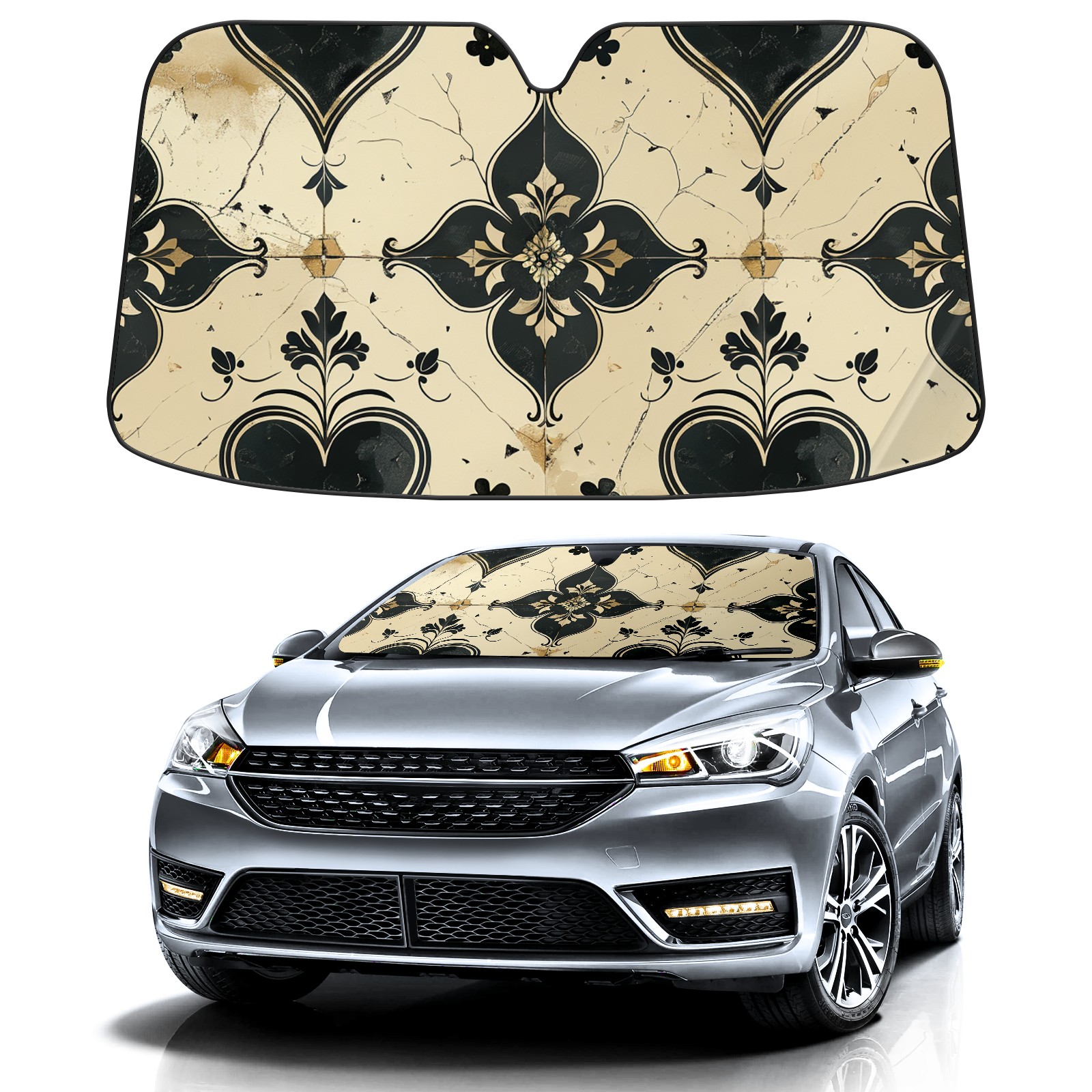 • Diameter /Size 63"L x 33.5"W Made from excellent materials which makes it sturdy and protects the car from the sun. Easy to use and pack. Makes the interior of the car cooler.You can easily stash the sunshade in the storage bag or store long term.It open and closes easy. Also the leather storage bag is durable and easy to put the umbrella back into.This windshield sunshade provides complete coverage and keeps your car interior cool under direct sun. It is easy to open and position under the windshield and around the rear-view mirror. Makes Your Car Easy To Identify, Perfect For Finding Your Car In Crowded Parking Lots And Garages.Great Choice: It Is A Great Gift For Dad, Boyfriend, Brother, Brother And Uncle, Friends, Classmates, Family And So On. Notice: Due To Difference Computer Monitors, The Color Maybe Slightly Different From Picture. As Different Measurement Methods, Measurement Data Will Float Within 2%.I Hope You Understand. If You Have Any Question About The Item Please Do Not Hesitate To Contact Us Immediately And We Will Give You A Satisfactory Reply Within 24 Hours.