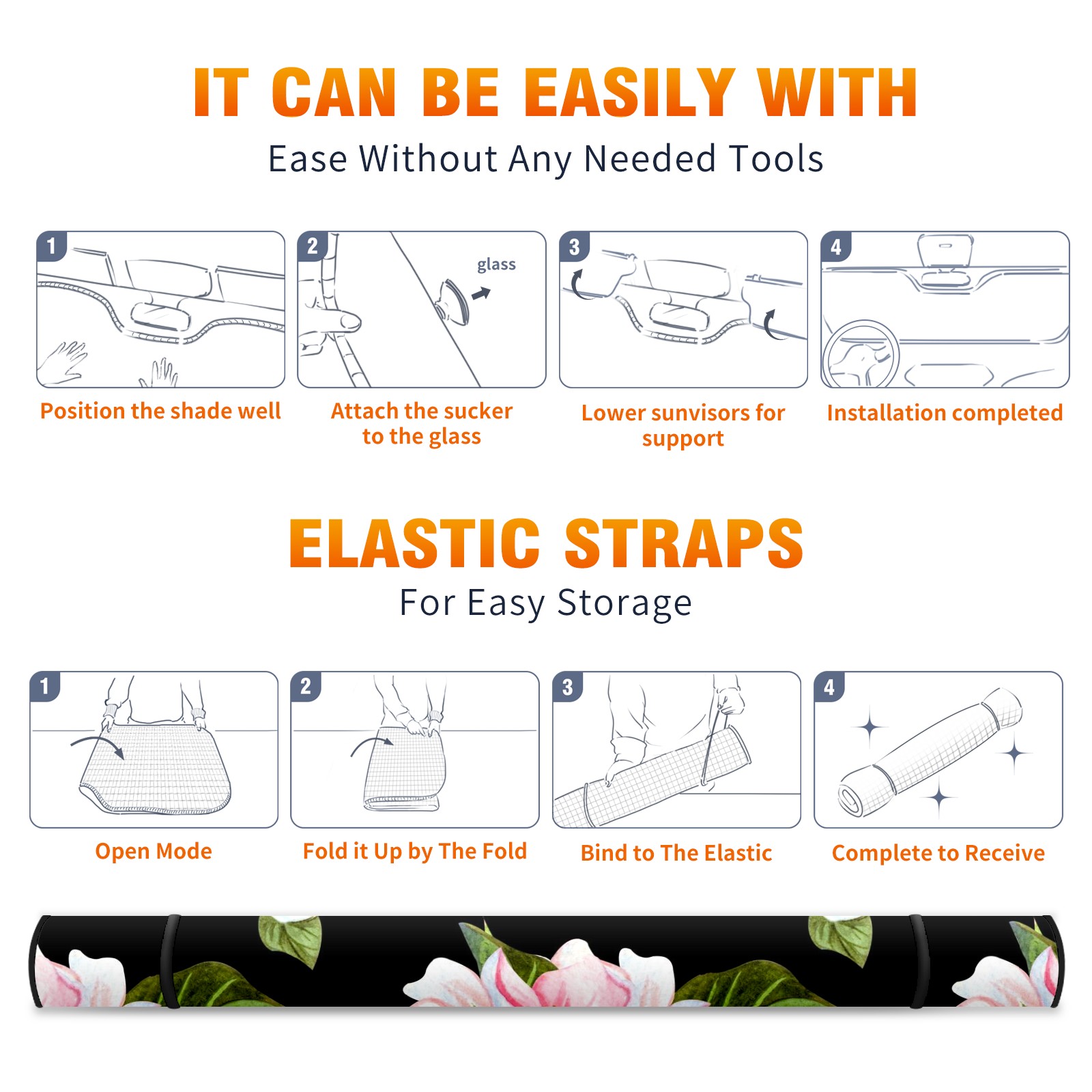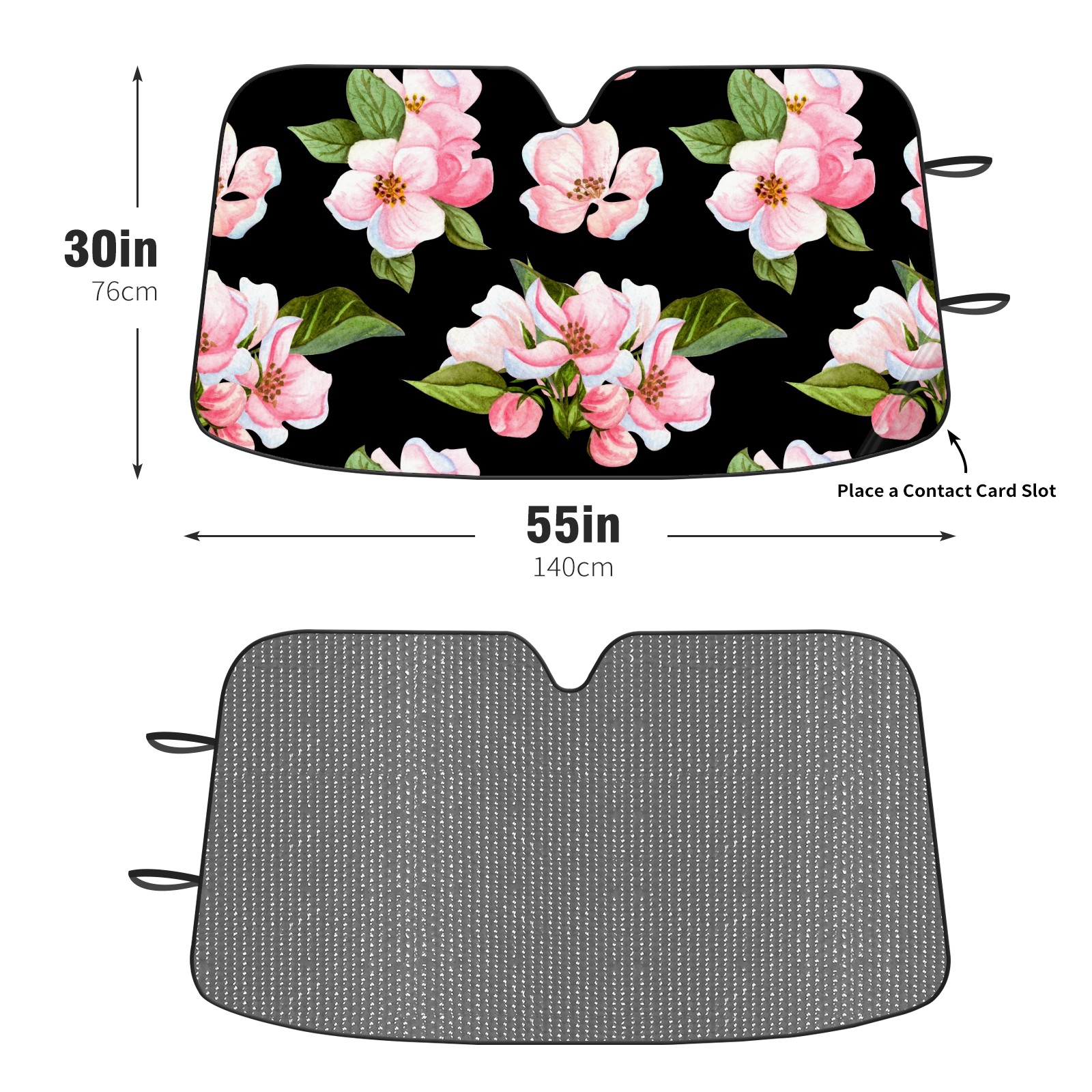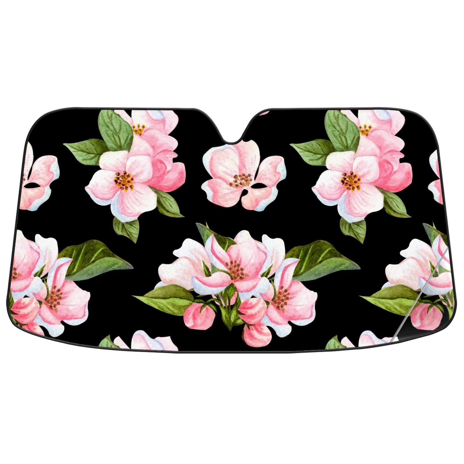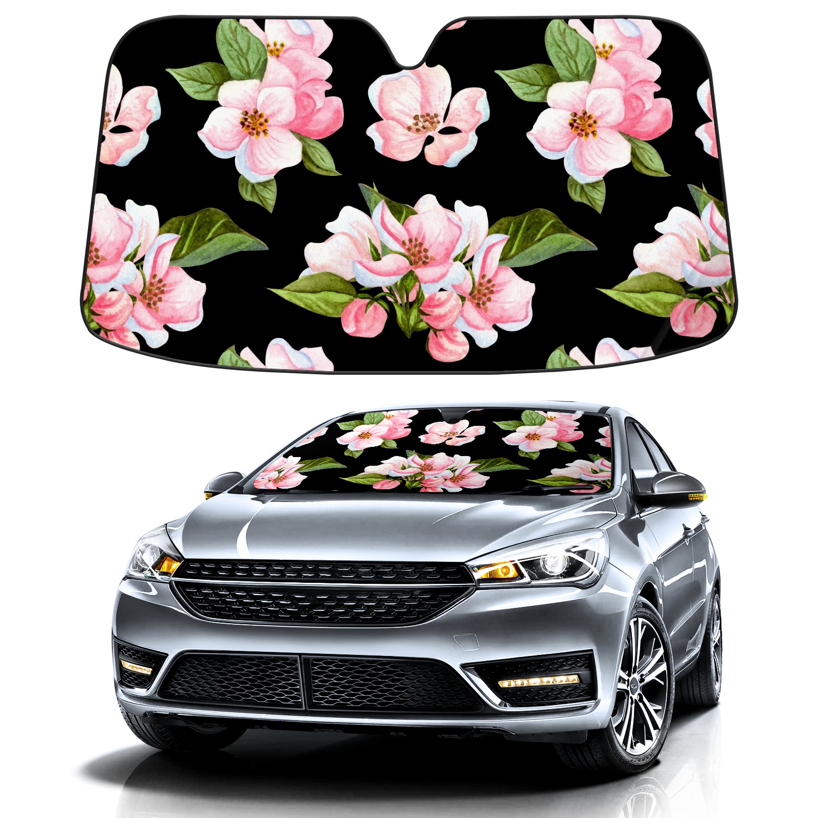 Car Windshield Sun Shade For Front Window Pink Peach Blossom On Black Background Foldable Vehicle Windshield Car Sun Visor Covers Automotive Window Protector Car Camping Privacy Sun Blocker