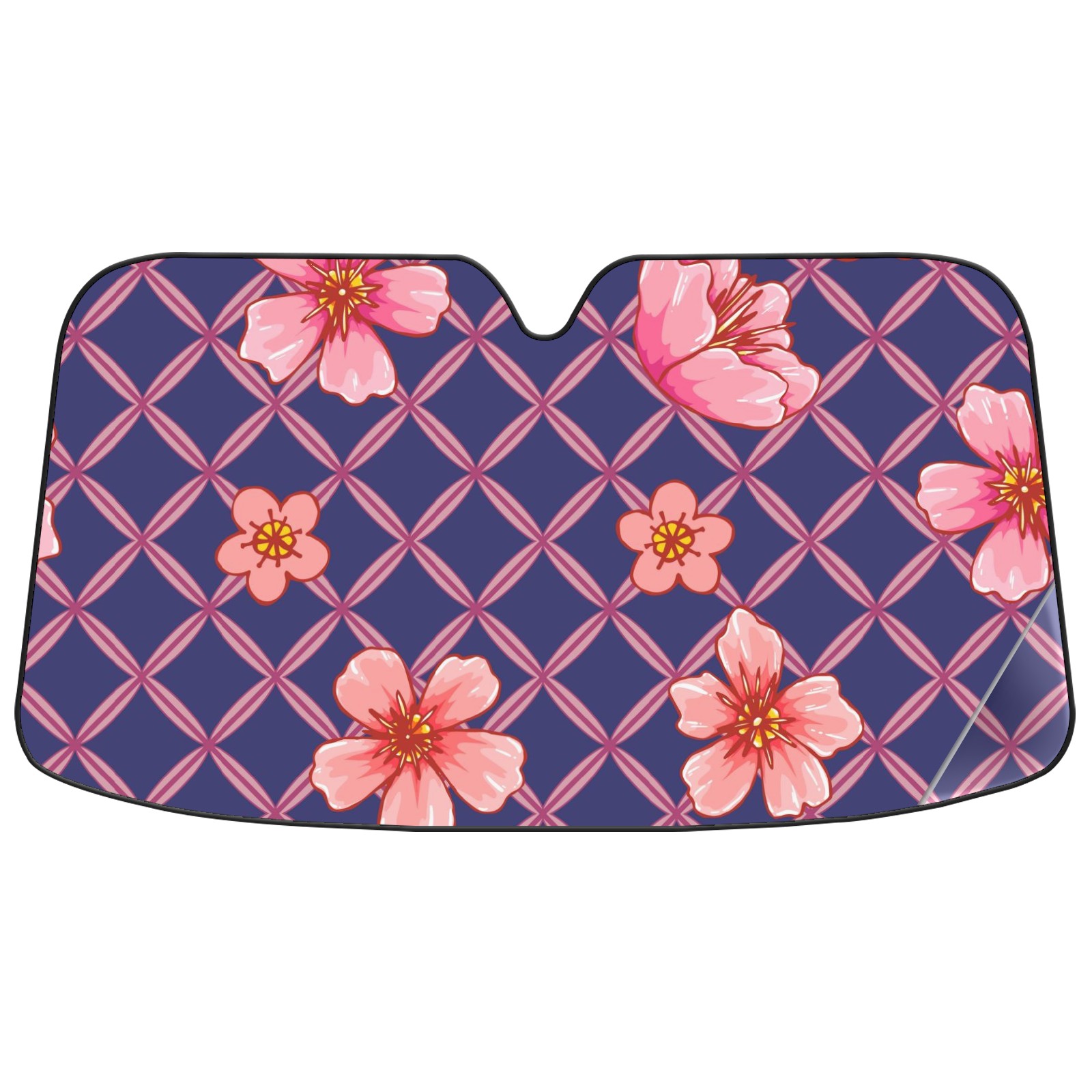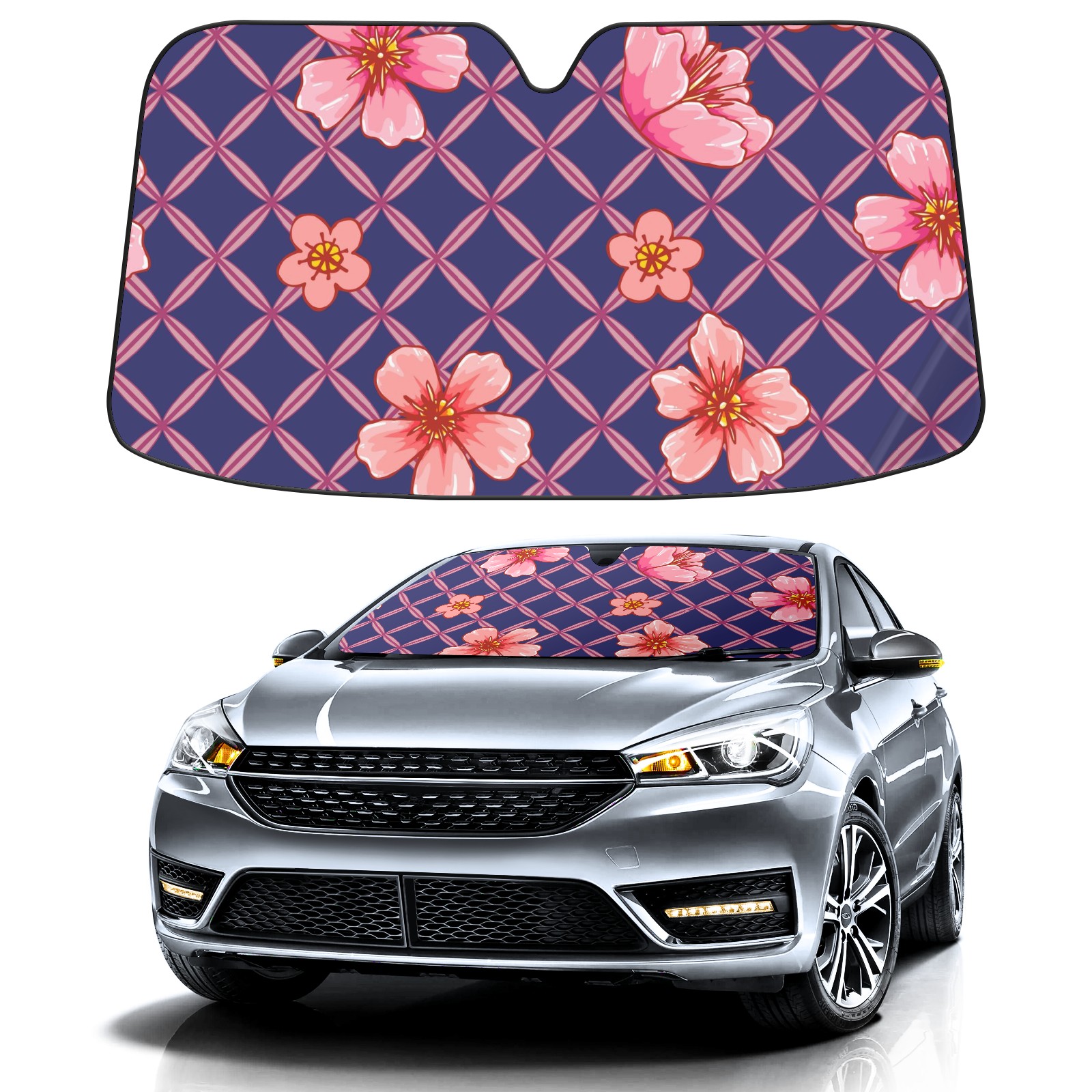 Car Windshield Sun Shade For Front Window Pink Peach Blossom Grid Foldable Vehicle Windshield Car Sun Visor Covers Automotive Window Protector Car Camping Privacy Sun Blocker