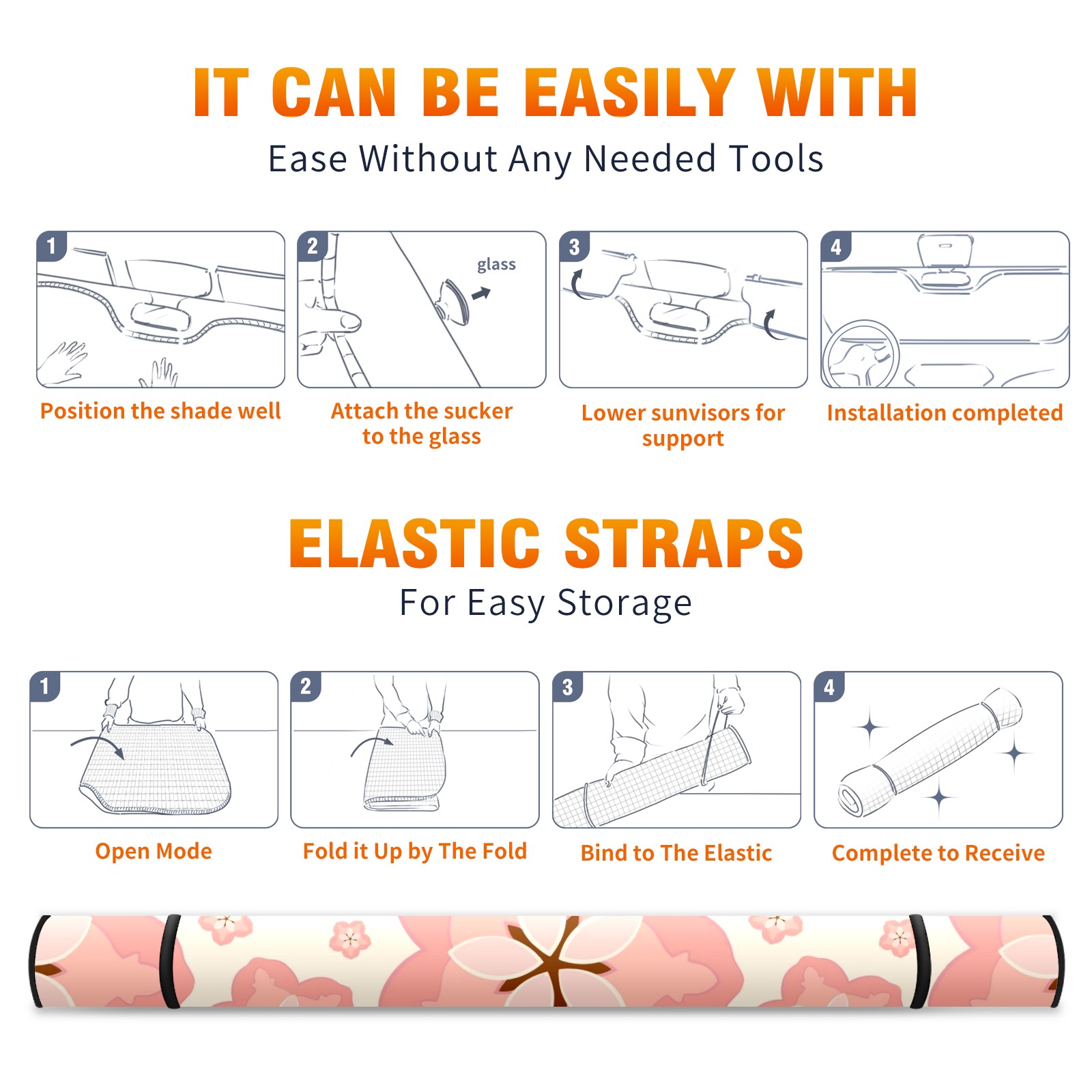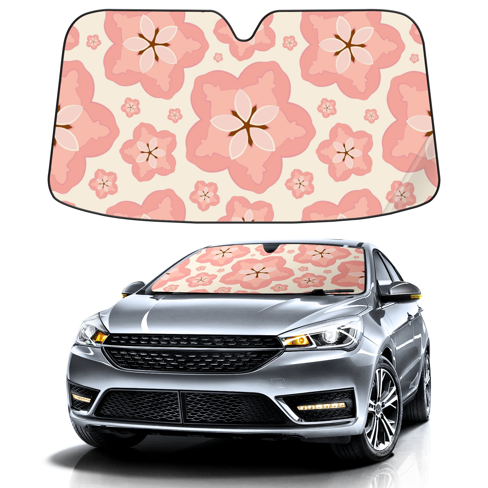 Car Windshield Sun Shade For Front Window Sakura Flowers On Light Pastel Peach Background Foldable Vehicle Windshield Car Sun Visor Covers Automotive Window Protector Car Camping Privacy Sun Blocker
