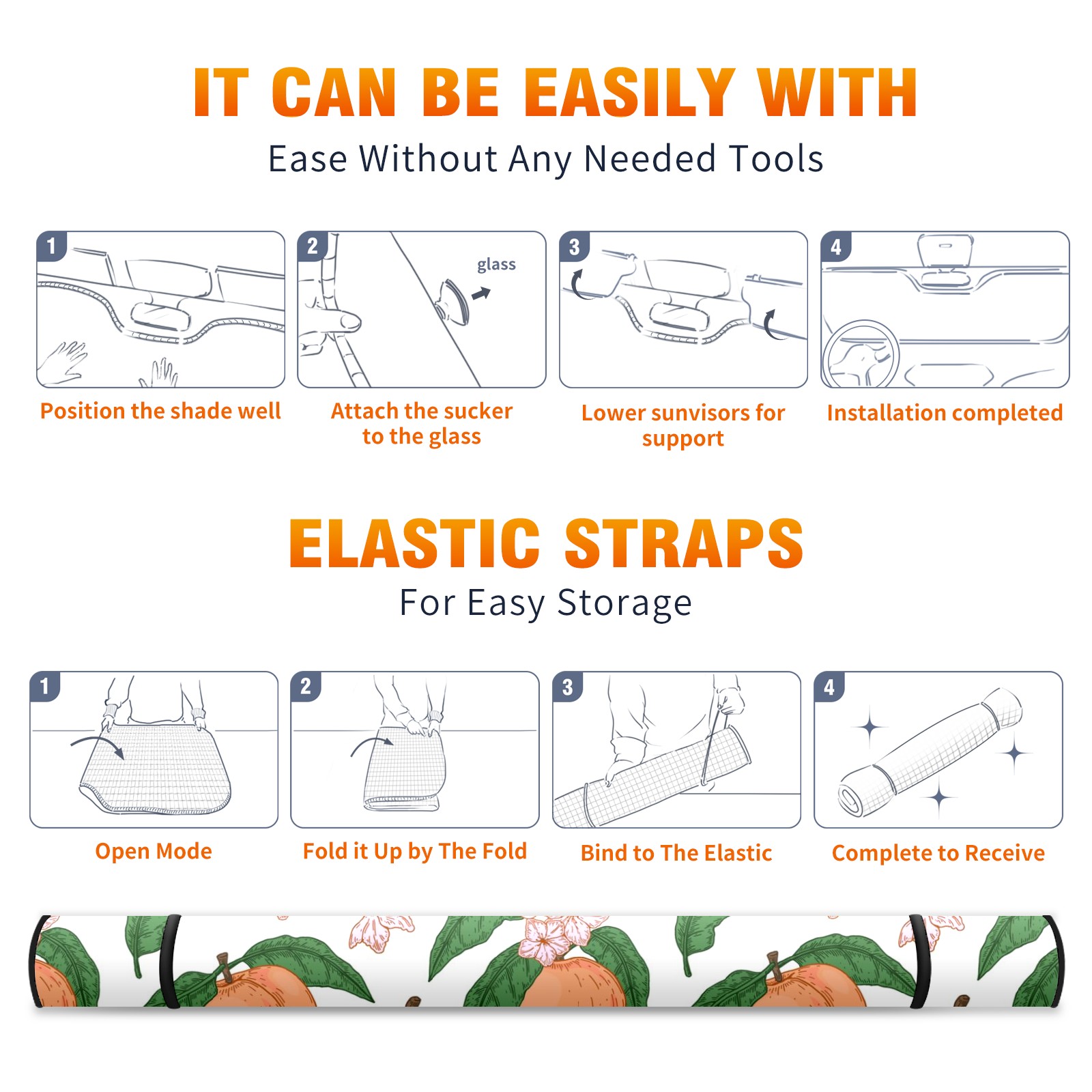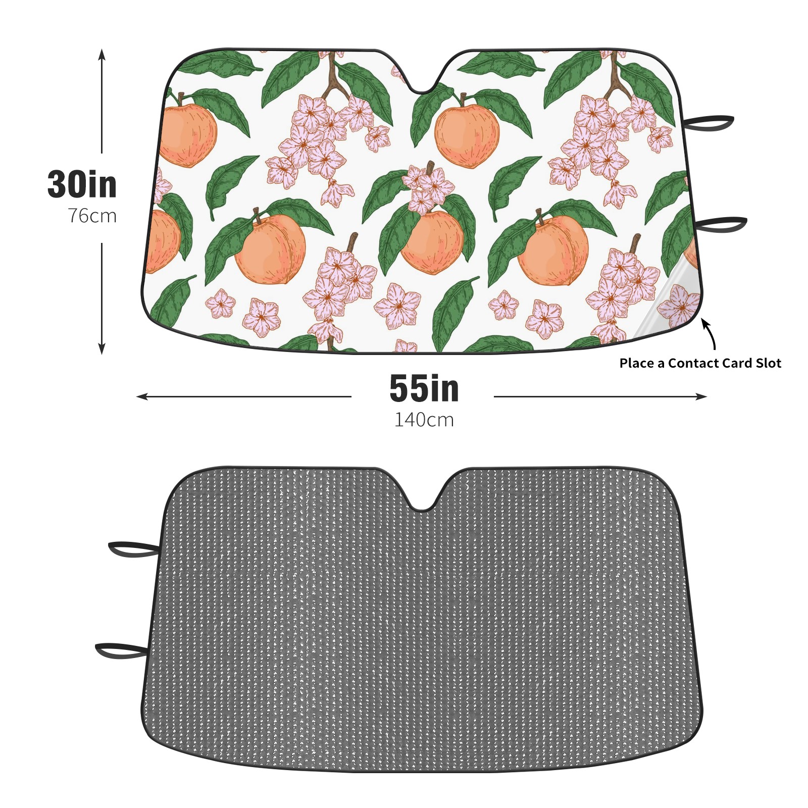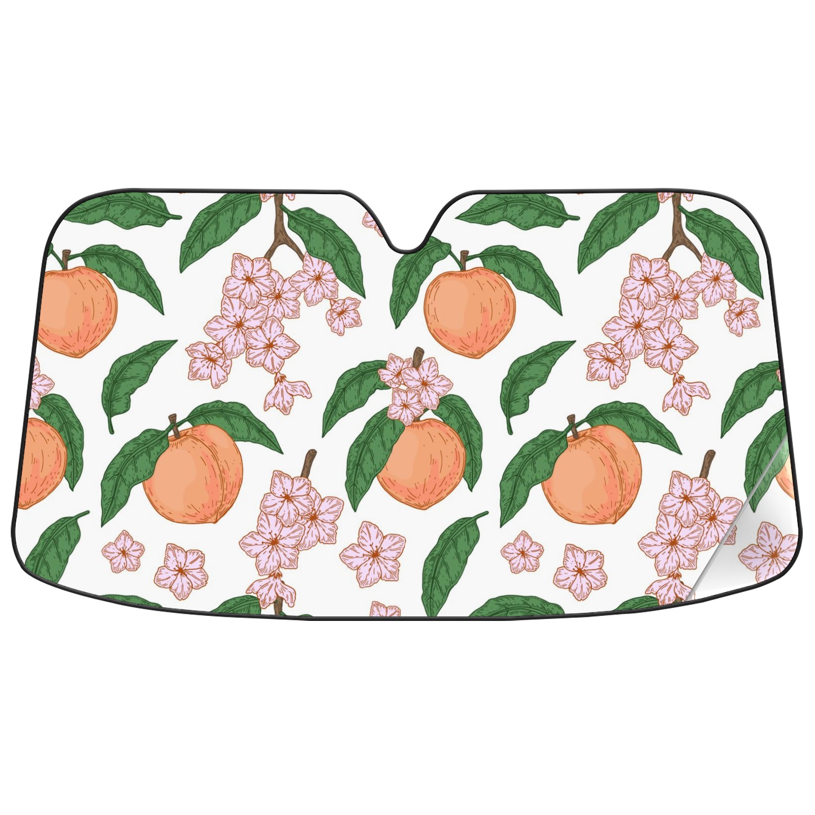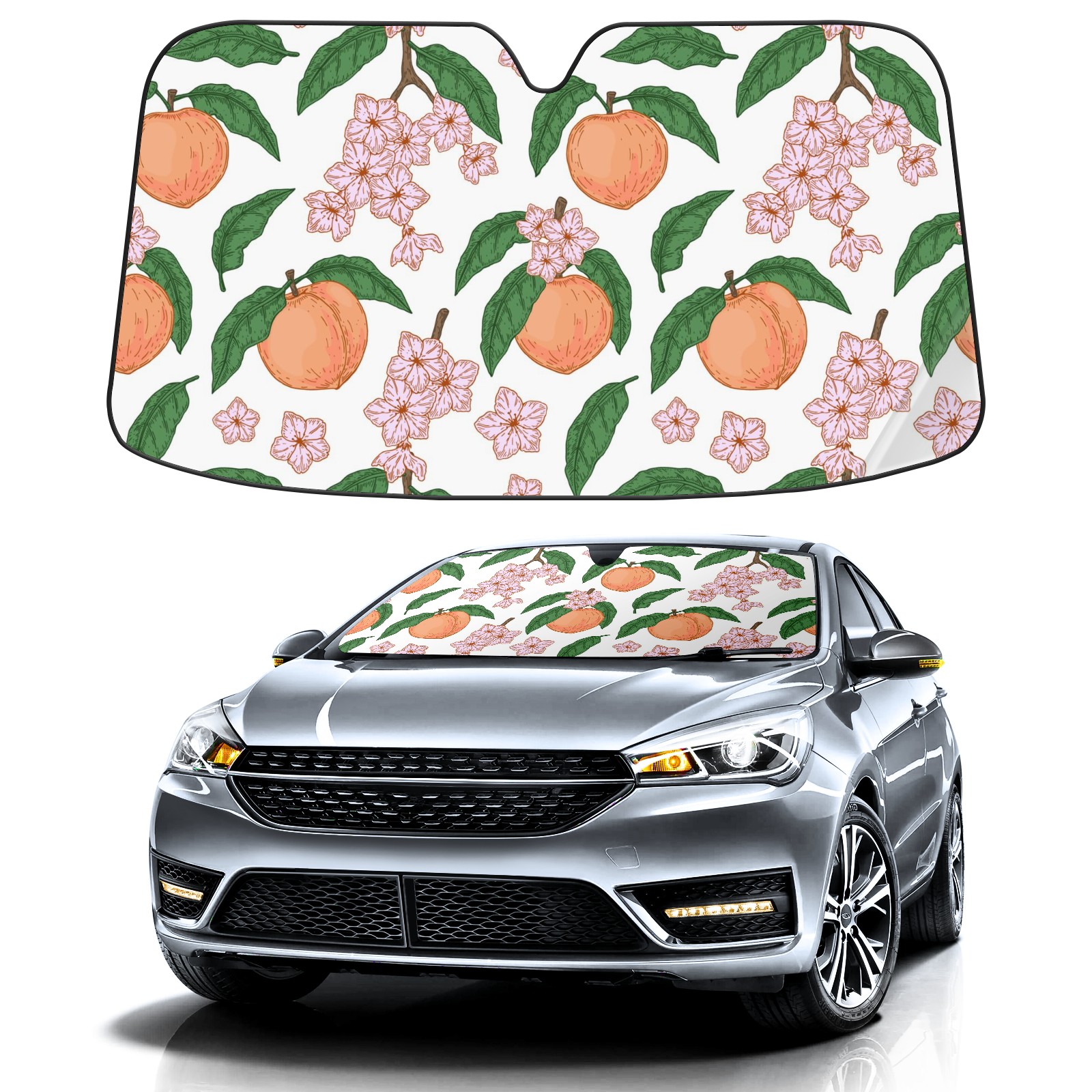 Car Windshield Sun Shade For Front Window Hand Drawn Peach Flower Foldable Vehicle Windshield Car Sun Visor Covers Automotive Window Protector Car Camping Privacy Sun Blocker