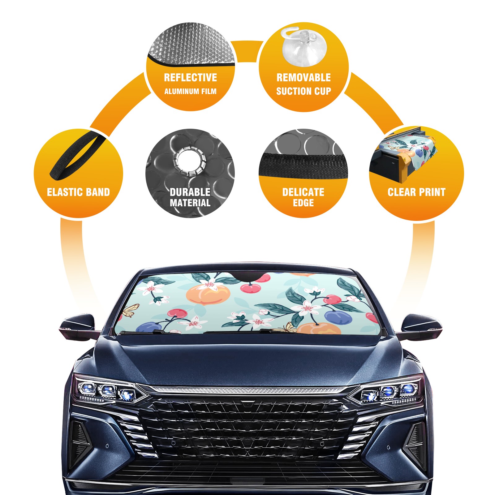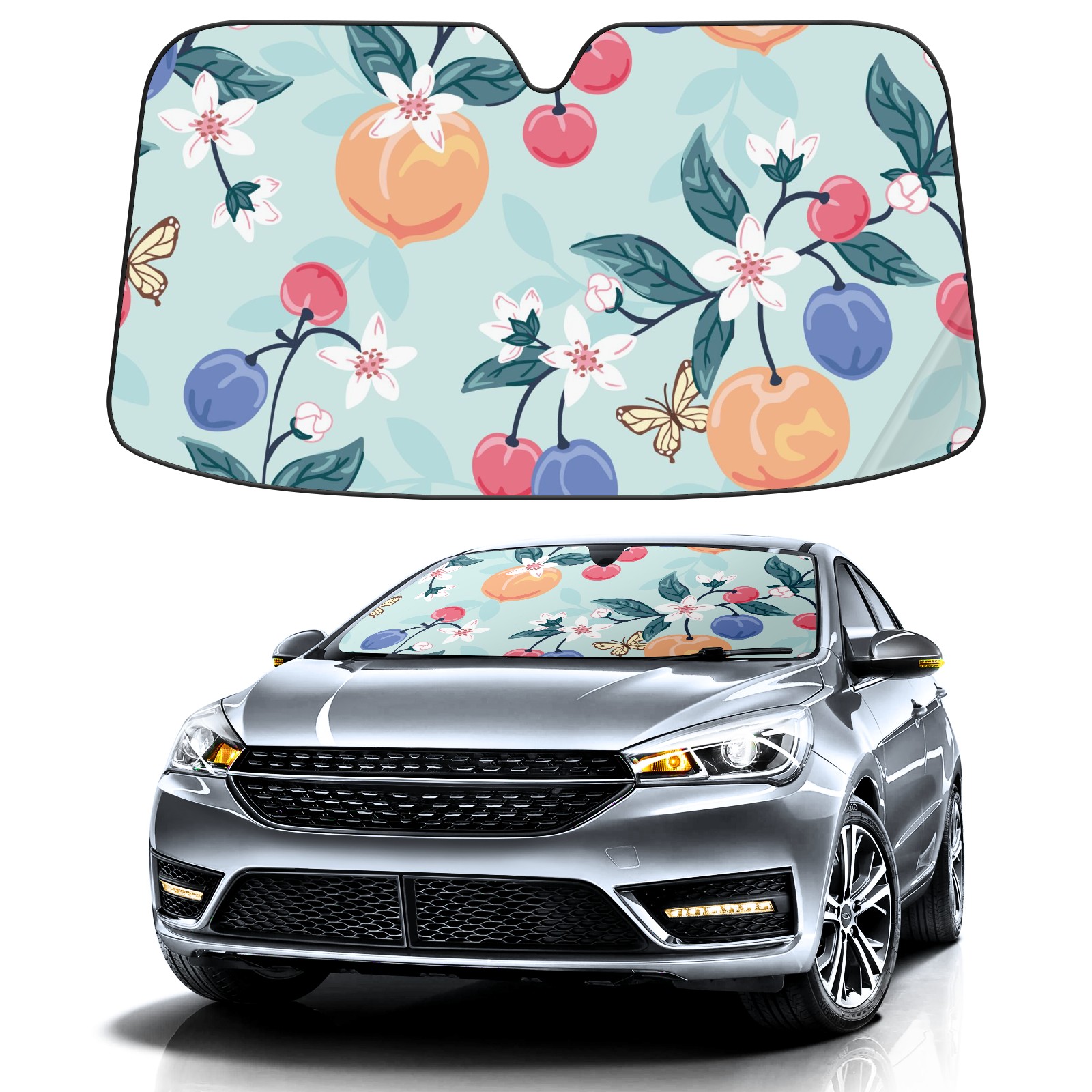 Car Windshield Sun Shade For Front Window Peach Cherry Butterfly Flower Foldable Vehicle Windshield Car Sun Visor Covers Automotive Window Protector Car Camping Privacy Sun Blocker