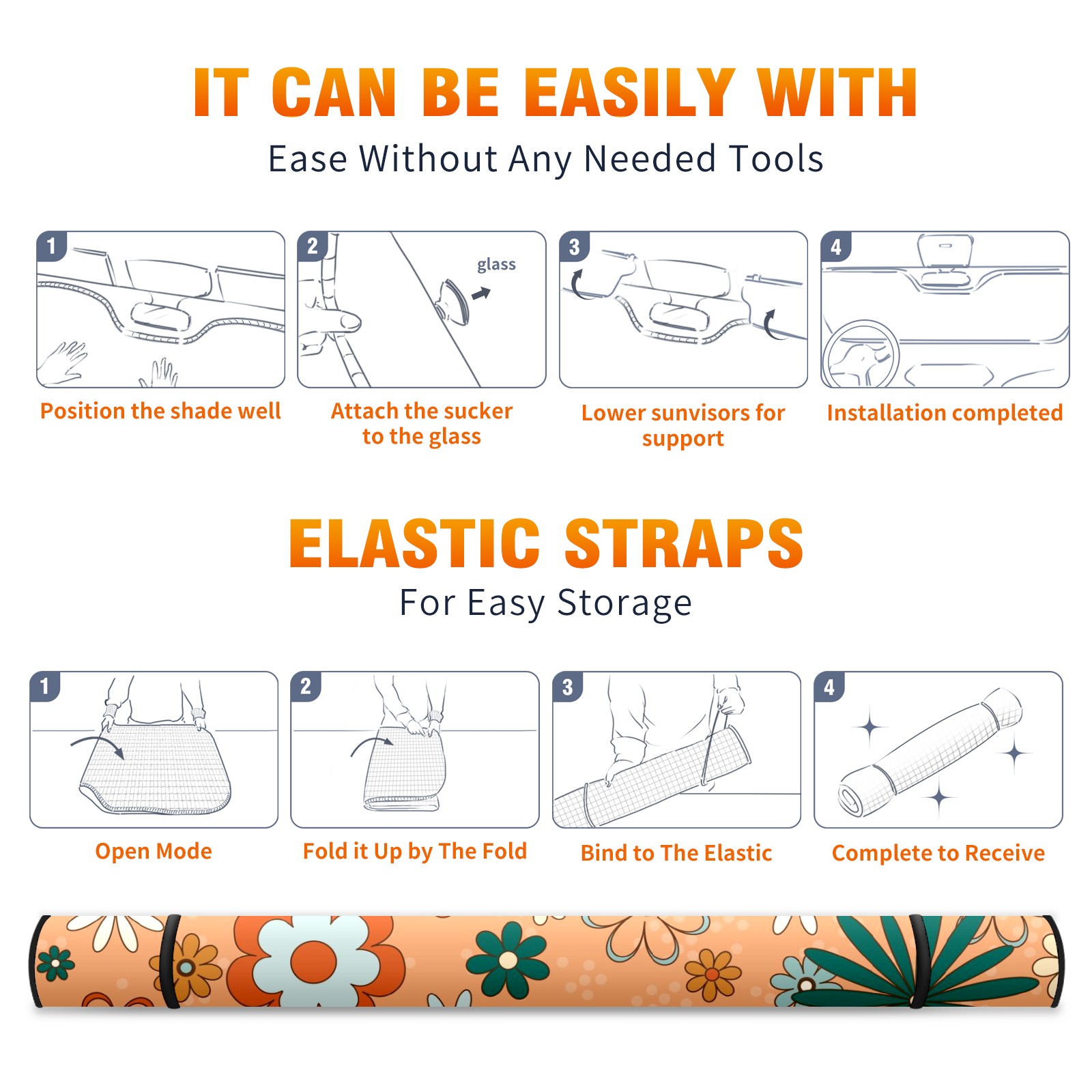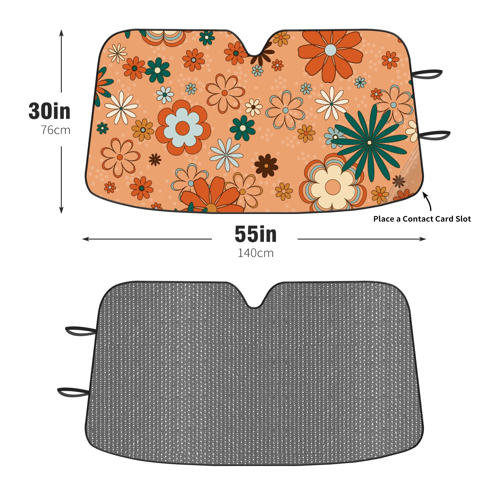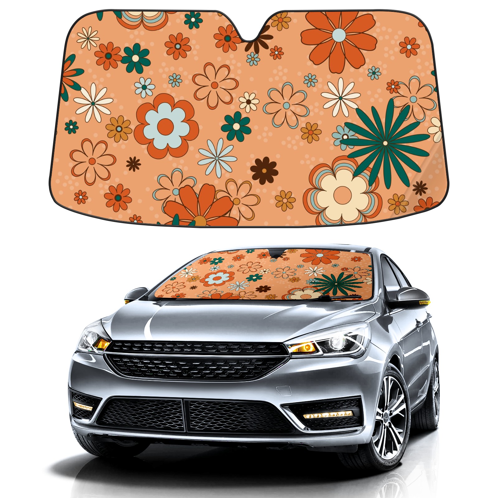 Car Windshield Sun Shade For Front Window Cute Vintage Flowers On Orange Background Foldable Vehicle Windshield Car Sun Visor Covers Automotive Window Protector Car Camping Privacy Sun Blocker