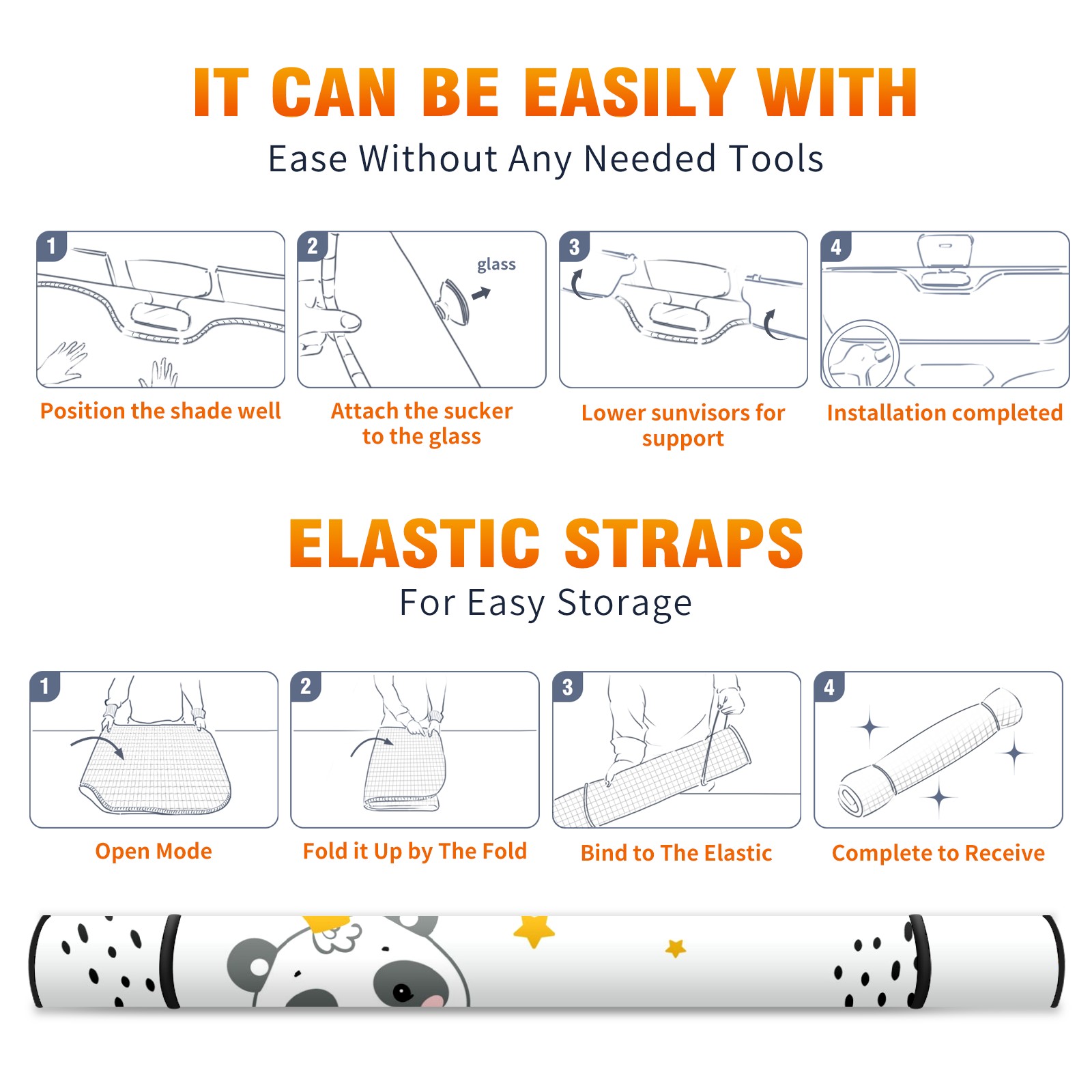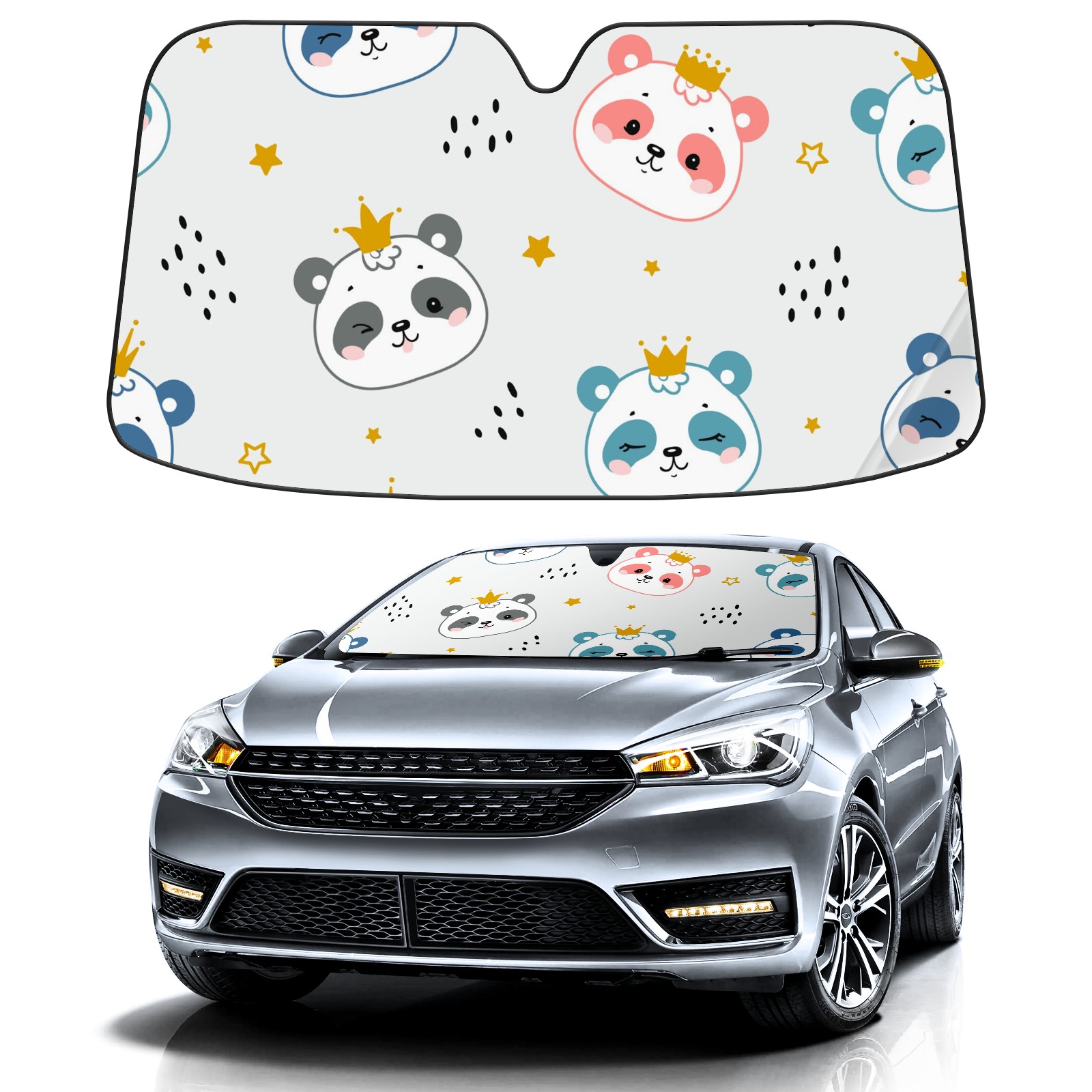 Car Windshield Sun Shade For Front Window Kawaii Pandas Princess Foldable Vehicle Windshield Car Sun Visor Covers Automotive Window Protector Car Camping Privacy Sun Blocker