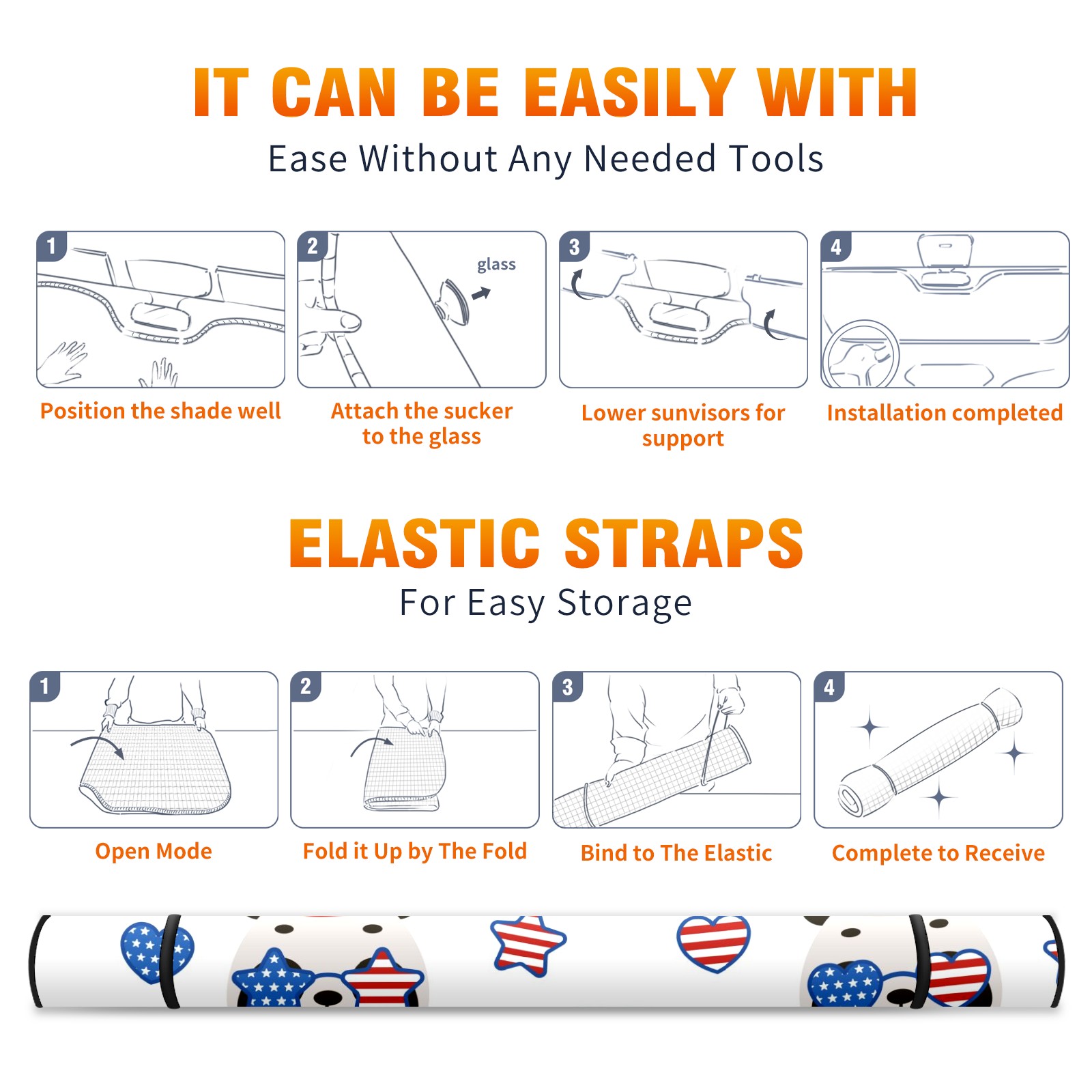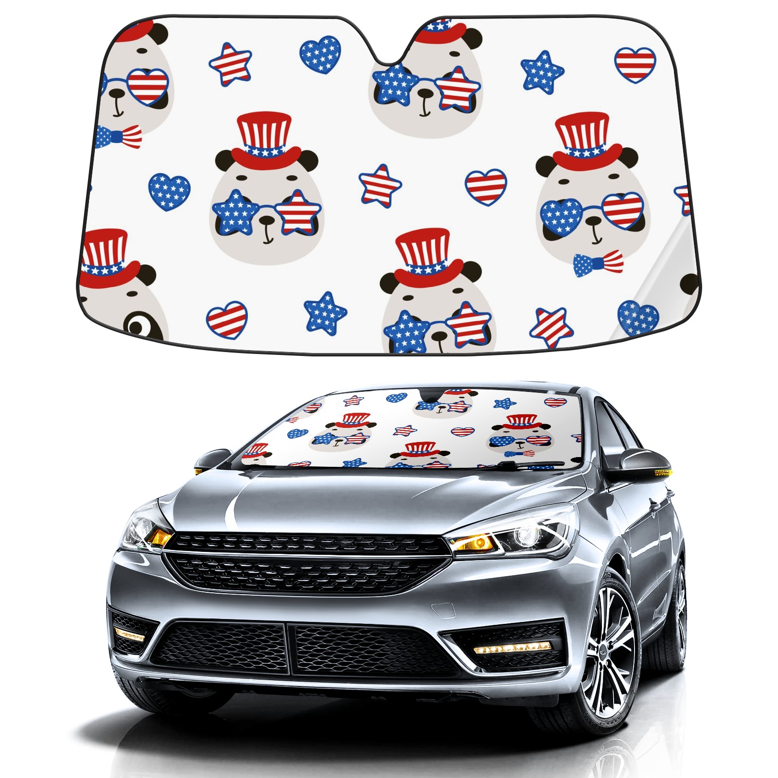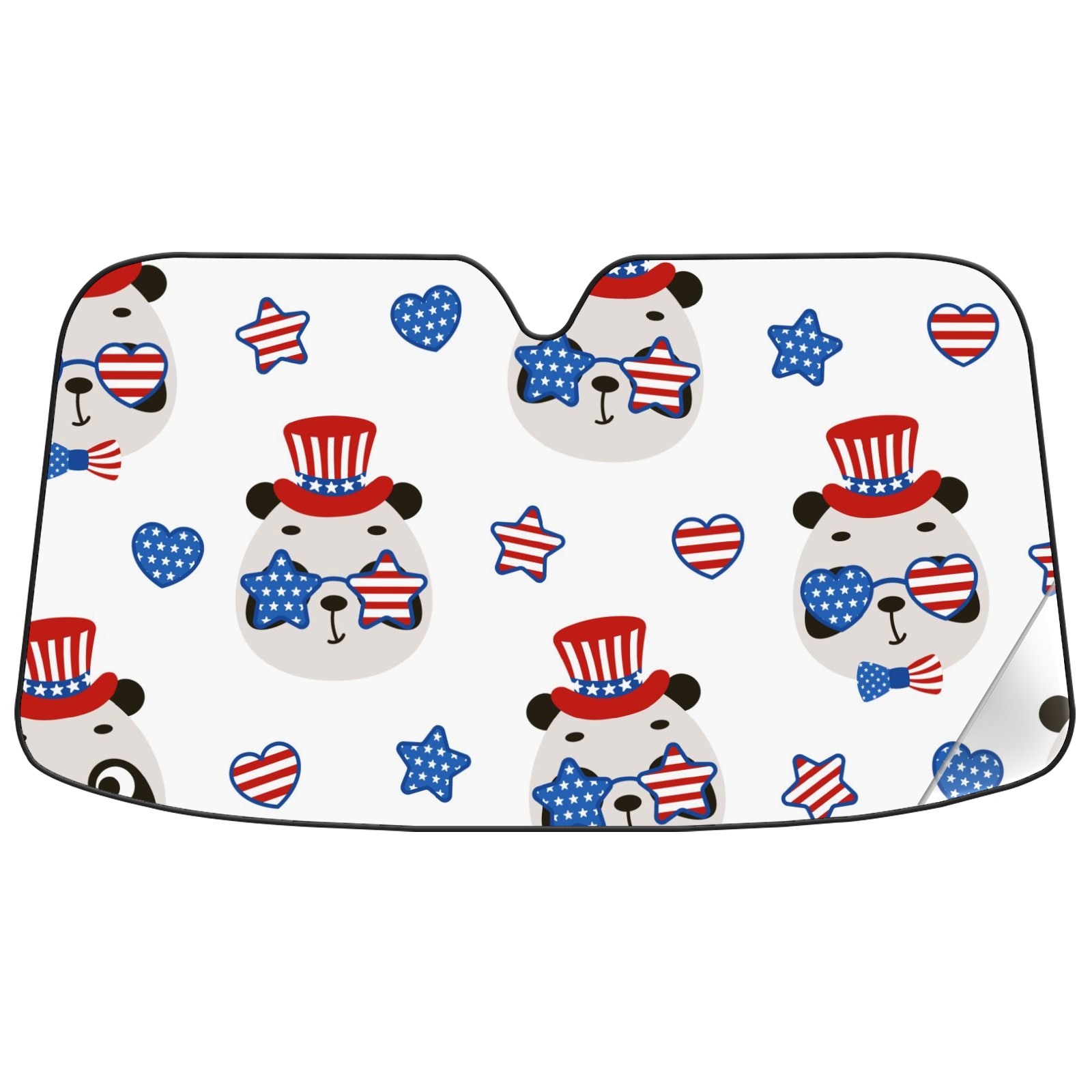 Car Windshield Sun Shade For Front Window Cute Panda USA Patriotic Hat Foldable Vehicle Windshield Car Sun Visor Covers Automotive Window Protector Car Camping Privacy Sun Blocker