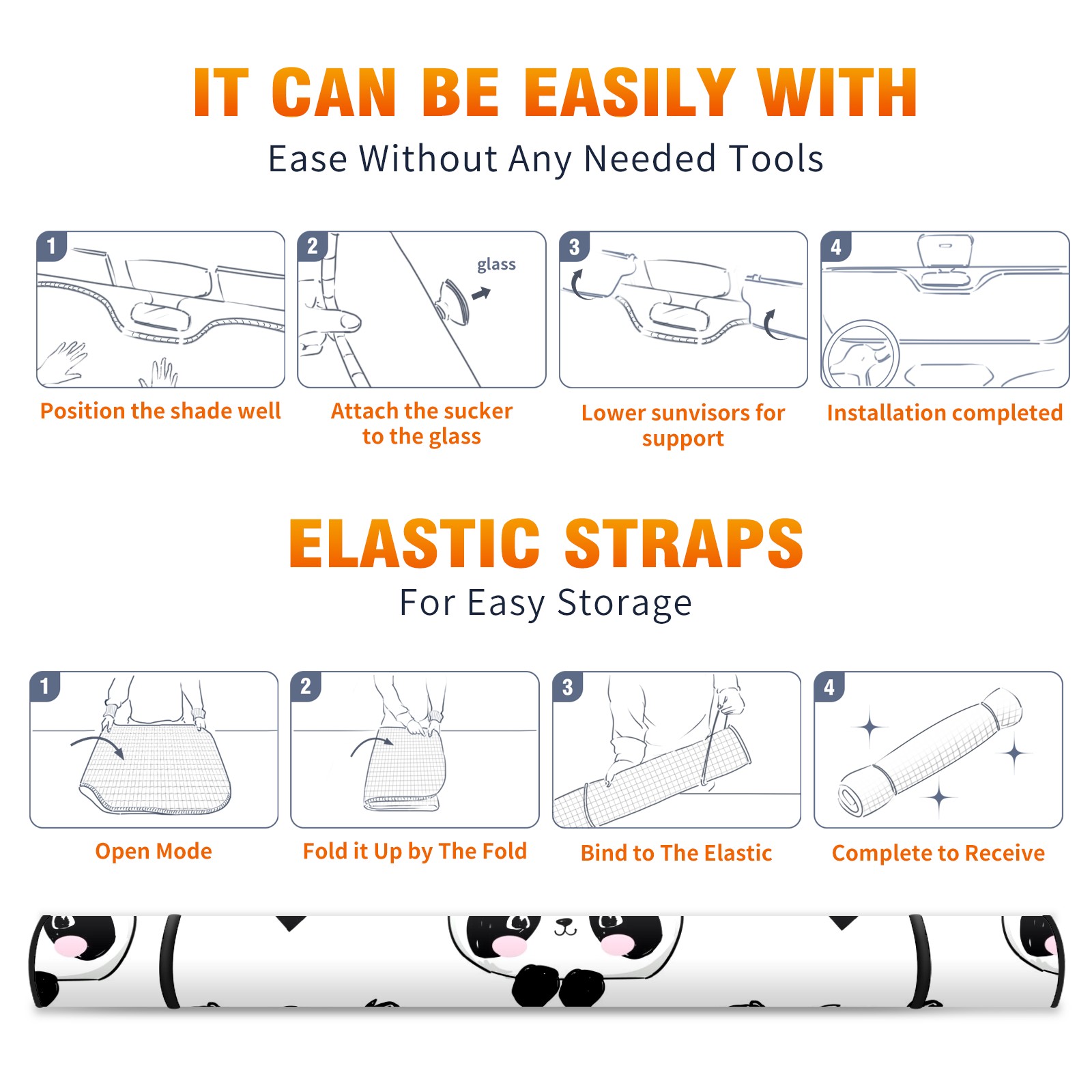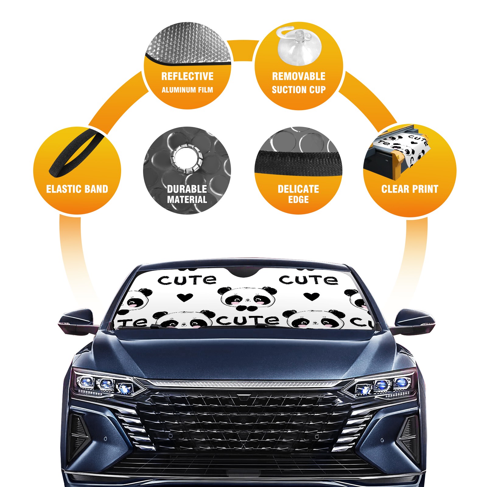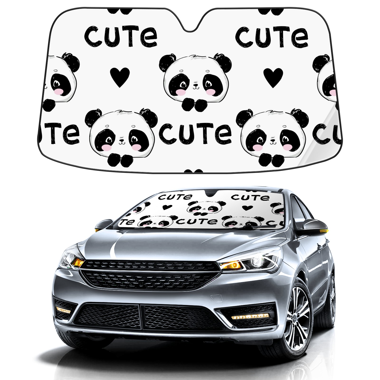 Car Windshield Sun Shade For Front Window Cute Panda And Heart Foldable Vehicle Windshield Car Sun Visor Covers Automotive Window Protector Car Camping Privacy Sun Blocker