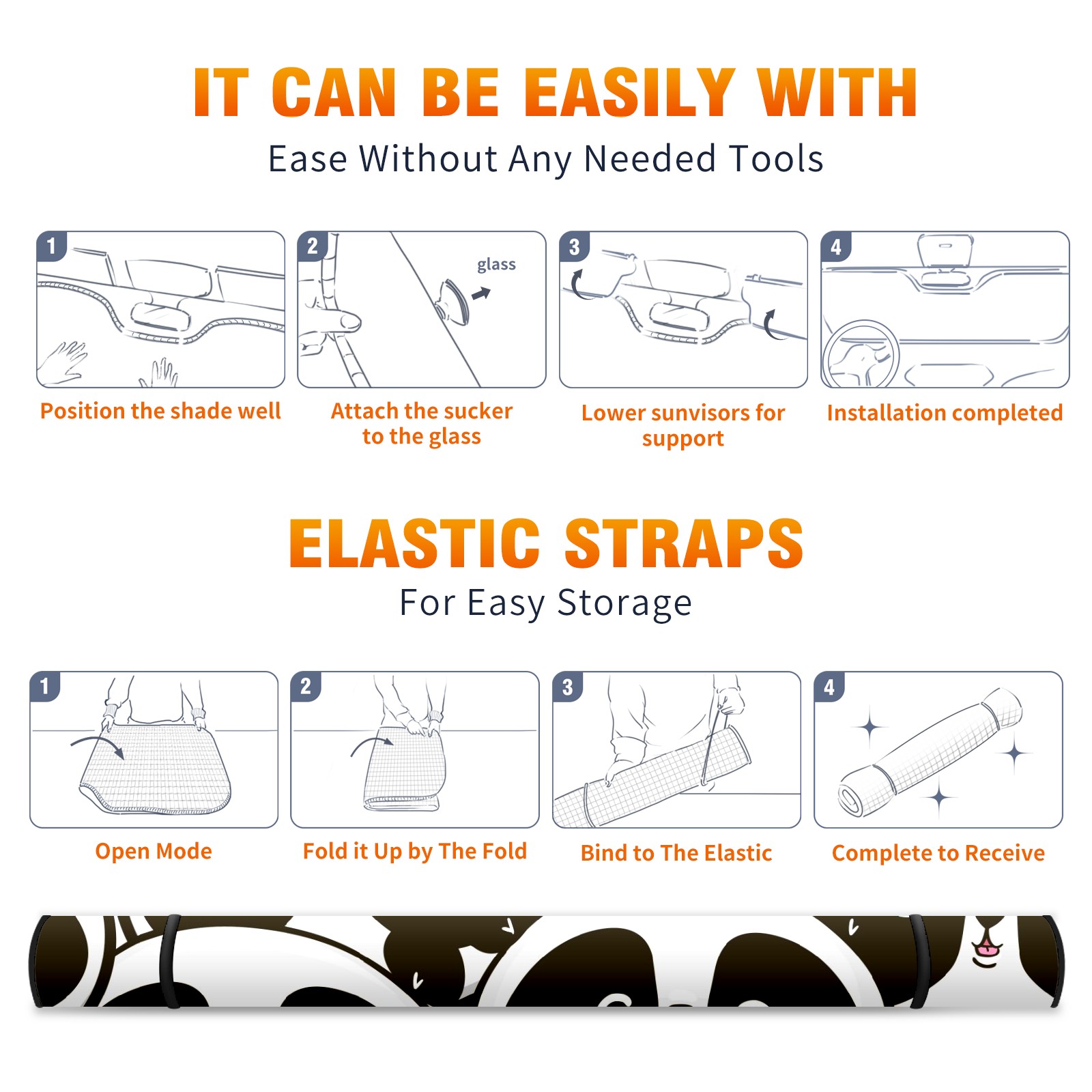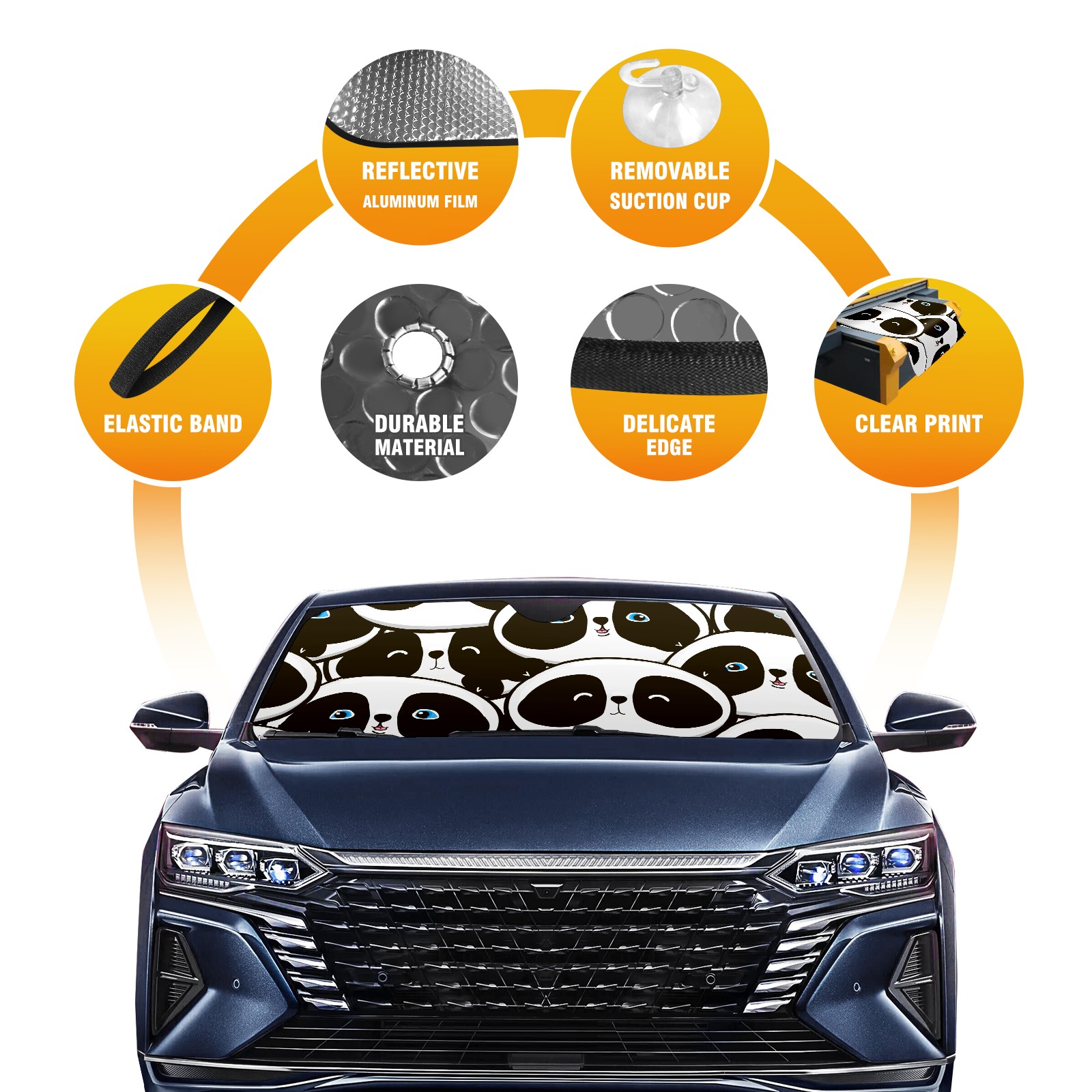 Car Windshield Sun Shade For Front Window Cute Panda Baby Foldable Vehicle Windshield Car Sun Visor Covers Automotive Window Protector Car Camping Privacy Sun Blocker