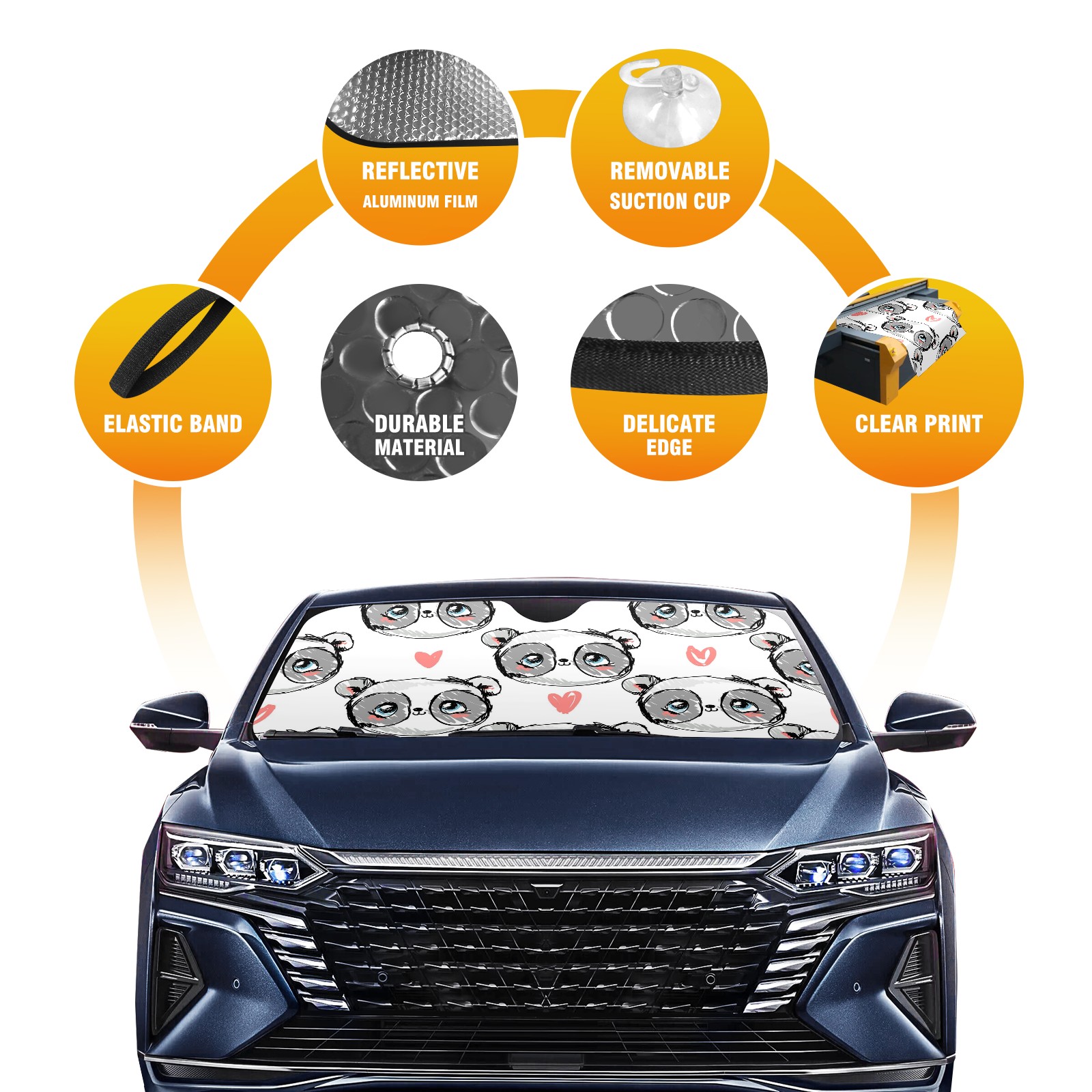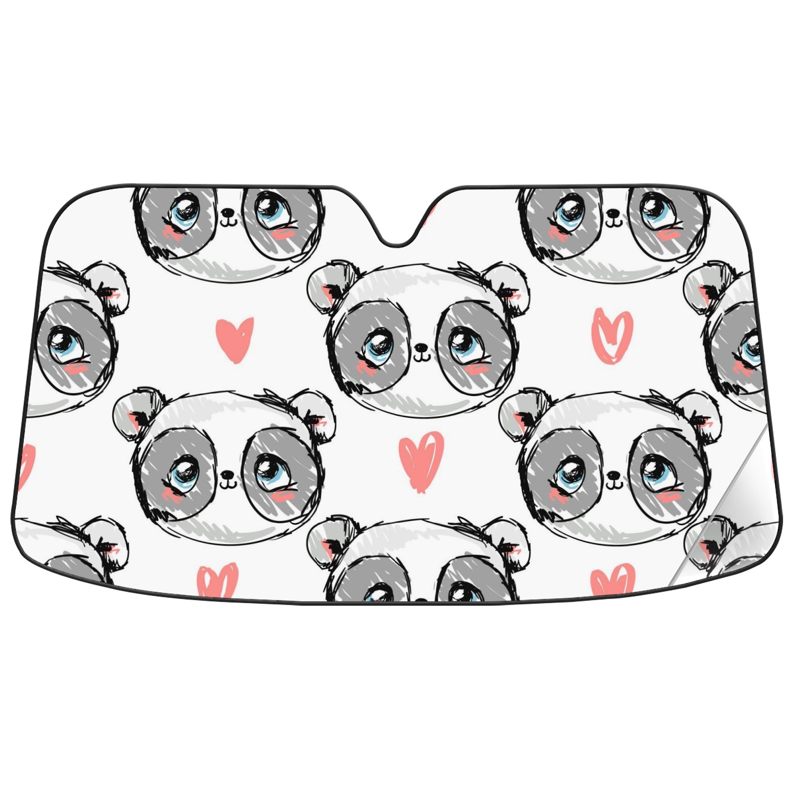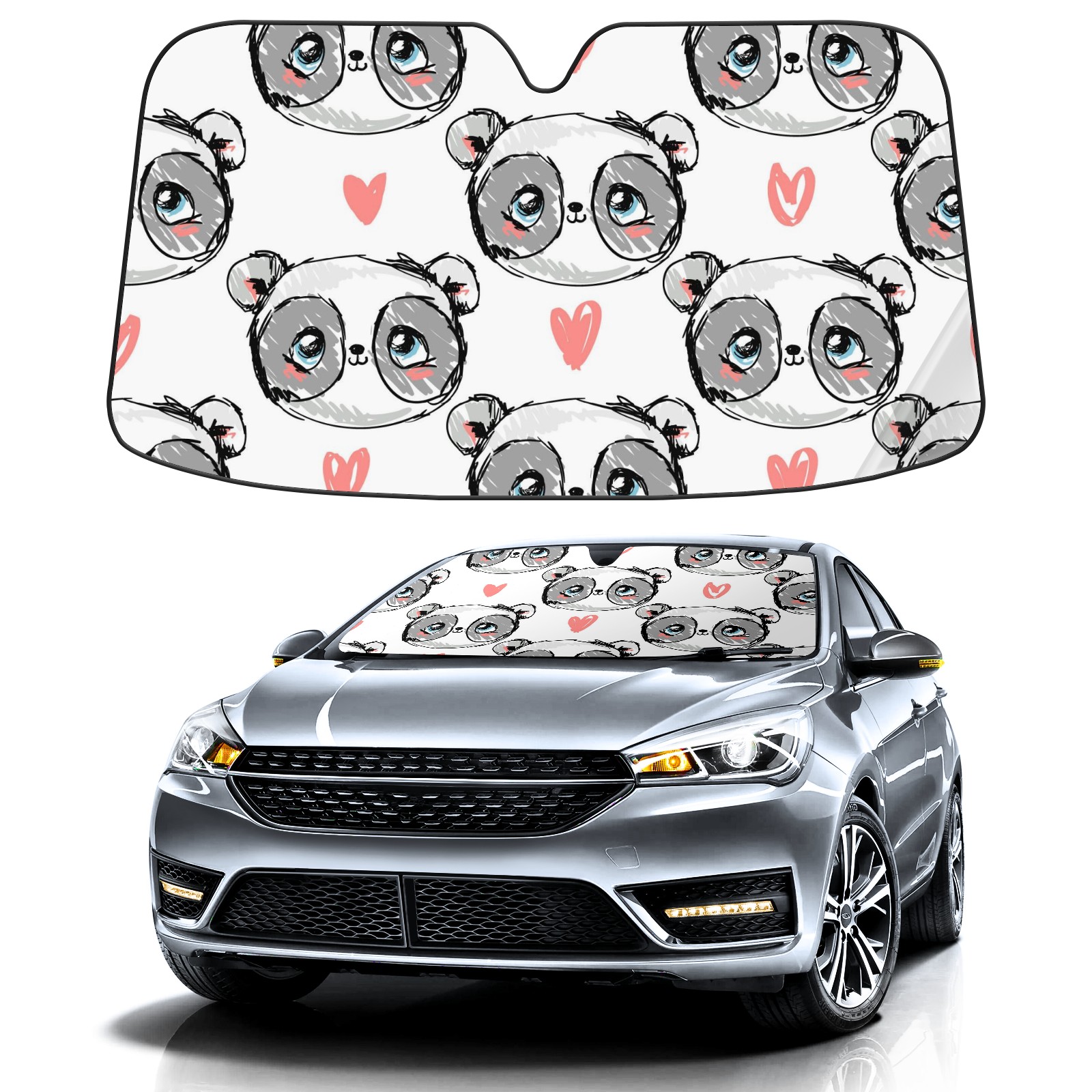 Car Windshield Sun Shade For Front Window Cute Panda Heart Foldable Vehicle Windshield Car Sun Visor Covers Automotive Window Protector Car Camping Privacy Sun Blocker