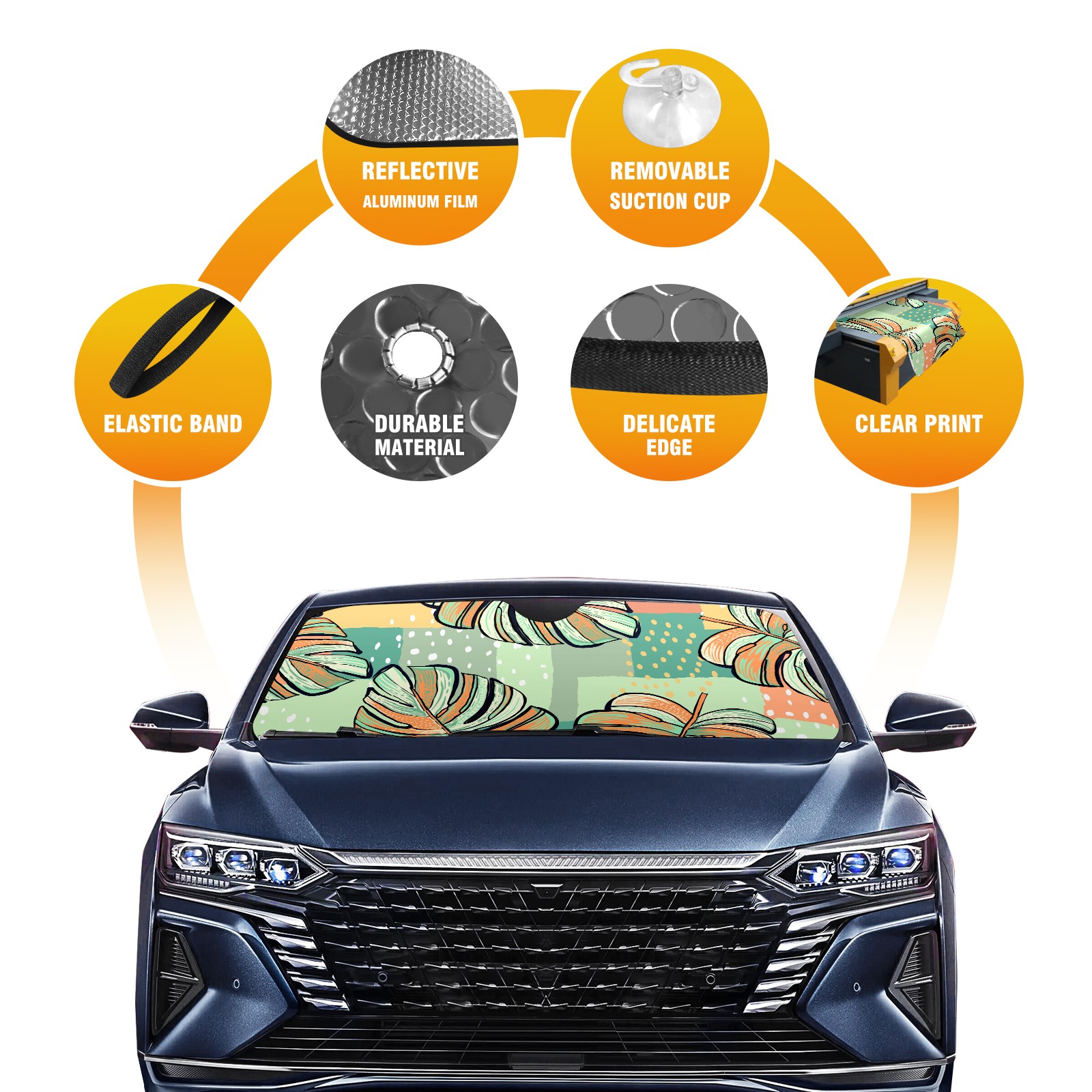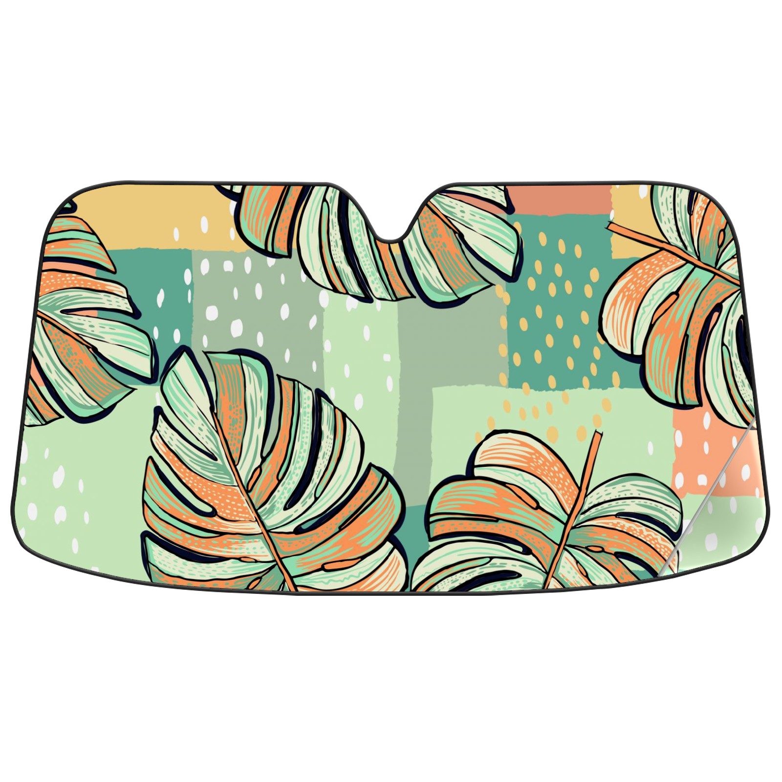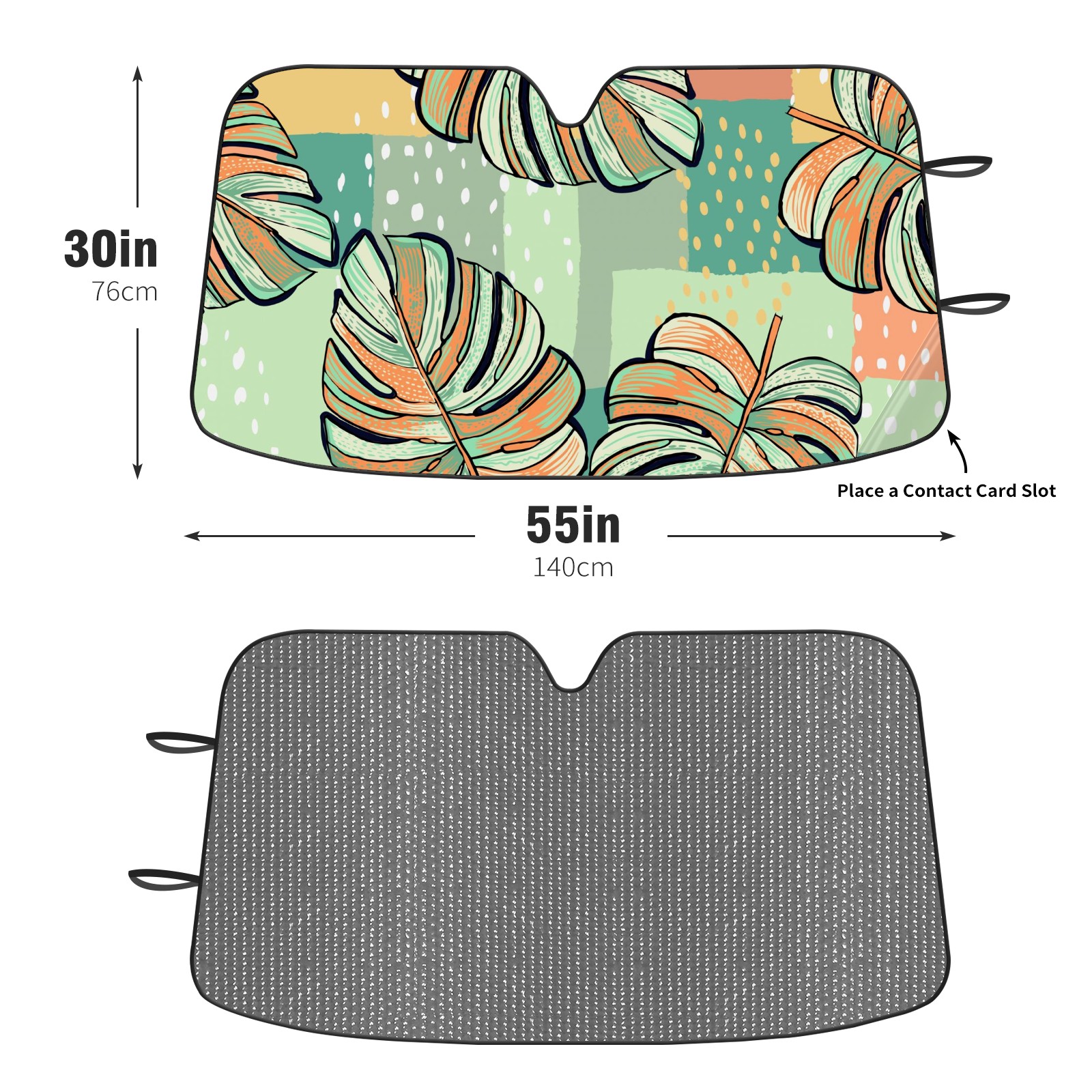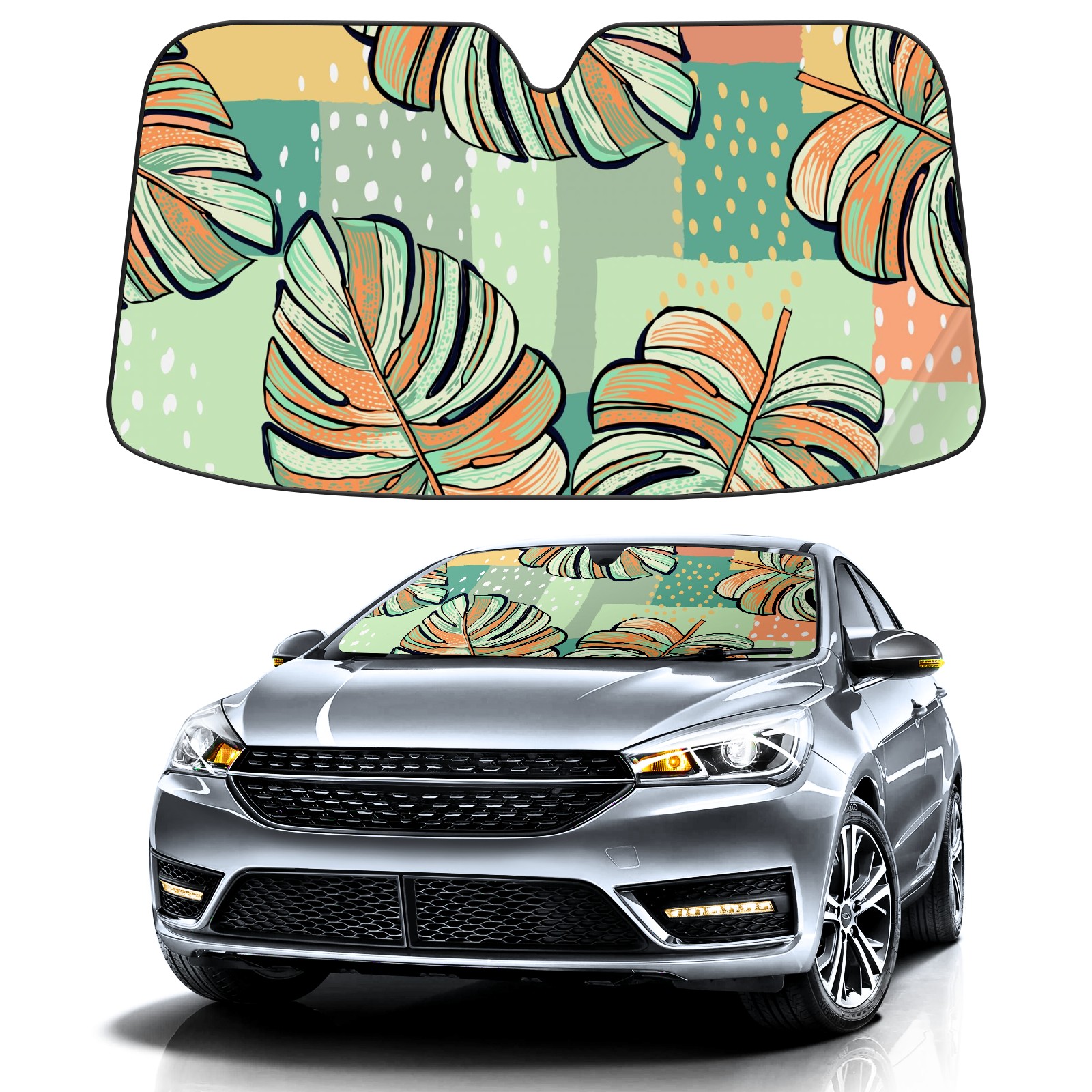 Car Windshield Sun Shade For Front Window Tropical Funny Monstera Leaf Foldable Vehicle Windshield Car Sun Visor Covers Automotive Window Protector Car Camping Privacy Sun Blocker