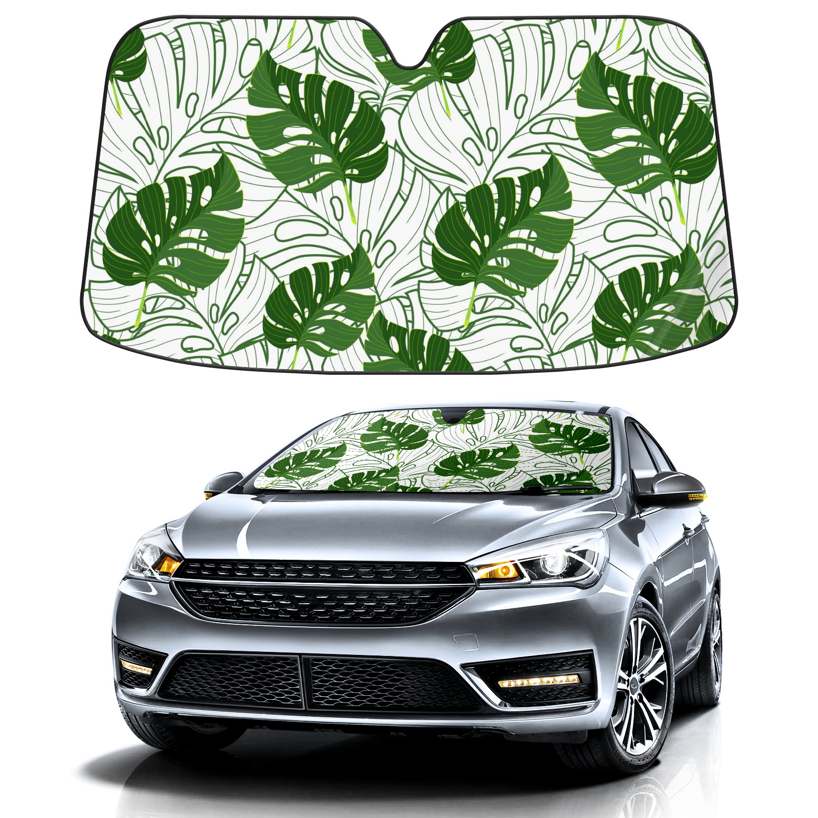 Car Windshield Sun Shade For Front Window Jungle Tropical Monstera Leaves Foldable Vehicle Windshield Car Sun Visor Covers Automotive Window Protector Car Camping Privacy Sun Blocker