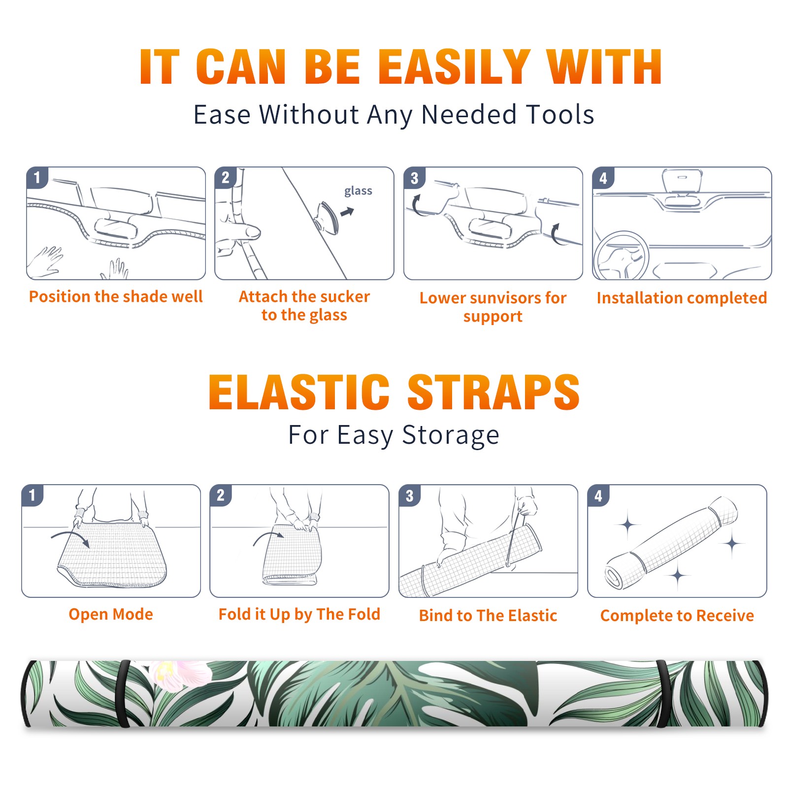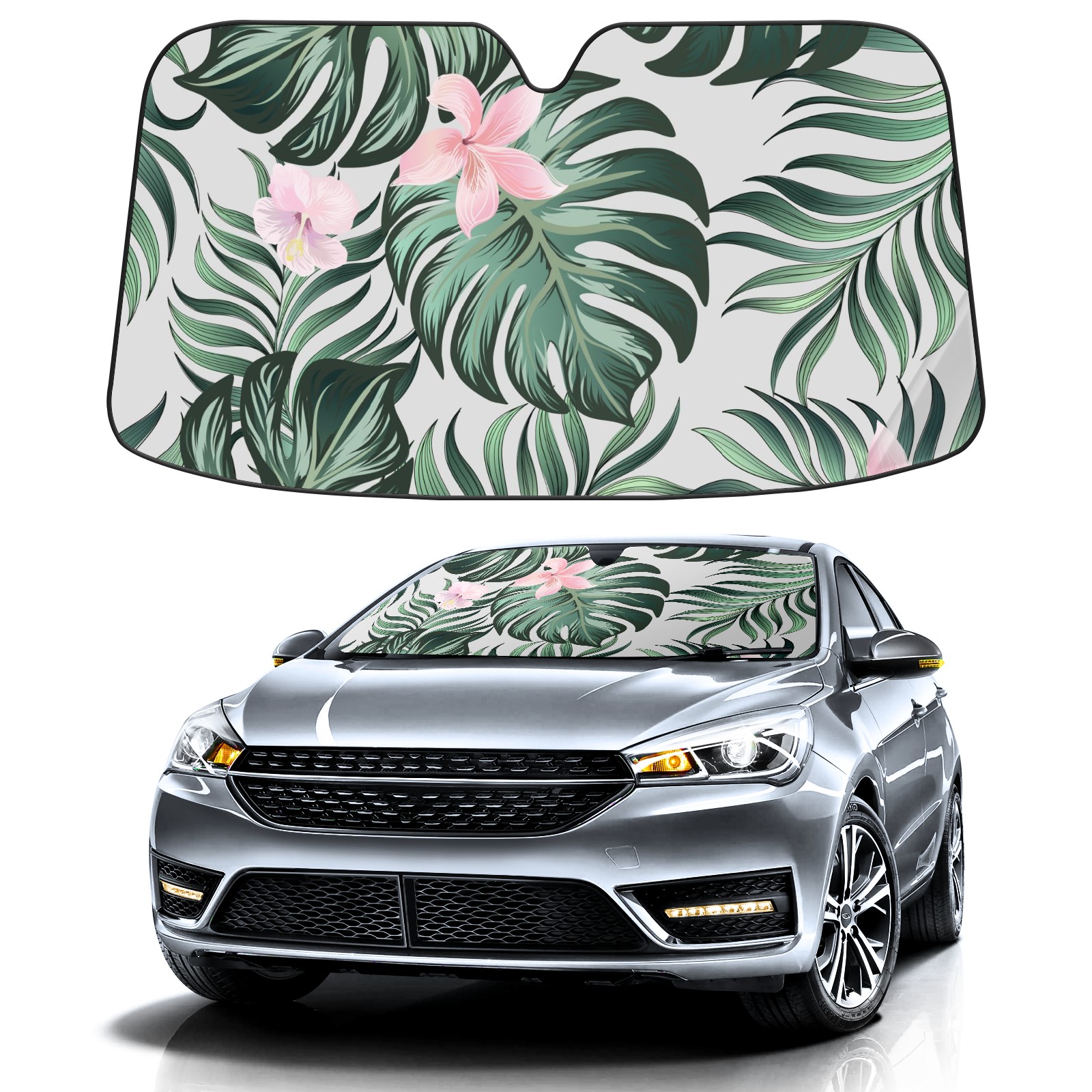 Car Windshield Sun Shade For Front Window Jungle Flowers And Palm Leaves Foldable Vehicle Windshield Car Sun Visor Covers Automotive Window Protector Car Camping Privacy Sun Blocker