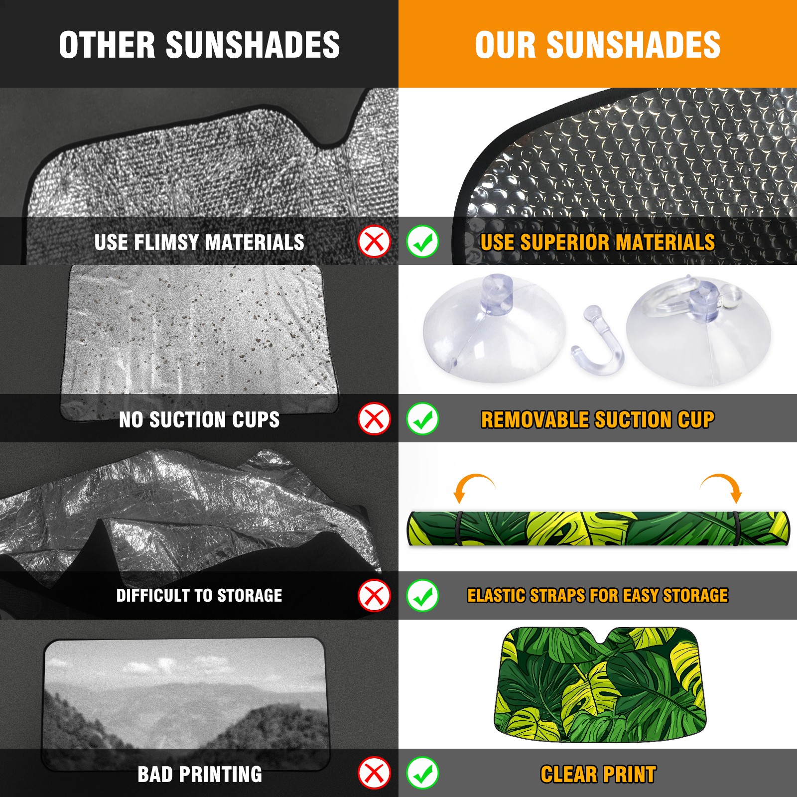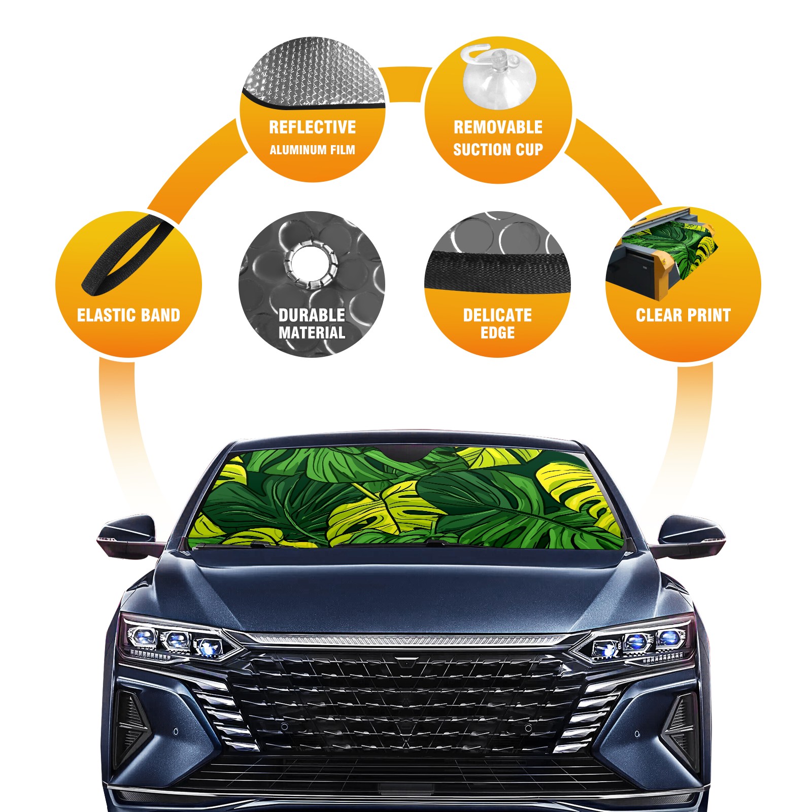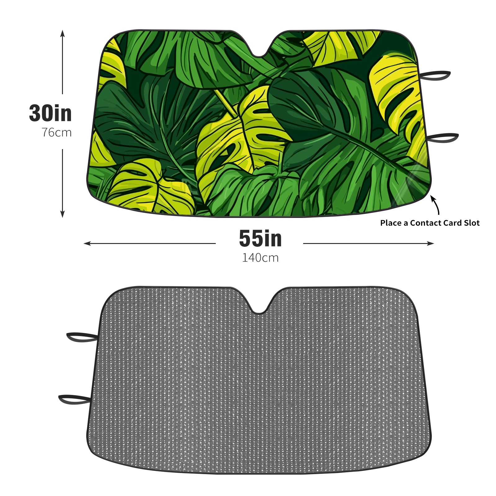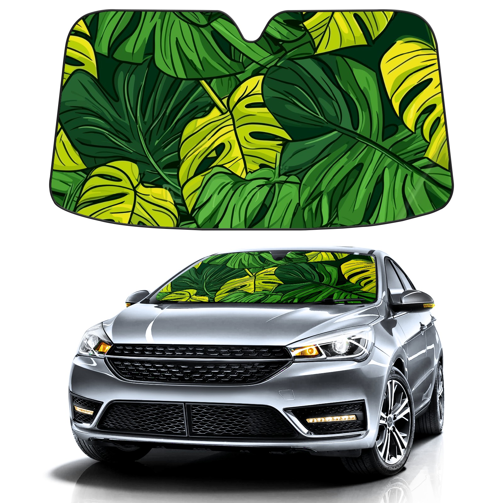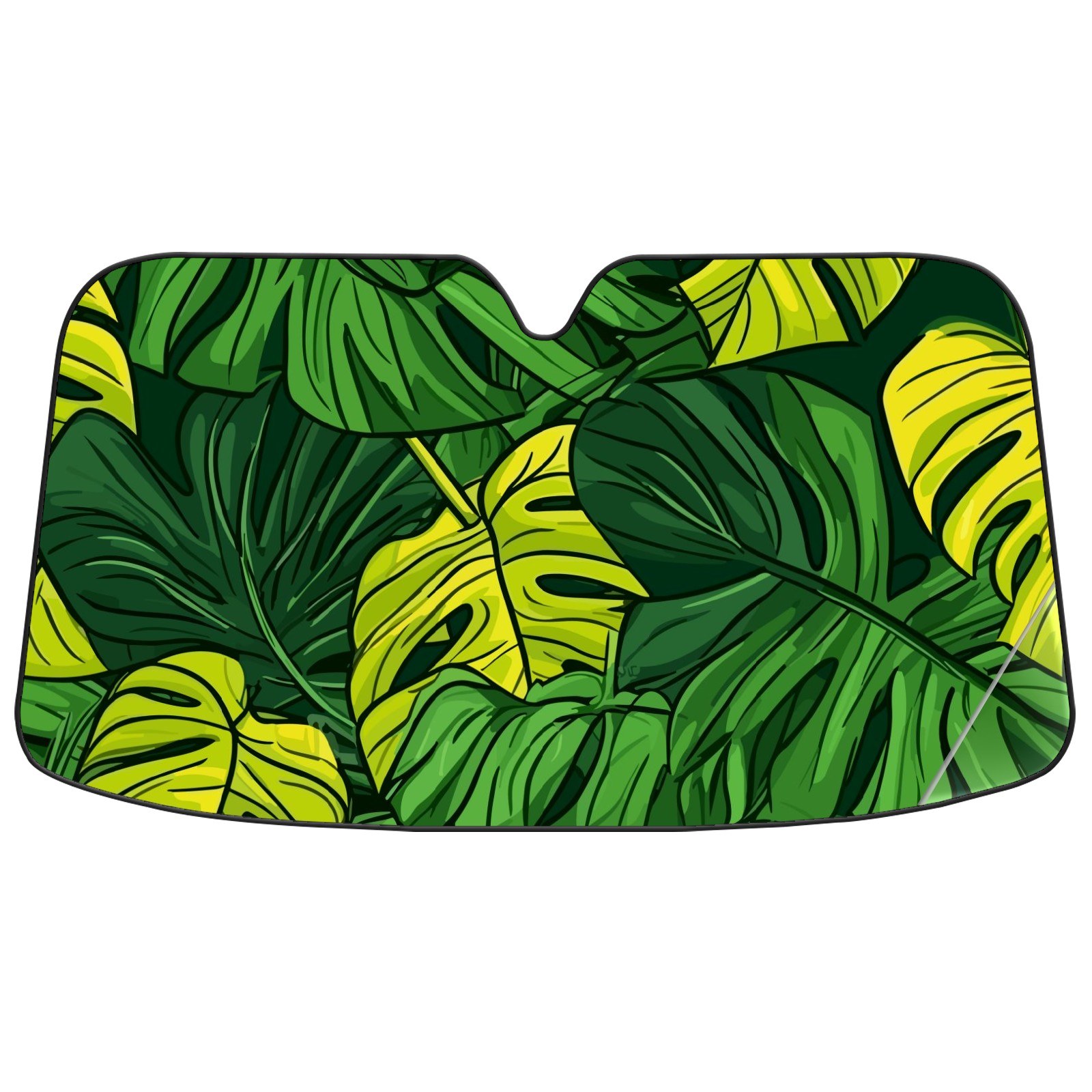 Car Windshield Sun Shade For Front Window Green Monstera Leaf Foldable Vehicle Windshield Car Sun Visor Covers Automotive Window Protector Car Camping Privacy Sun Blocker