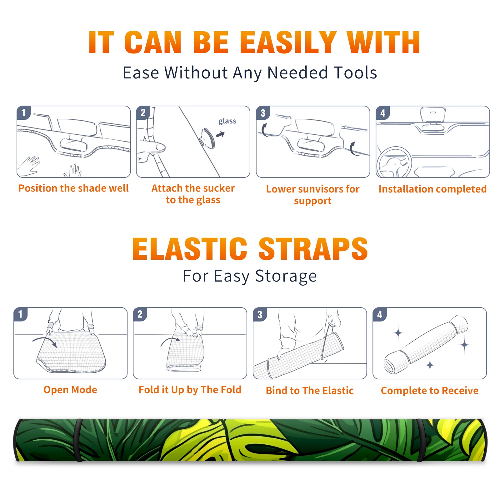 • Diameter /Size 63"L x 33.5"W Made from excellent materials which makes it sturdy and protects the car from the sun. Easy to use and pack. Makes the interior of the car cooler.You can easily stash the sunshade in the storage bag or store long term.It open and closes easy. Also the leather storage bag is durable and easy to put the umbrella back into.This windshield sunshade provides complete coverage and keeps your car interior cool under direct sun. It is easy to open and position under the windshield and around the rear-view mirror. Makes Your Car Easy To Identify, Perfect For Finding Your Car In Crowded Parking Lots And Garages.Great Choice: It Is A Great Gift For Dad, Boyfriend, Brother, Brother And Uncle, Friends, Classmates, Family And So On. Notice: Due To Difference Computer Monitors, The Color Maybe Slightly Different From Picture. As Different Measurement Methods, Measurement Data Will Float Within 2%.I Hope You Understand. If You Have Any Question About The Item Please Do Not Hesitate To Contact Us Immediately And We Will Give You A Satisfactory Reply Within 24 Hours.