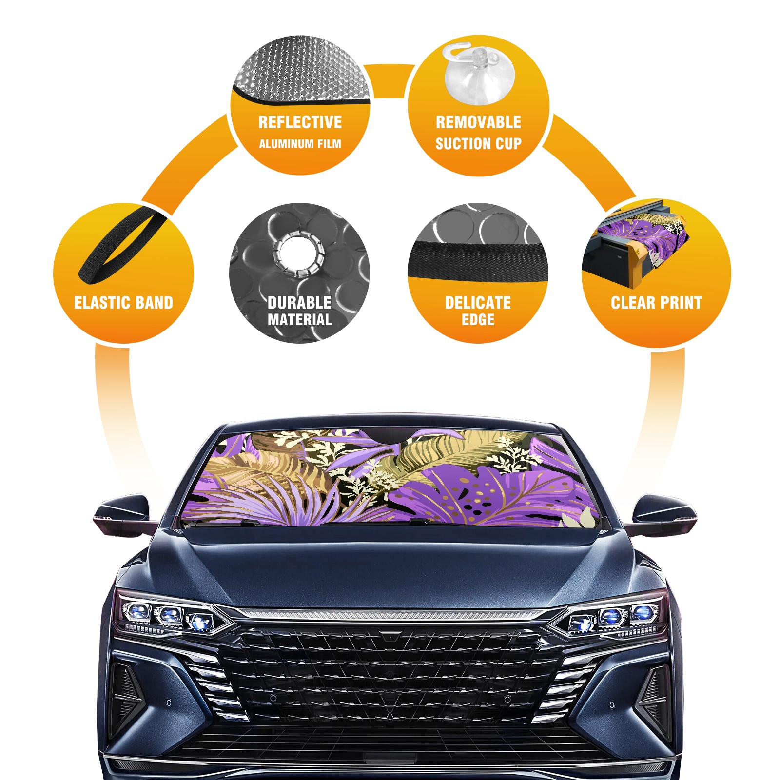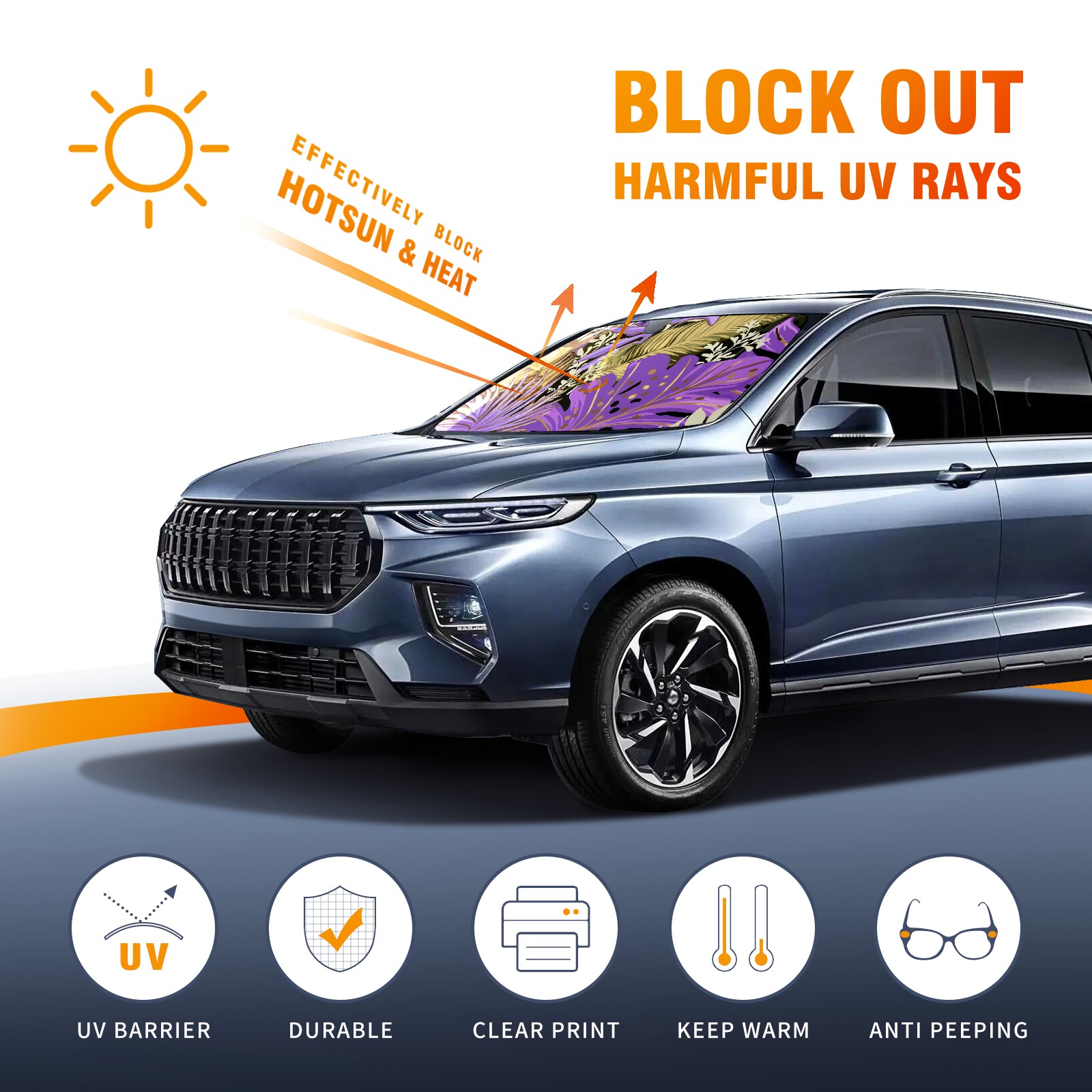 Car Windshield Sun Shade For Front Window Fantastic Tropical Leaves Foldable Vehicle Windshield Car Sun Visor Covers Automotive Window Protector Car Camping Privacy Sun Blocker