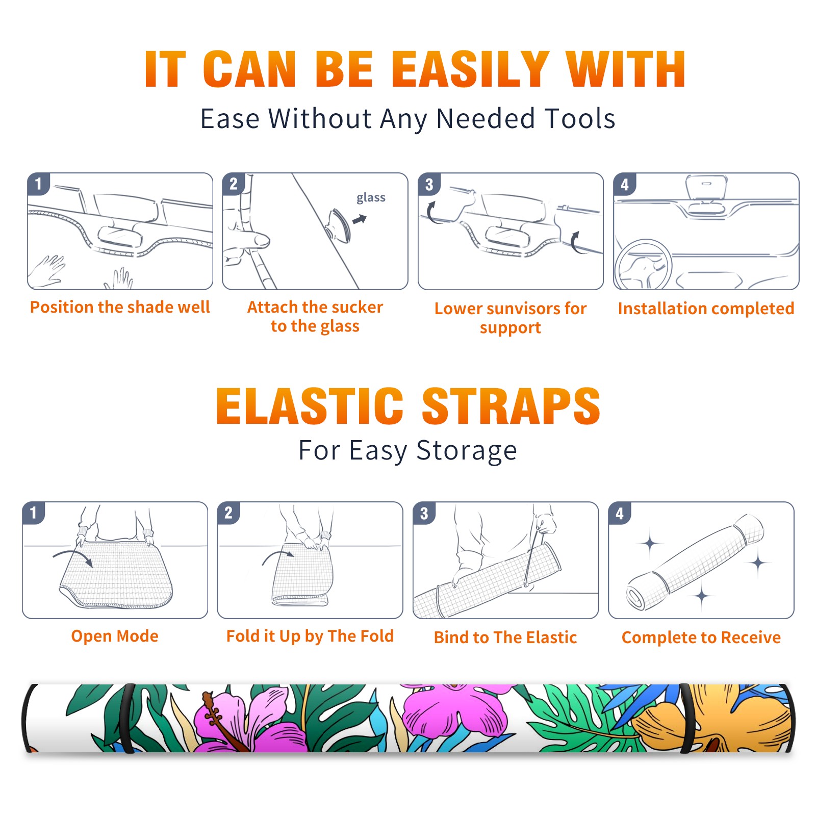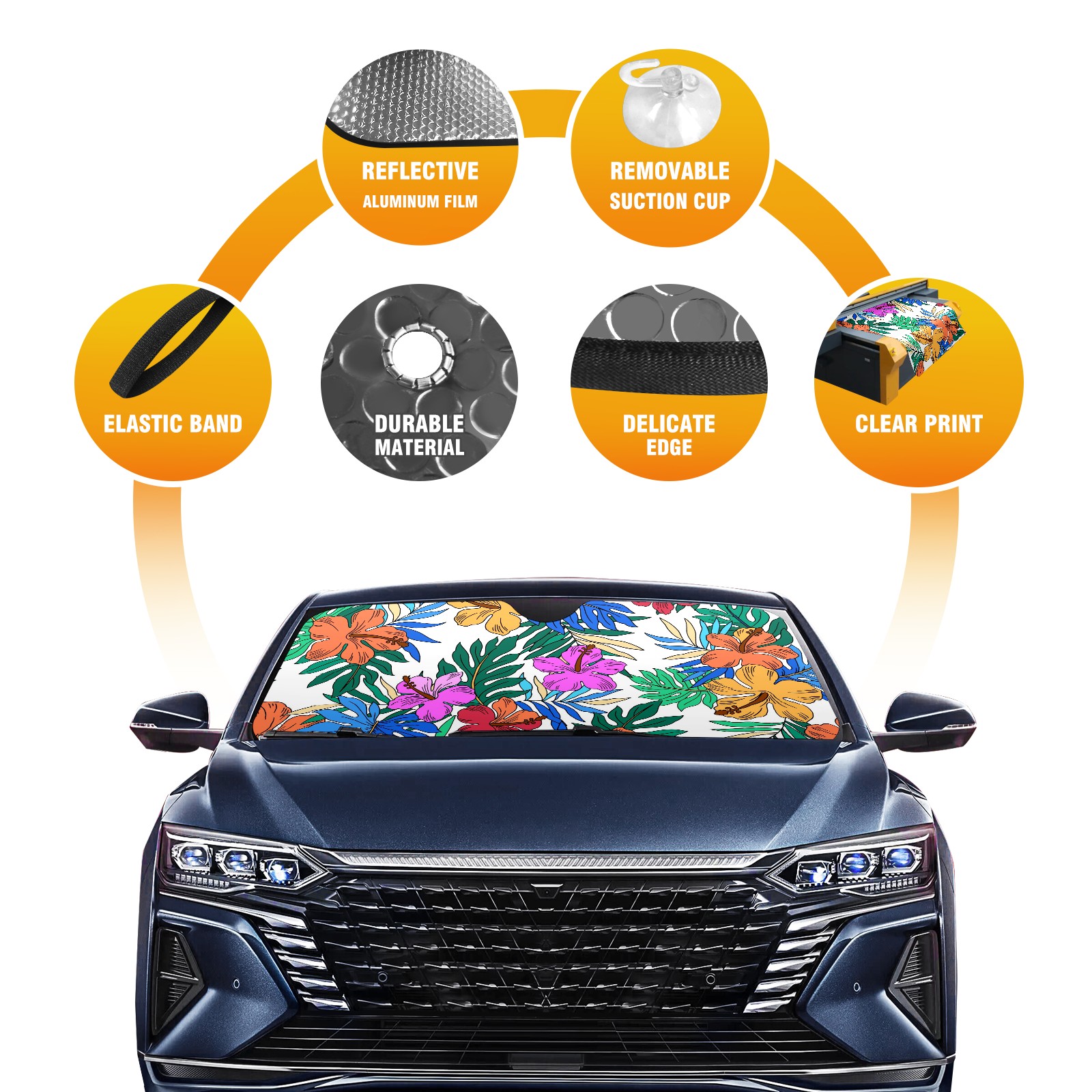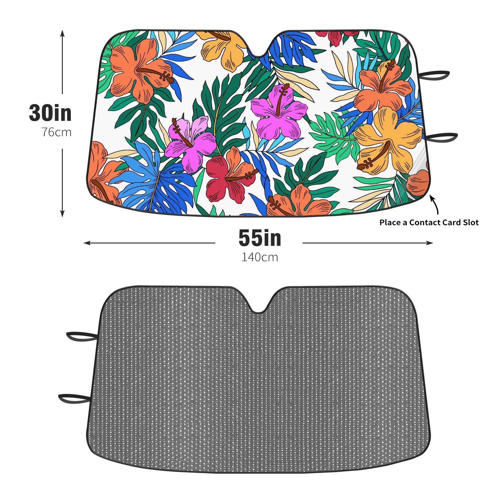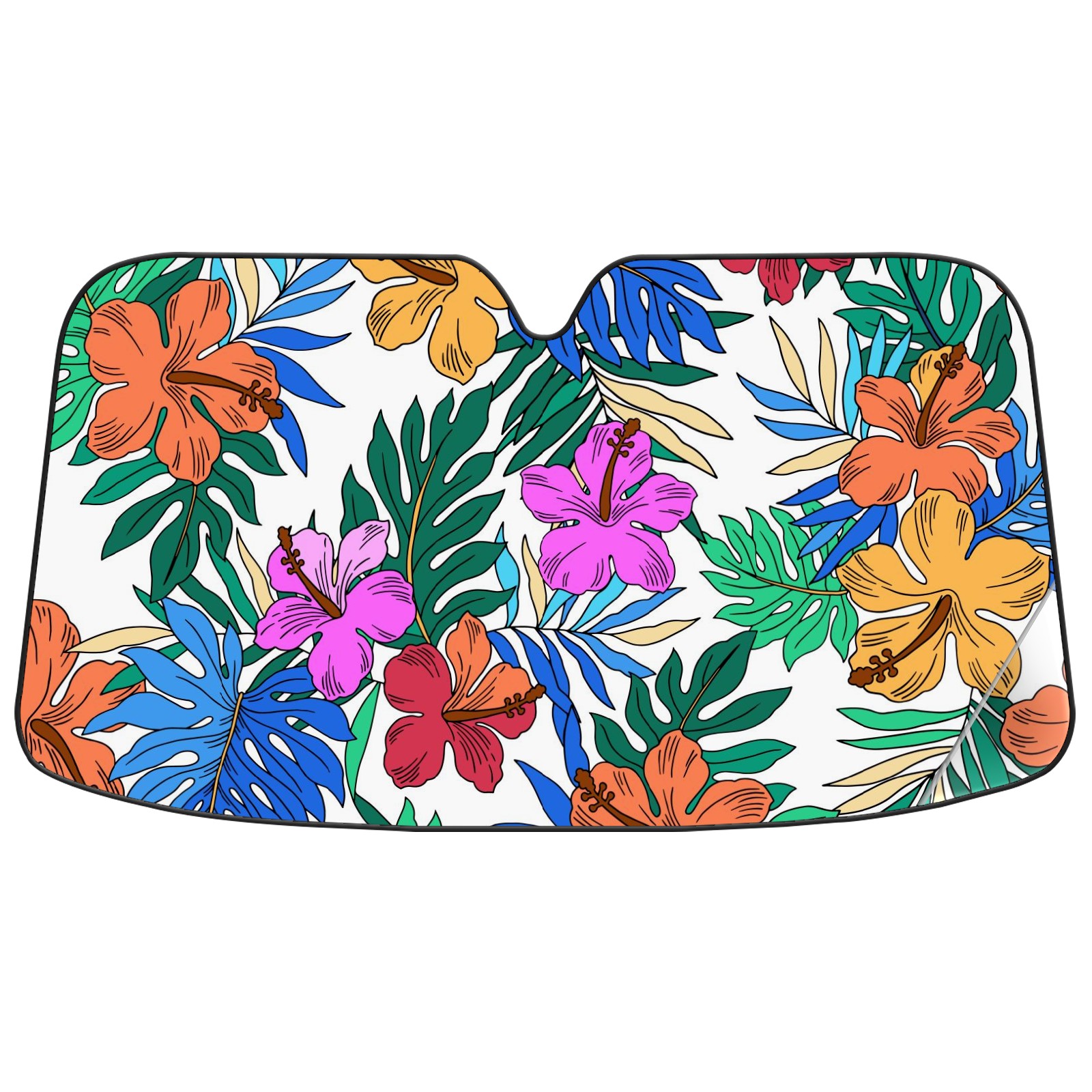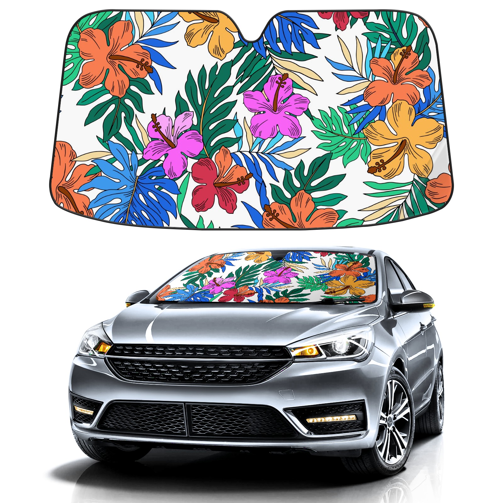 Car Windshield Sun Shade For Front Window Colorful Hibiscus Palm Leaves Foldable Vehicle Windshield Car Sun Visor Covers Automotive Window Protector Car Camping Privacy Sun Blocker