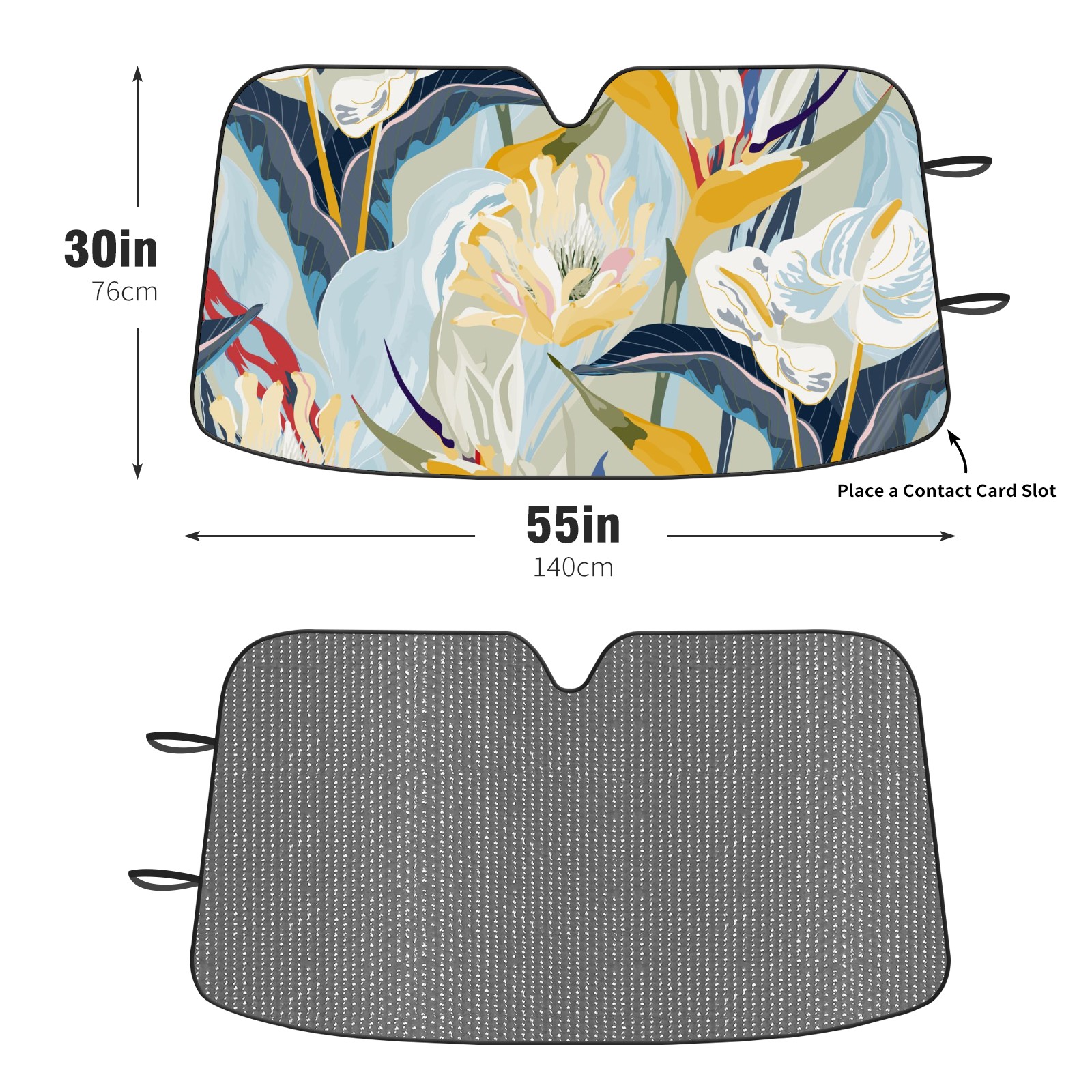 Diameter /Size 63"L x 33.5"W Made from excellent materials which makes it sturdy and protects the car from the sun. Easy to use and pack. Makes the interior of the car cooler.You can easily stash the sunshade in the storage bag or store long term.It open and closes easy. Also the leather storage bag is durable and easy to put the umbrella back into.This windshield sunshade provides complete coverage and keeps your car interior cool under direct sun. It is easy to open and position under the windshield and around the rear-view mirror. Makes Your Car Easy To Identify, Perfect For Finding Your Car In Crowded Parking Lots And Garages.Great Choice: It Is A Great Gift For Dad, Boyfriend, Brother, Brother And Uncle, Friends, Classmates, Family And So On. Notice: Due To Difference Computer Monitors, The Color Maybe Slightly Different From Picture. As Different Measurement Methods, Measurement Data Will Float Within 2%.I Hope You Understand. If You Have Any Question About The Item Please Do Not Hesitate To Contact Us Immediately And We Will Give You A Satisfactory Reply Within 24 Hours.
