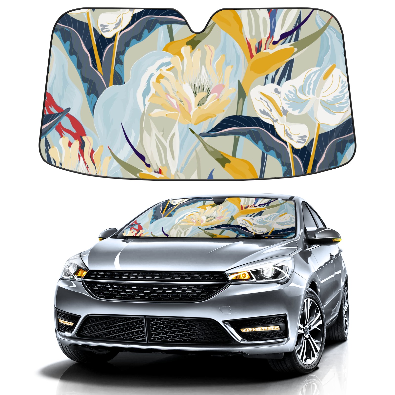 Car Windshield Sun Shade For Front Window Abstract Flowers And Leaves Painting Foldable Vehicle Windshield Car Sun Visor Covers Automotive Window Protector Car Camping Privacy Sun Blocker